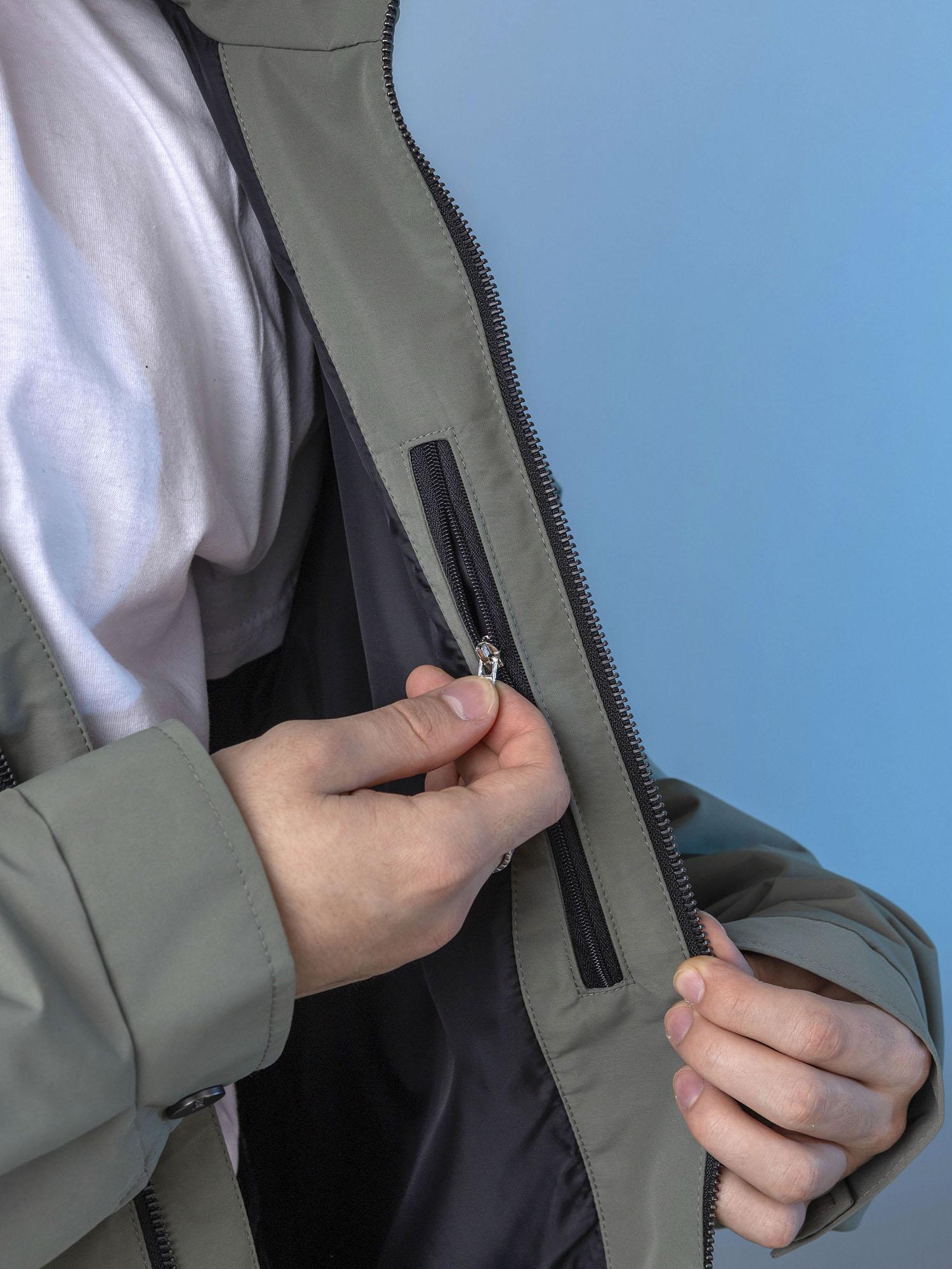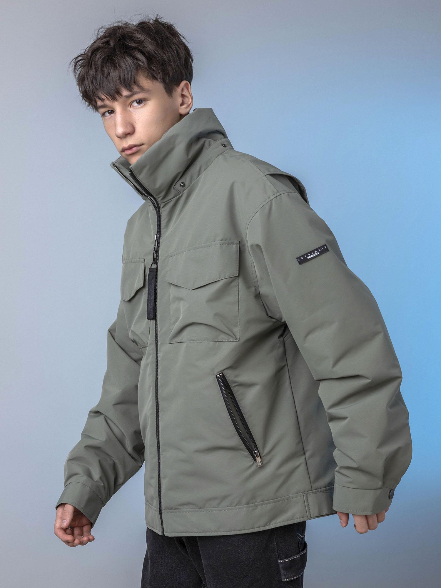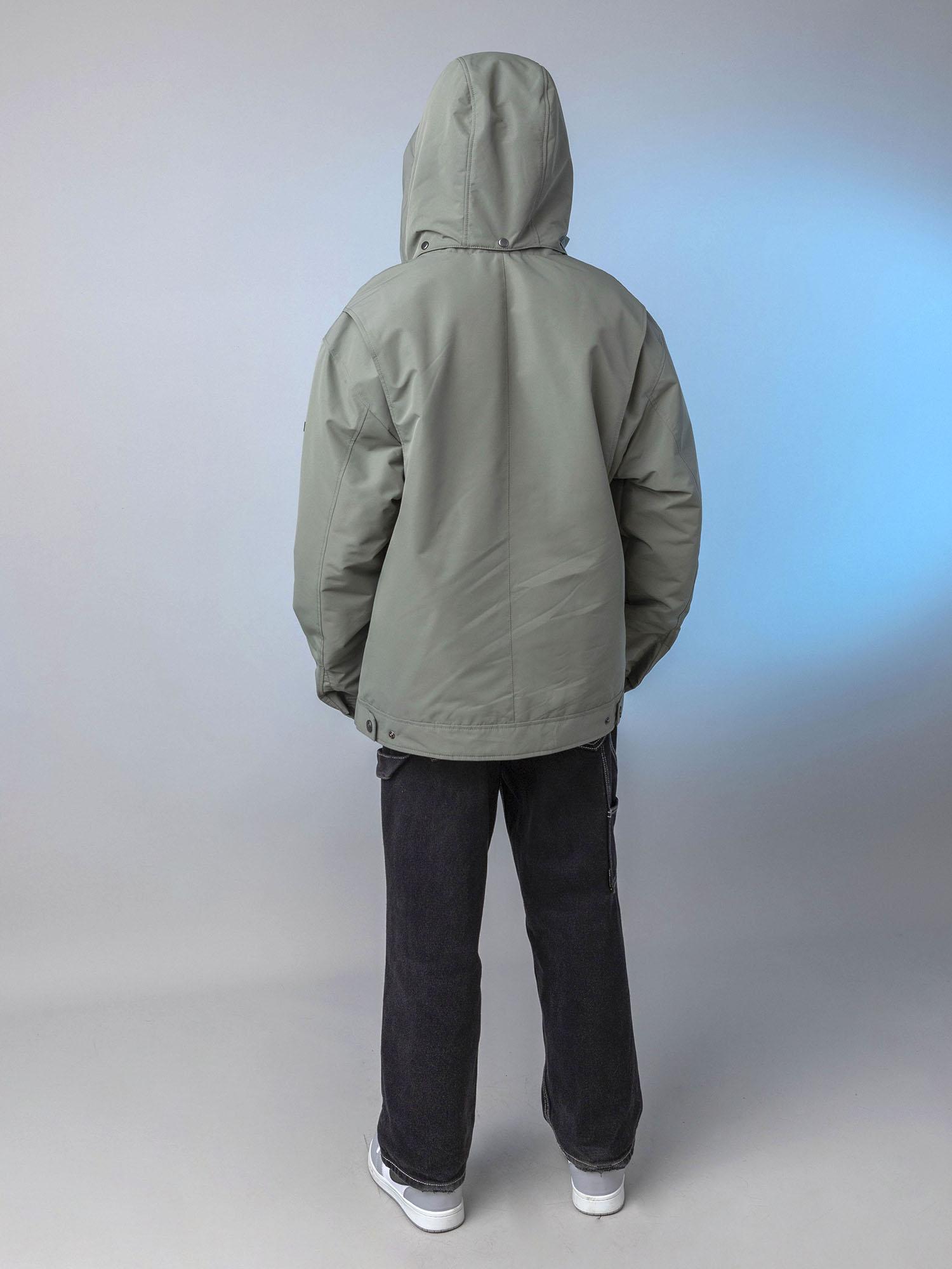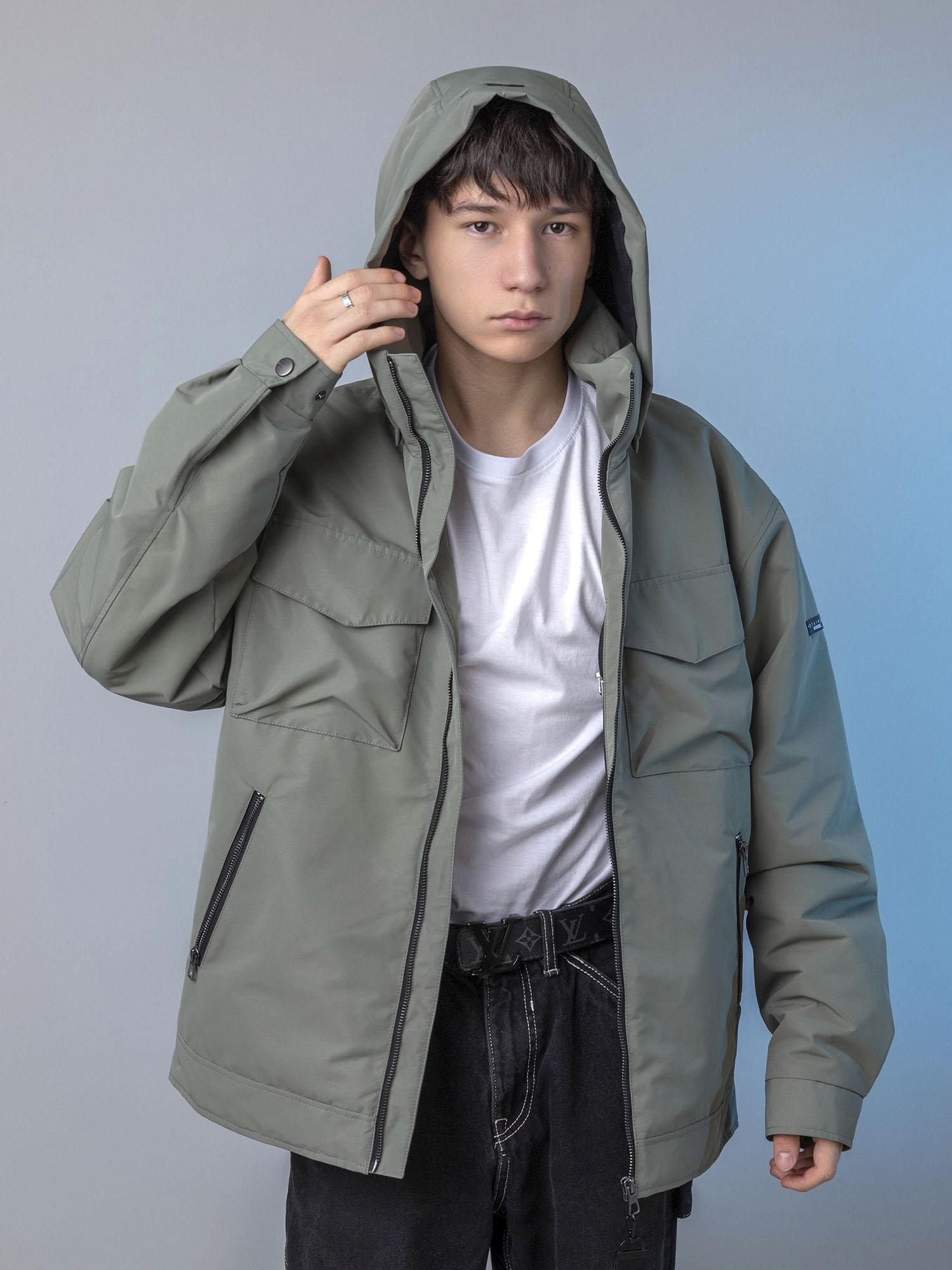 Центральная металлическая молния с внутренней ветрозащитной планкой. Воротник-стойка сохраняет тепло. Нагрудные накладные карманы с клапаном на магните и удобные боковые карманы на молнии. Спинка с отлетными кокетками по пройме. Объёмные рукава с манжетой и регулировкой ширины на кнопках. Боковые паты на спинке для регулировки ширины. Съёмный капюшон с регулировкой по внутреннему лицевому краю.