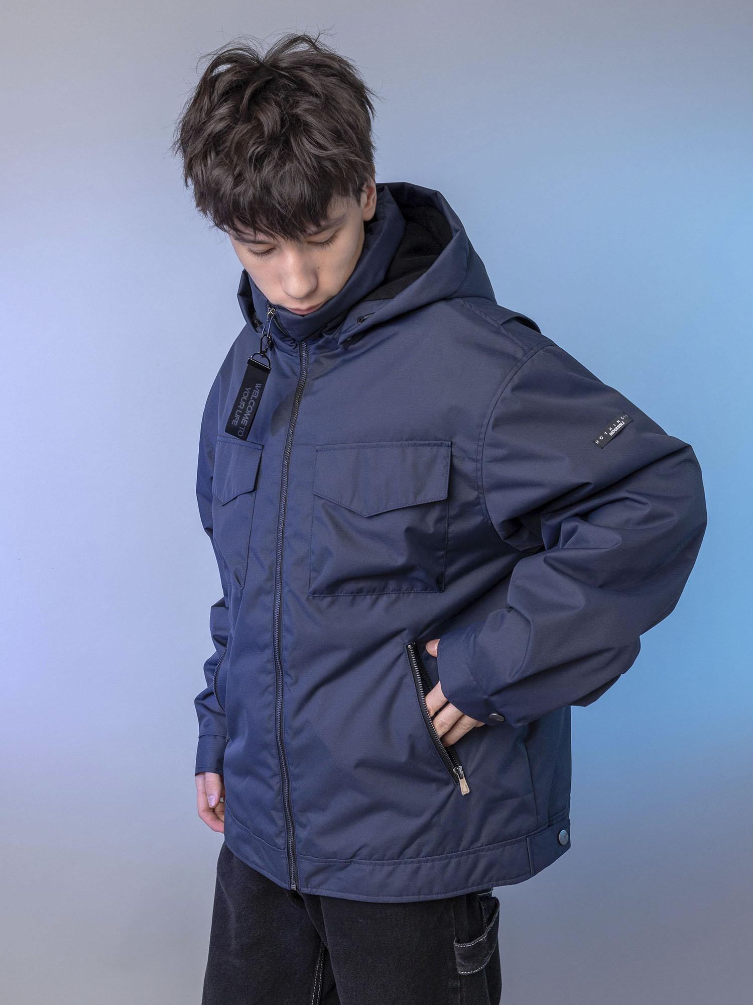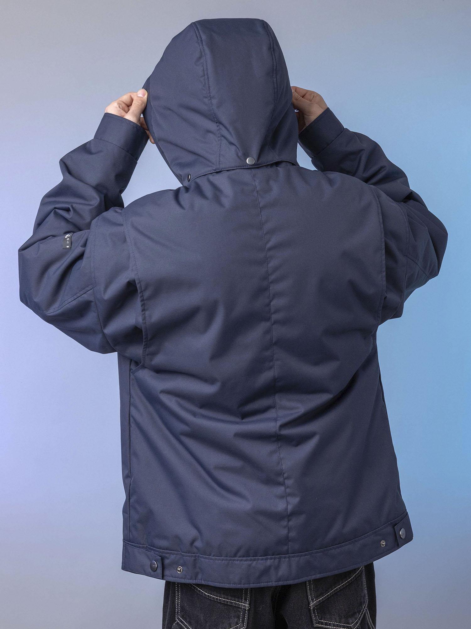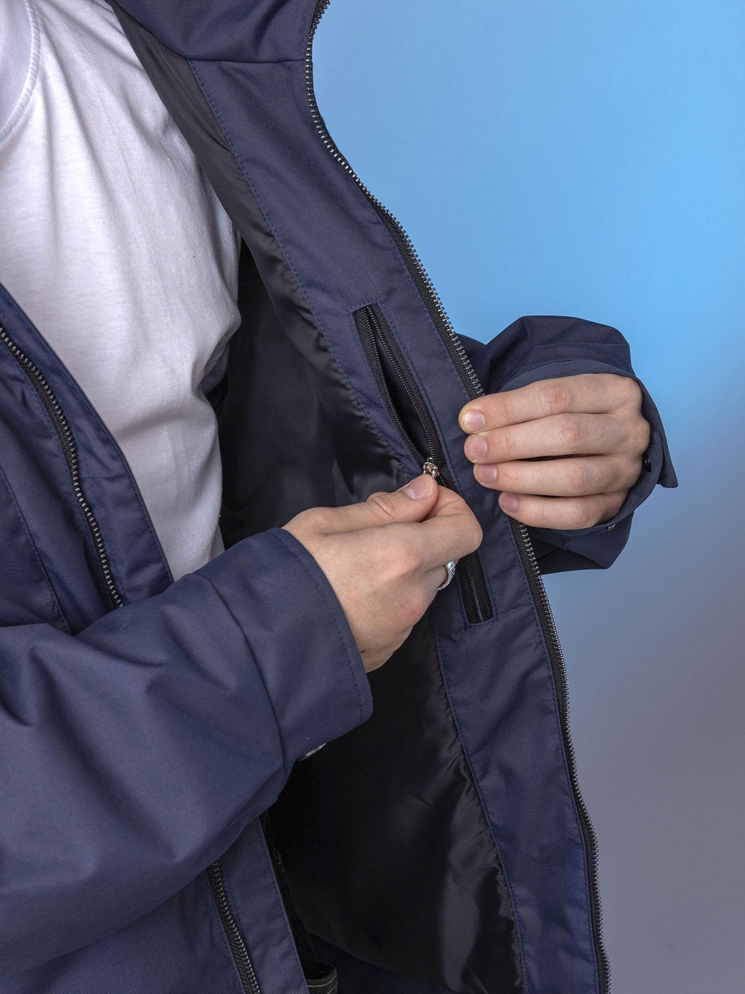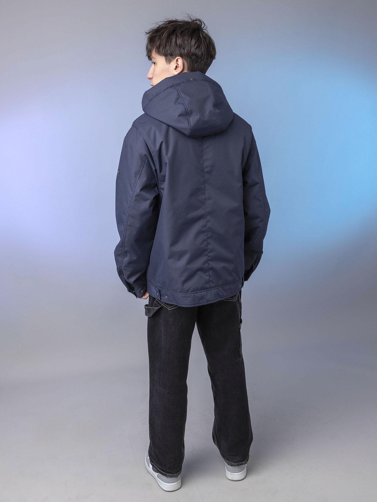 Центральная металлическая молния с внутренней ветрозащитной планкой. Воротник-стойка сохраняет тепло. Нагрудные накладные карманы с клапаном на магните и удобные боковые карманы на молнии. Спинка с отлетными кокетками по пройме. Объёмные рукава с манжетой и регулировкой ширины на кнопках. Боковые паты на спинке для регулировки ширины. Съёмный капюшон с регулировкой по внутреннему лицевому краю.