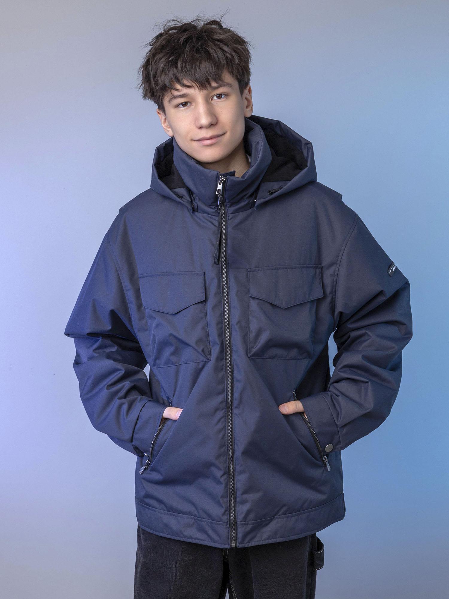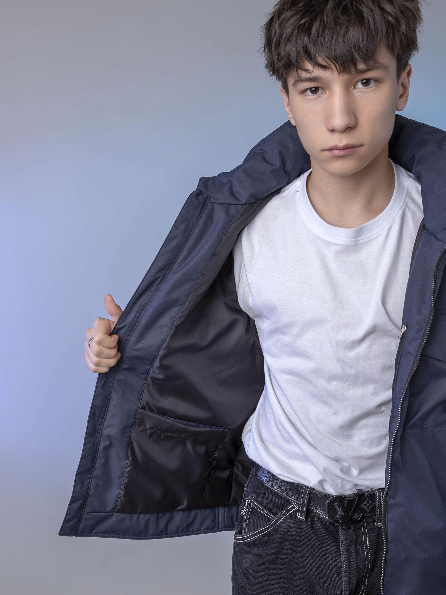 Подклад комбинированный: спинка из ворсового трикотажа, остальная часть из гладкой таффеты. Внутренние карманы: один на молнии, второй накладной на велкро. Светоотражающие элементы — нашивка на левом рукаве и патч в подарок — обеспечивают безопасность ребёнка в тёмное время суток.