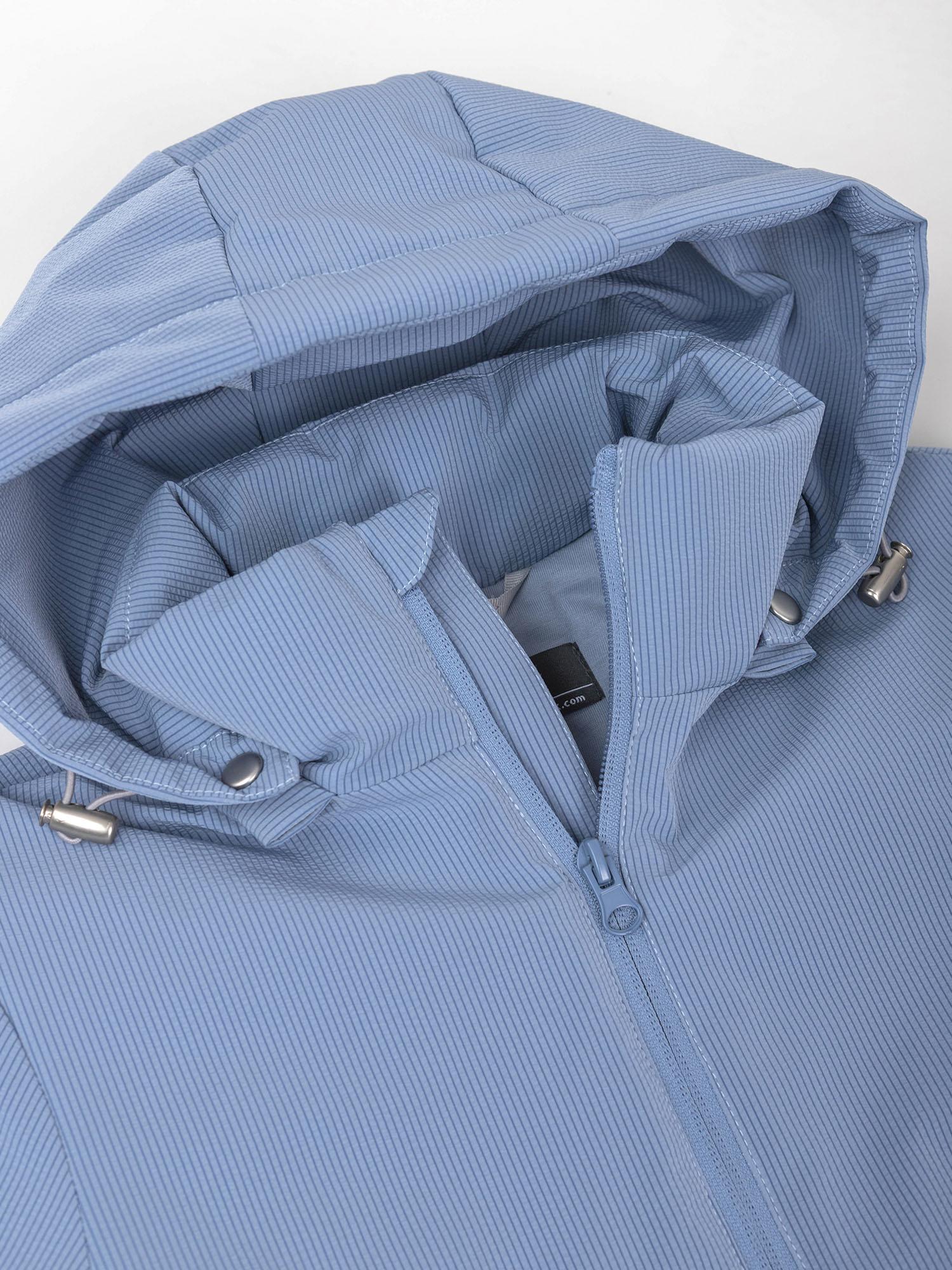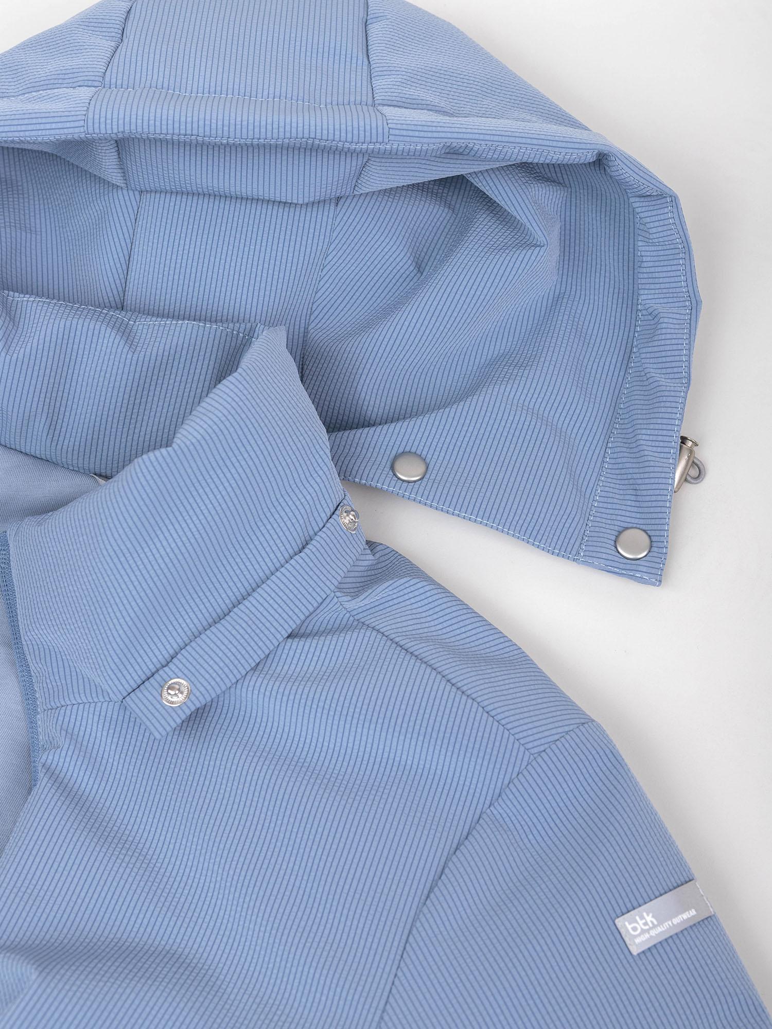 Подклад комбинированный из хлопкового трикотажа и таффеты для удобства и лёгкости при носке. Центральная застёжка-молния с ветрозащитной планкой, свободные рукава с драпировкой по локтевому шву и эластичными манжетами по низу. Боковые тёплые карманы с клапанами на магнитной застёжке. Съёмный капюшон с регулировкой объёма и воротник-стойка защищают от ветра.