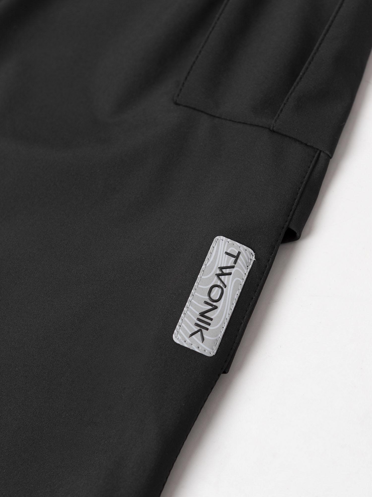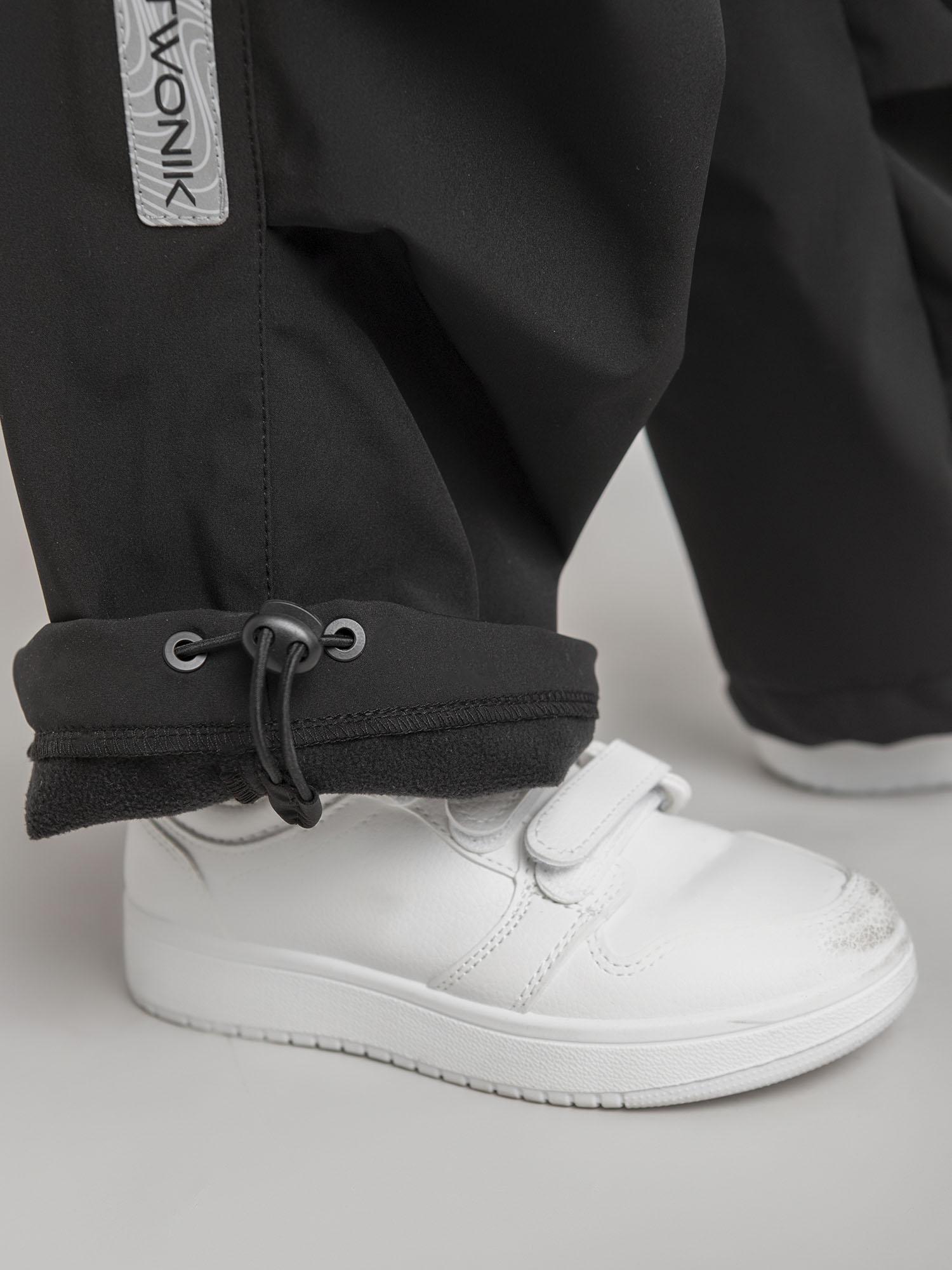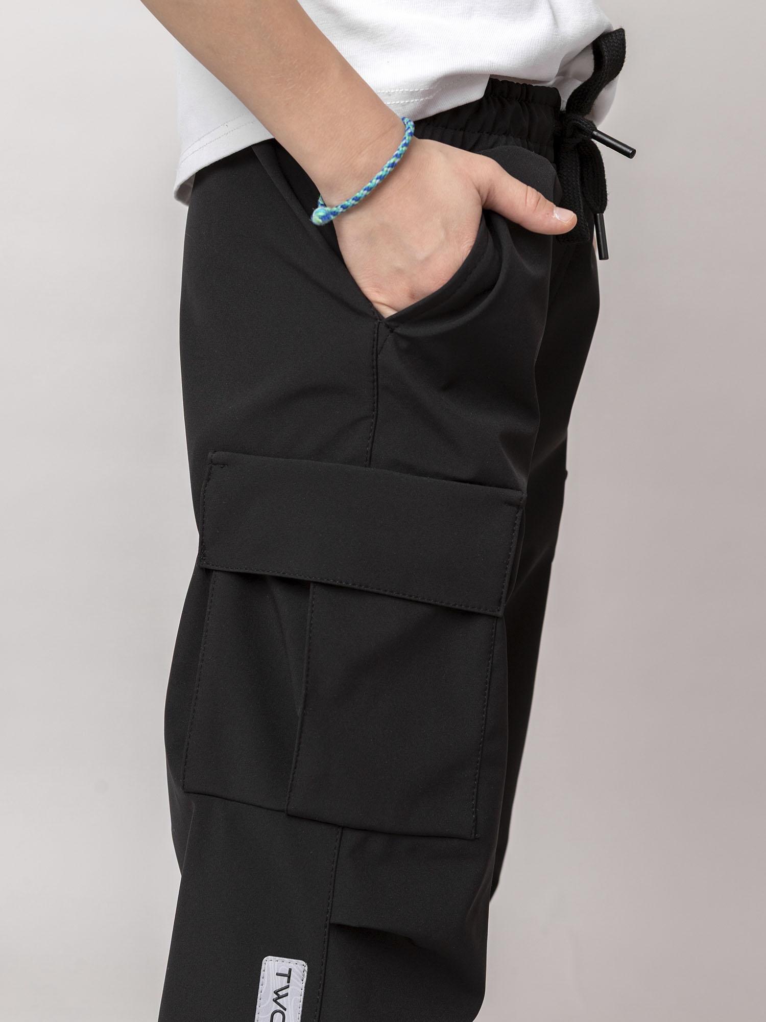 Модель оснащена удобными карманами: боковые и накладные объёмные с клапанами на боковых швах. Пояс на резинке с регулировкой ширины. Ширина низа штанин регулируется эластичной тесьмой с фиксаторами. Светоотражающий элемент в виде нашивки повышает видимость в темное время суток.