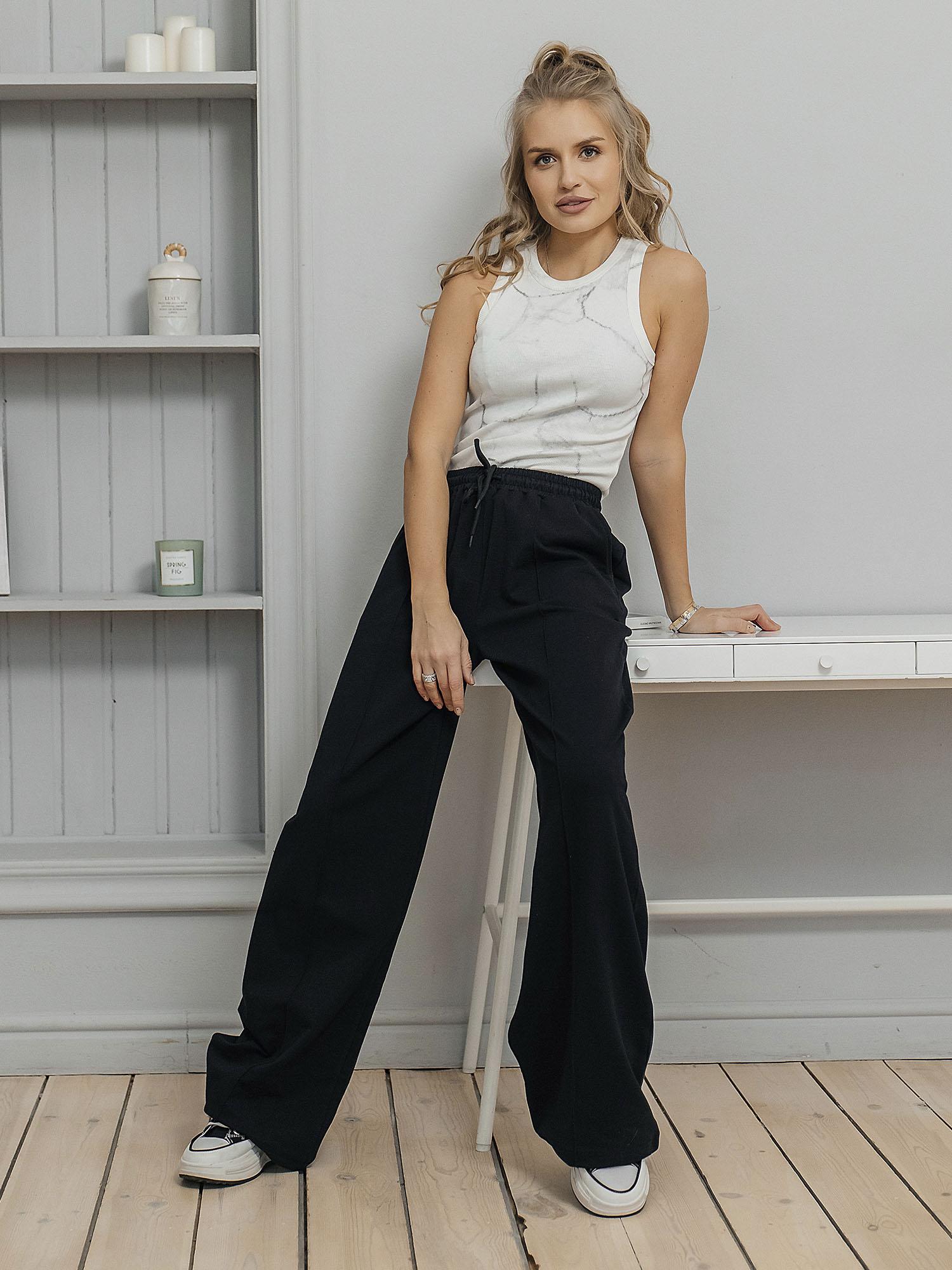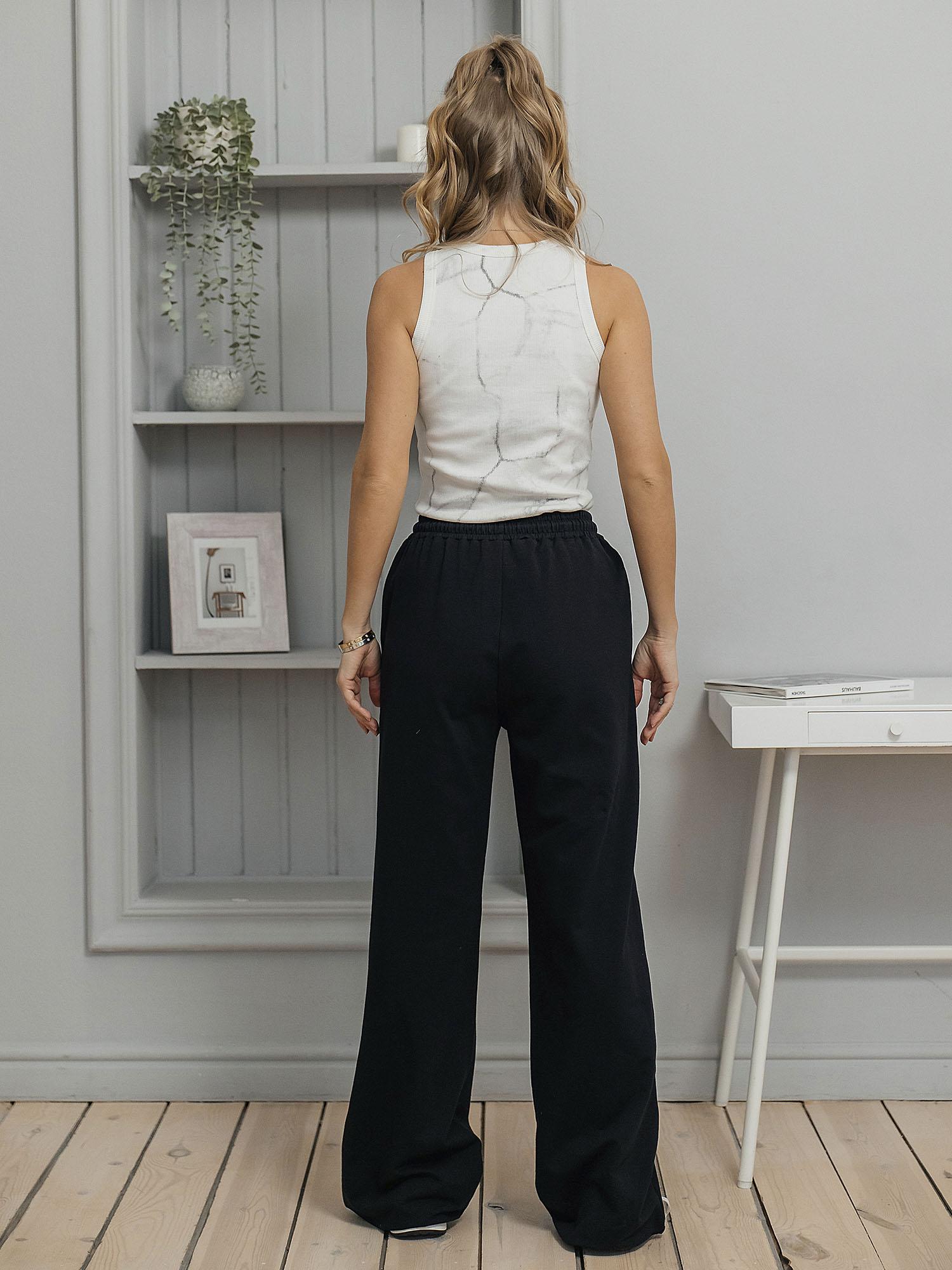 Брюки унисекс из футера 2-х нитки (95% хлопок, 5% эластан). Мягкий и эластичный материал приятно ощущается на теле, хорошо держит форму и подходит для повседневной носки. Комфортная посадка обеспечивает удобство в течение всего дня. Цвет — чёрный.