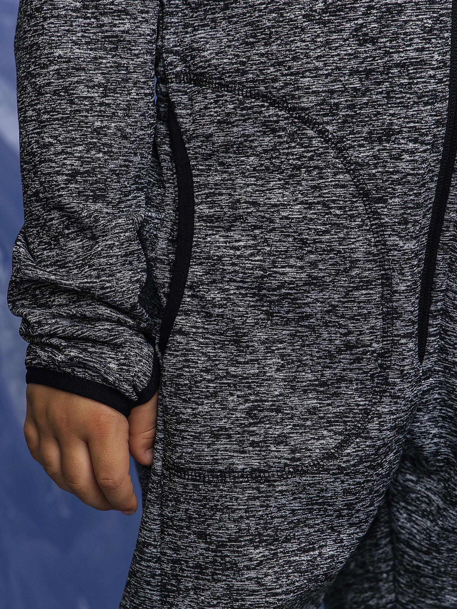 Флисовый комбинезон Макси черный из двухслойного трикотажа на молнии. Стильный комбинезон из флиса можно носить в качестве поддевы зимой и в межсезонье. Флис сохраняет тепло и отводит влагу от тела, оставляя кожу ребенка сухой. Застежка на молнию спереди. Воротник-стойка хорошо защищает горло от ветра. Рукава с манжетами, которые надеваются на руку. Полностью гипоаллергенная ткань. Низ на эластичной резинке. Есть карманы по бокам.