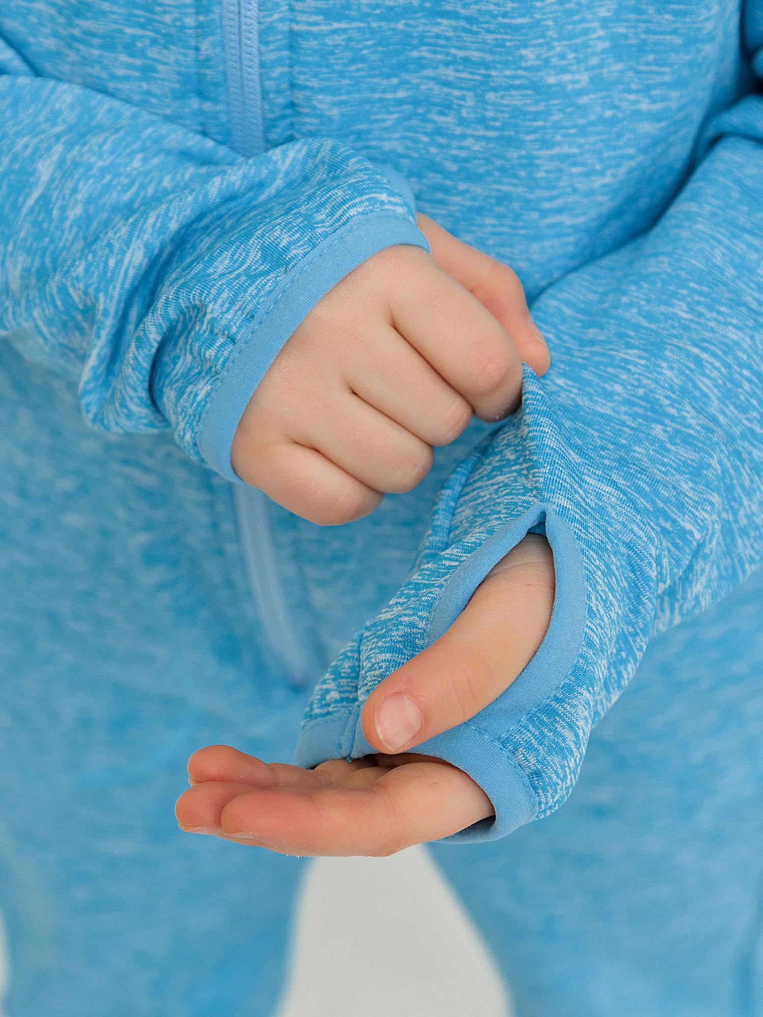 Флисовый комбинезон голубого цвета на трикотажной основе детский Рэми. Неутепленная модель на молнии, с высоким воротником из плотного трикотажного хлопкового материала. Универсальный комбинезон для мальчика и для девочки можно носить в любое время года, как в качестве самостоятельного предмета одежды, так и в качестве поддевы.