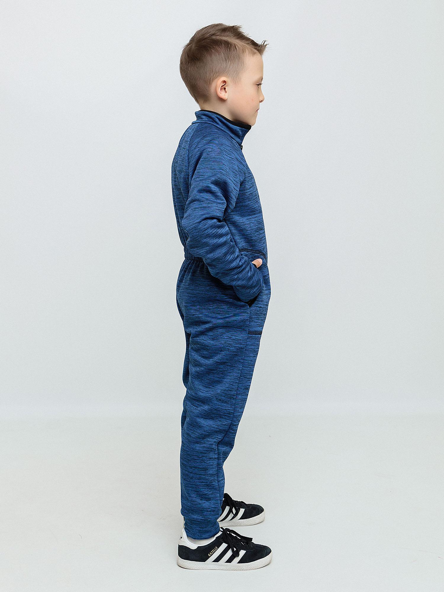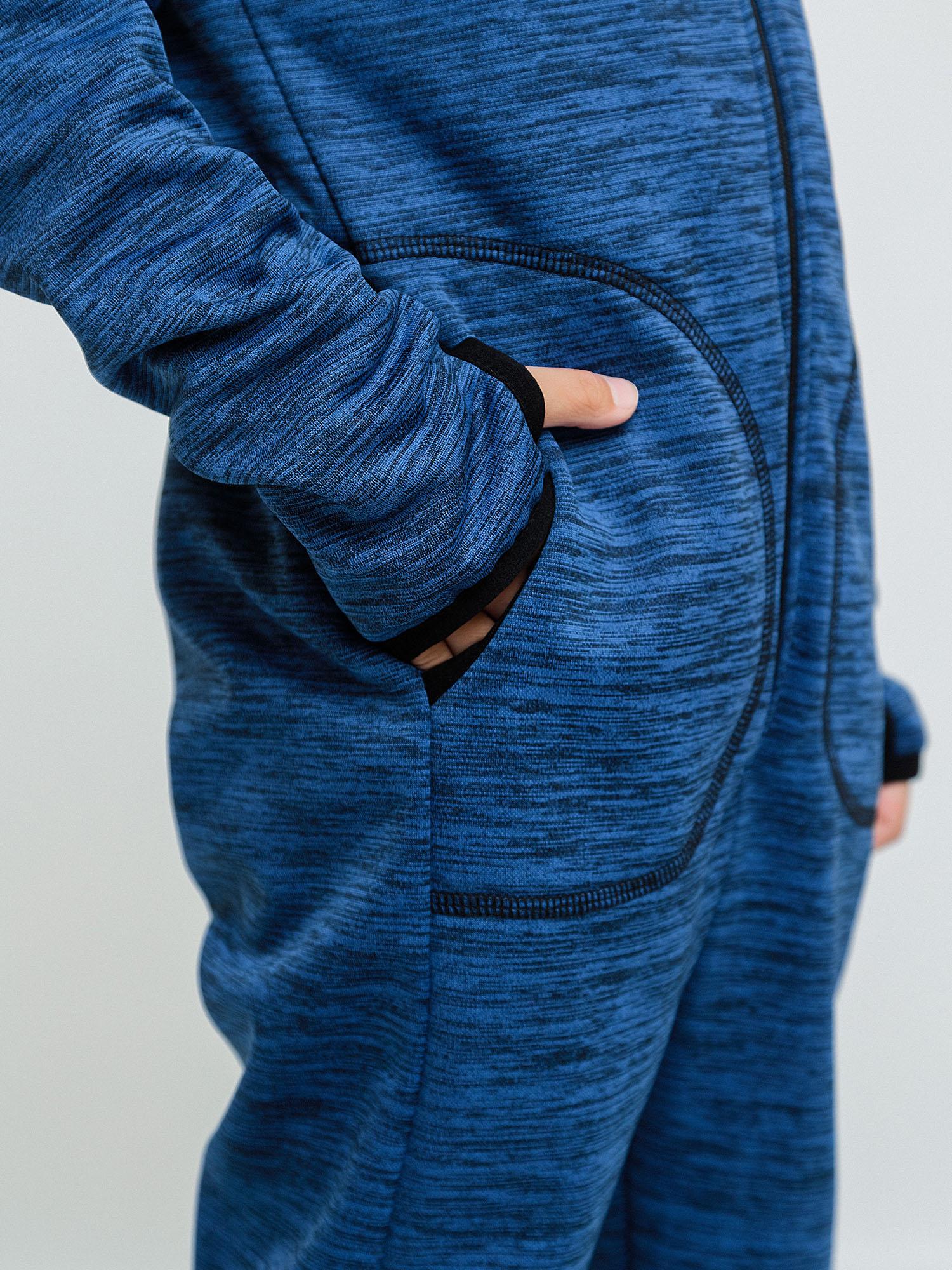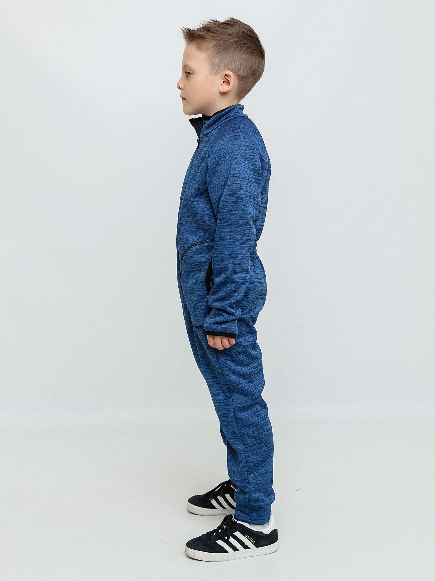 Флисовый комбинезон синего цвета на трикотажной основе детский Рэми. Неутепленная модель на молнии, с высоким воротником из плотного трикотажного хлопкового материала. Универсальный комбинезон для мальчика и для девочки можно носить в любое время года, как в качестве самостоятельного предмета одежды, так и в качестве поддевы.