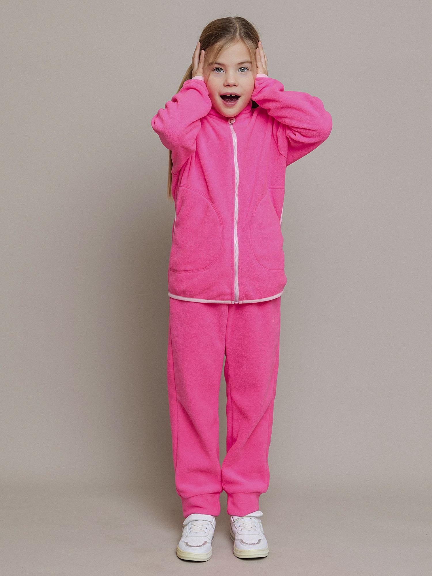 Флисовый комплект "Эннио" розовый для девочки: толстовка и брюки. Костюм из флиса - это идеальный выбор для активного отдыха и спорта. Комплект состоит из толстовки и штанов и идеально подойдет для прогулок, посещения площадок, прогулок в парке, а также как повседневная домашняя одежда.
