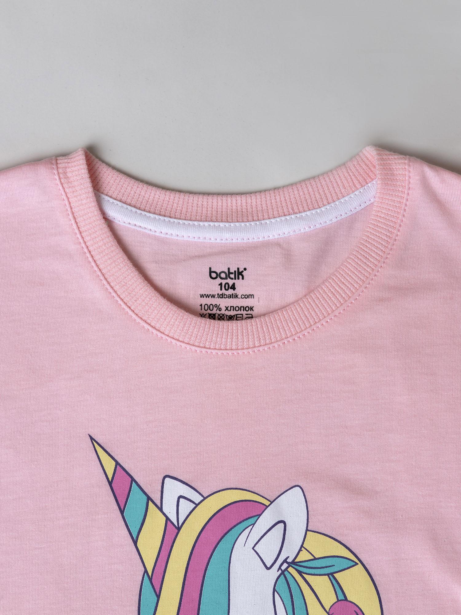 Футболка для девочки с коротким рукавом розовая — стильная базовая модель. Мягкий материал и комфортный крой обеспечивают удобство в носке. Отлично дополняет повседневные образы.