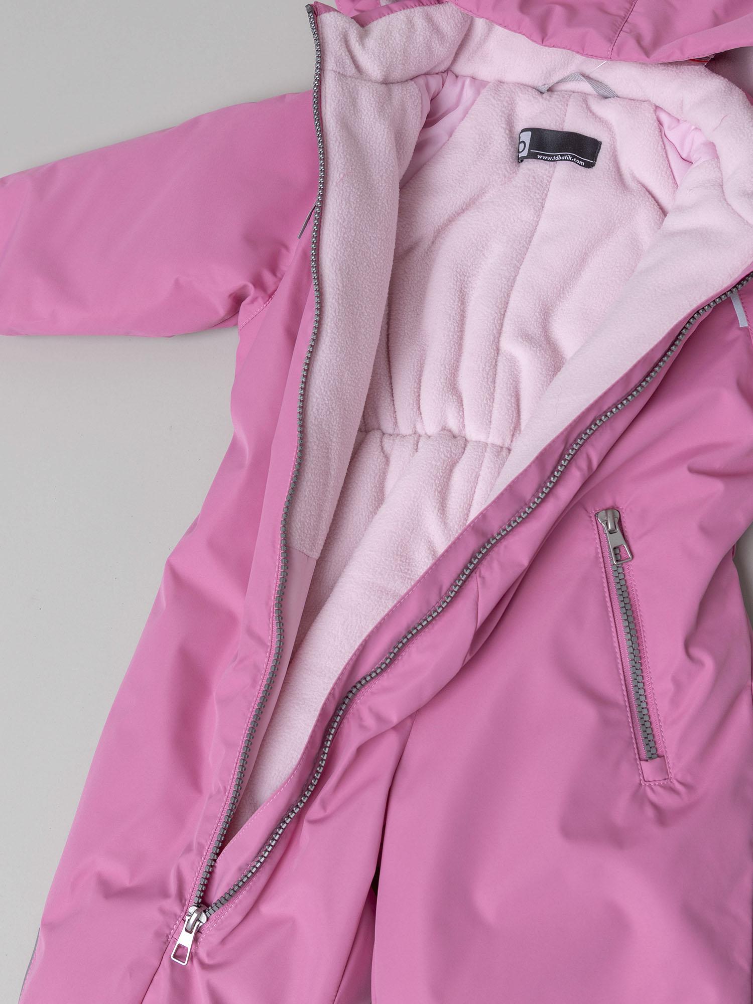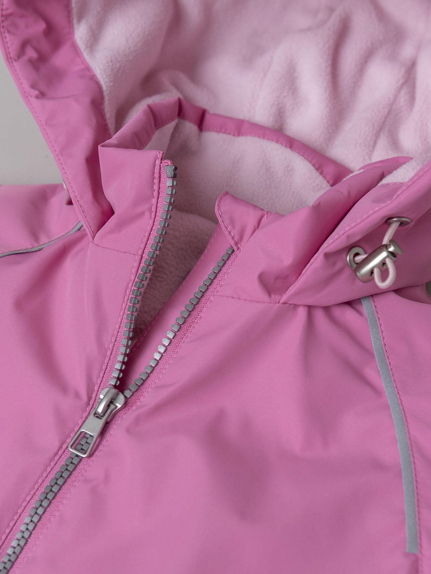 Подкладка спинки и полочки выполнена из мягкого флиса, рукава дополнены подкладкой из гладкой таффеты для удобства надевания. Рукав реглан обеспечивает свободу движений, а удлинённая центральная молния облегчает процесс переодевания. Регулируемый капюшон, манжеты на резинках, съёмные силиконовые штрипки и утяжка по талии делают модель особенно удобной. Светоотражающие элементы повышают безопасность в тёмное время суток.