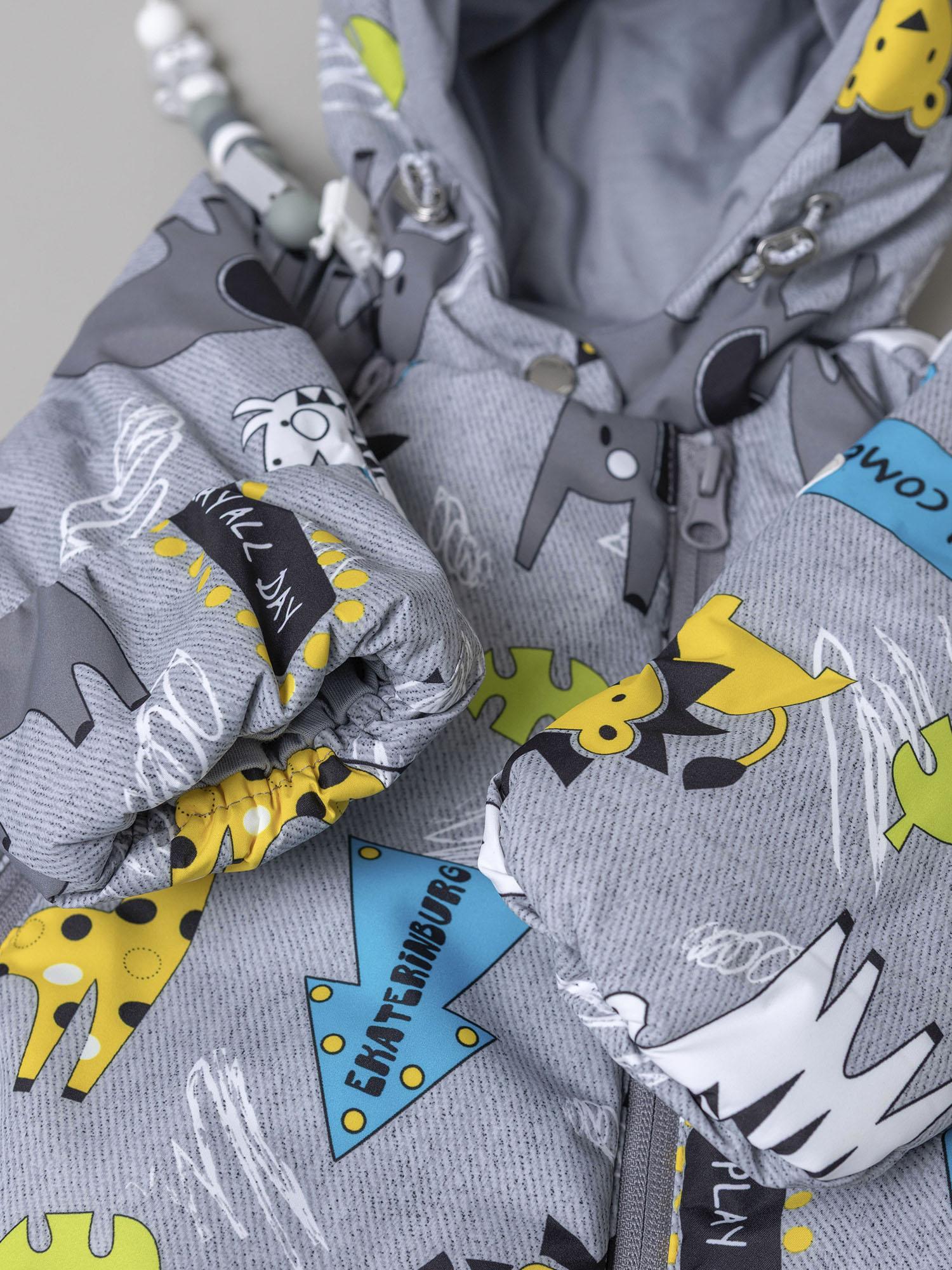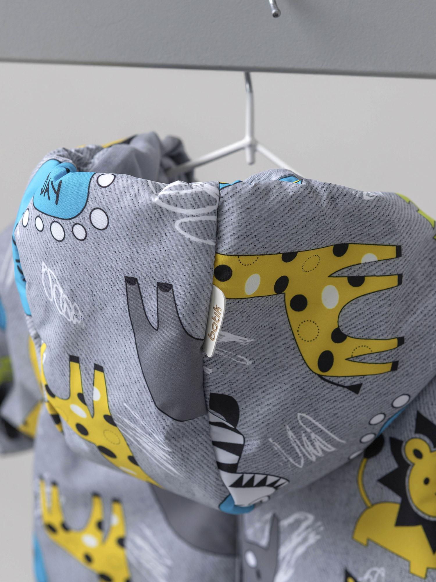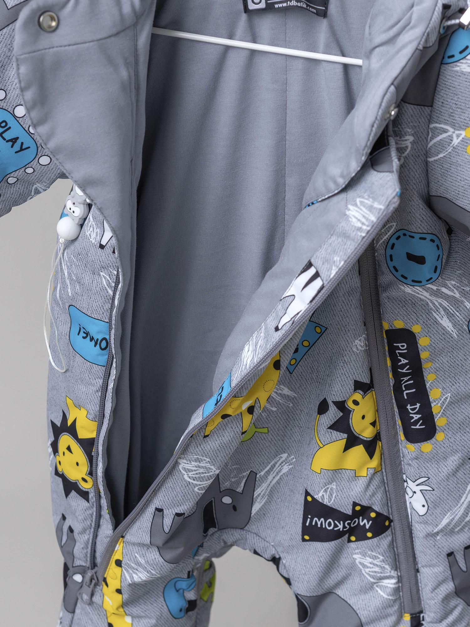 Модель выполнена из прочной мембранной ткани с игровым принтом, которая защищает от ветра и влаги. Внутренняя отделка выдержана в спокойных тонах, а подклад из хлопчатобумажной ткани обеспечивает комфорт при носке. Эргономичный крой и идеальная посадка не сковывают движений во время активных игр.