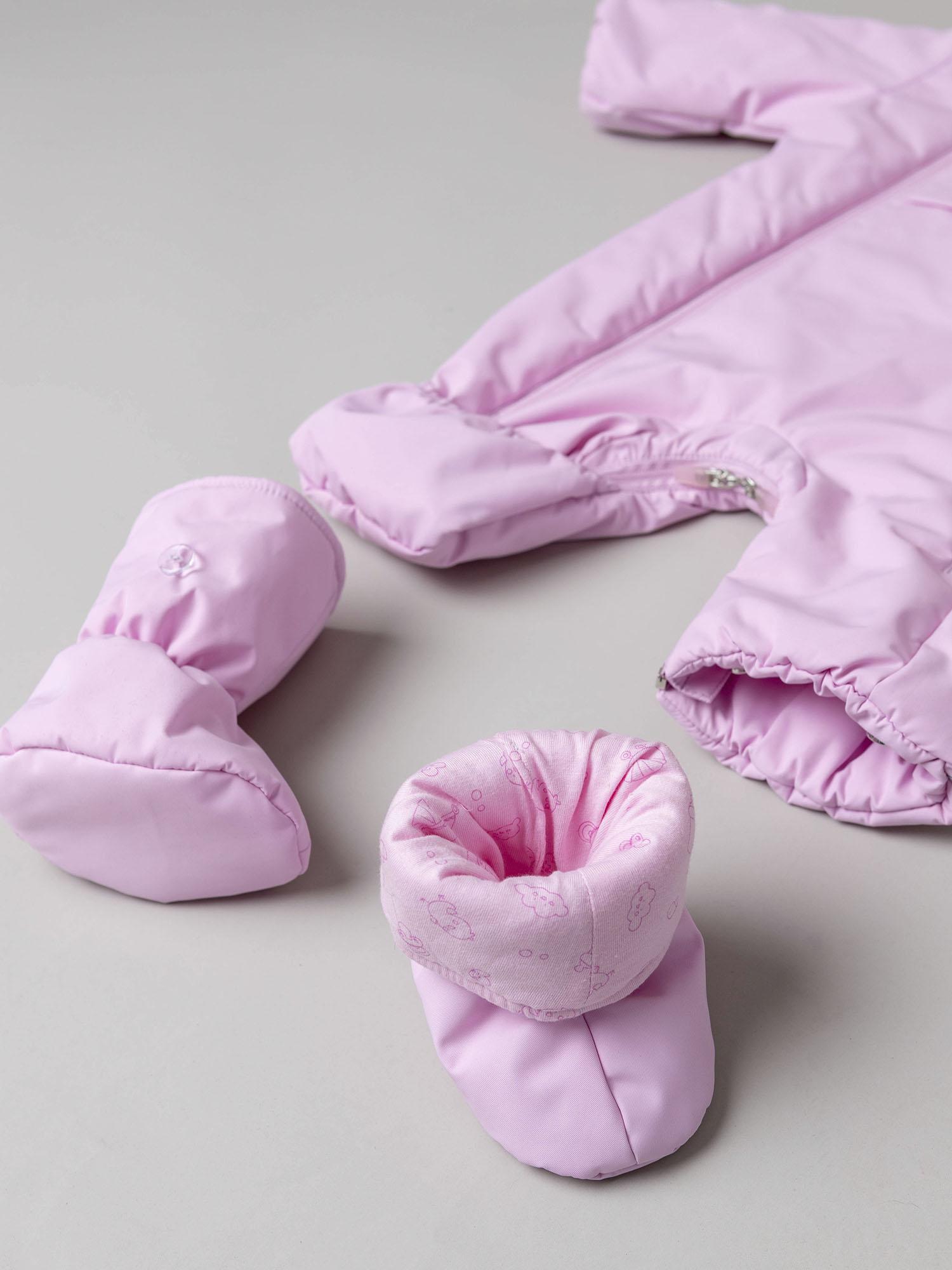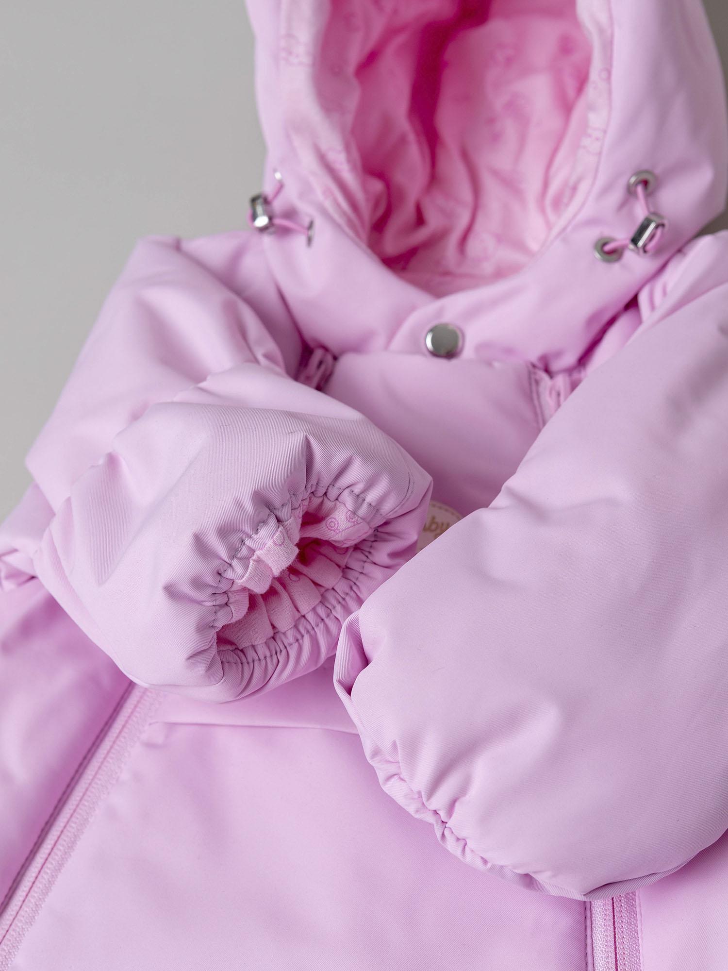 Модель оснащена двумя центральными молниями и молнией для трансформации в конверт с двумя бегунками, которые фиксируются в нужном положении. Кулиса по лицевой части капюшона позволяет регулировать объём и защищает от ветра, а ветрозащитная планка на кнопках и защита подбородка делают комбинезон особенно практичным. Подойдёт для прогулок и выписки.