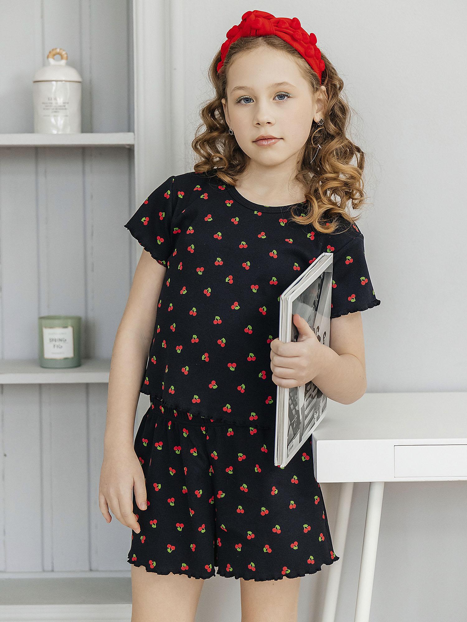 Комплект (майка и шорты) выполнен из кашкорсе: 95% хлопок, 5% эластан. Мягкий, эластичный и приятный к телу материал обеспечивает комфорт в течение дня. Цвет — черный.