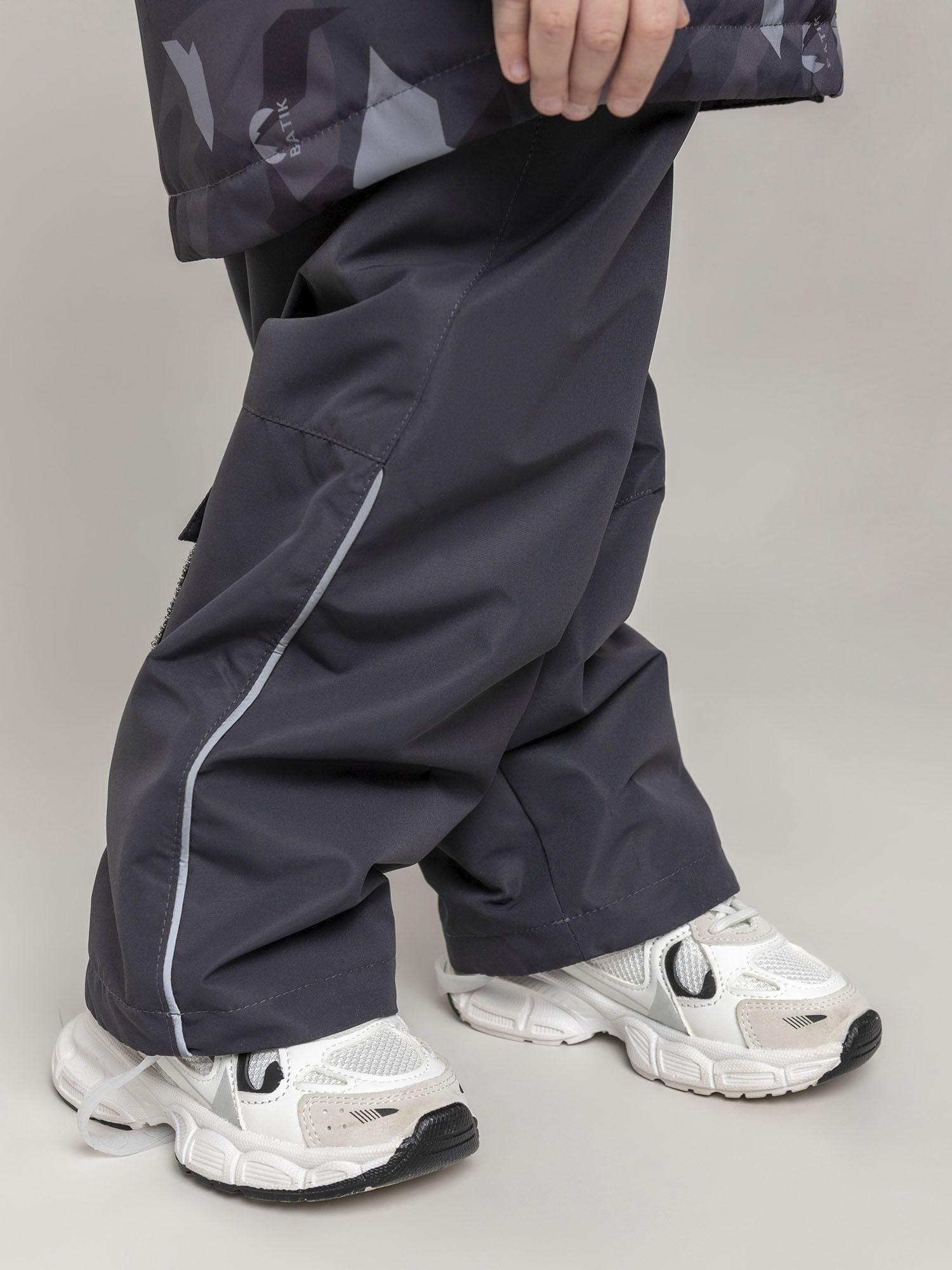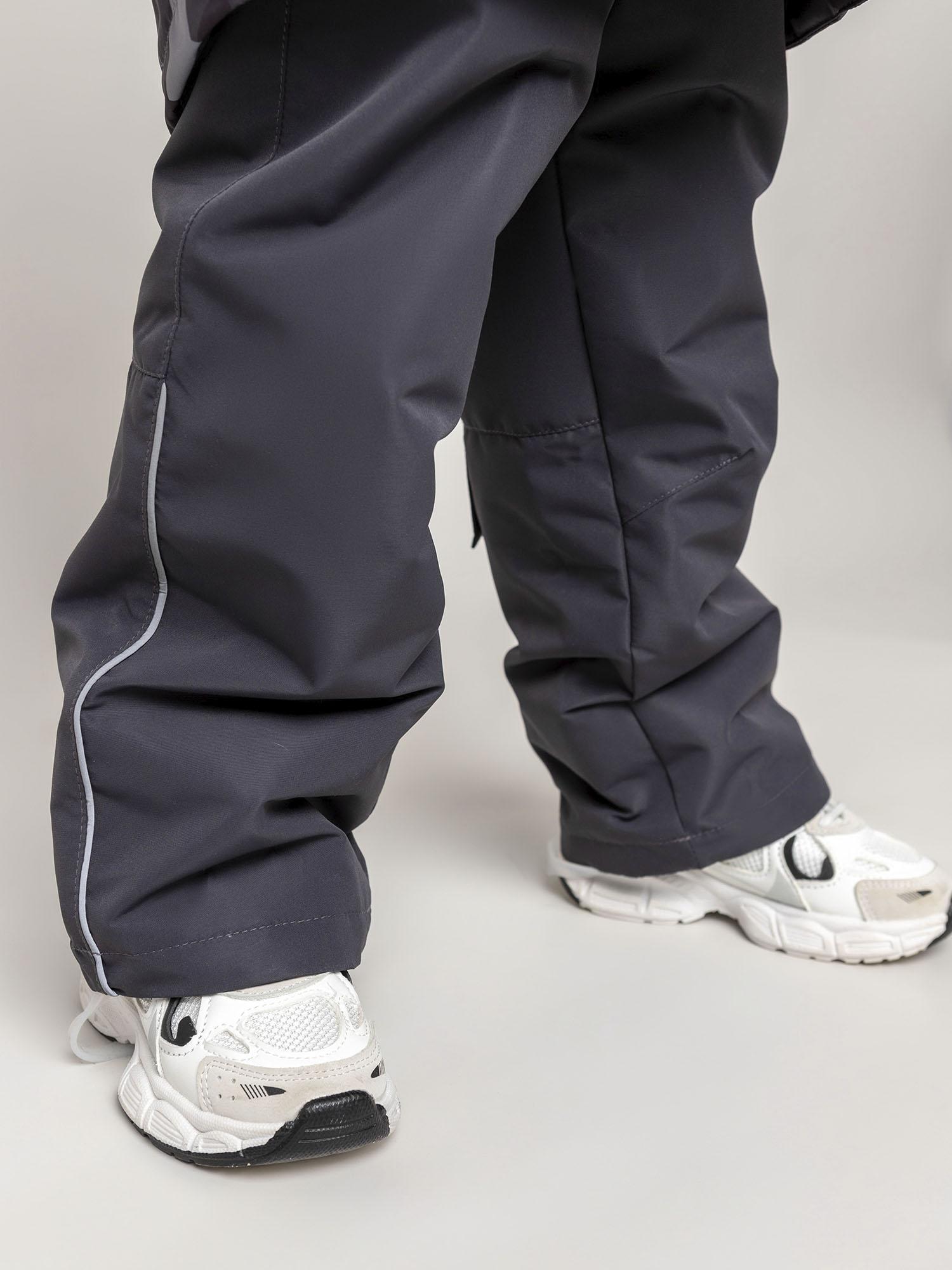Полукомбинезон свободной эргономичной формы на регулируемых бретелях. Внутренняя эластичная тесьма по талии, боковые карманы, декоративные паты для регулировки длины штанин и увеличенные обтачки по низу обеспечивают долговечность и комфорт. Съёмные штрипки удерживают штанины, а светоотражающие элементы повышают безопасность ребёнка в тёмное время суток. В подарок к комплекту идёт брелок.