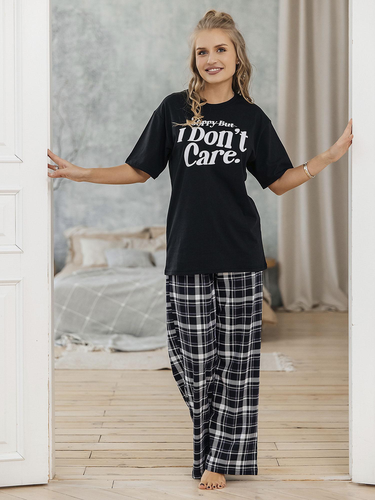 Комплект (футболка кор.рукав+брюки) выполнен из 100 % хлопка. Мягкий, эластичный и приятный к телу материал обеспечивает комфорт в течение дня. Цвет — черный.