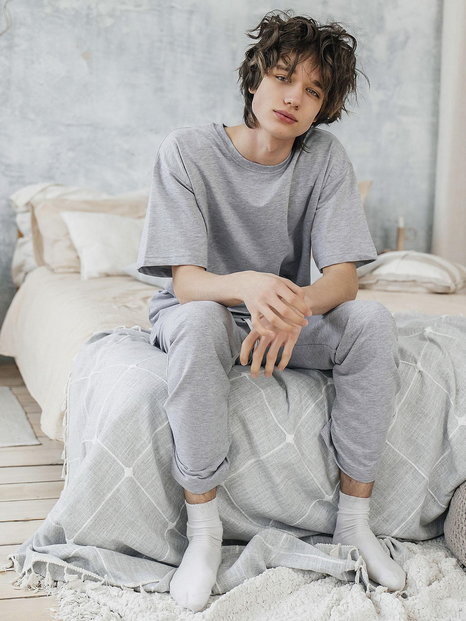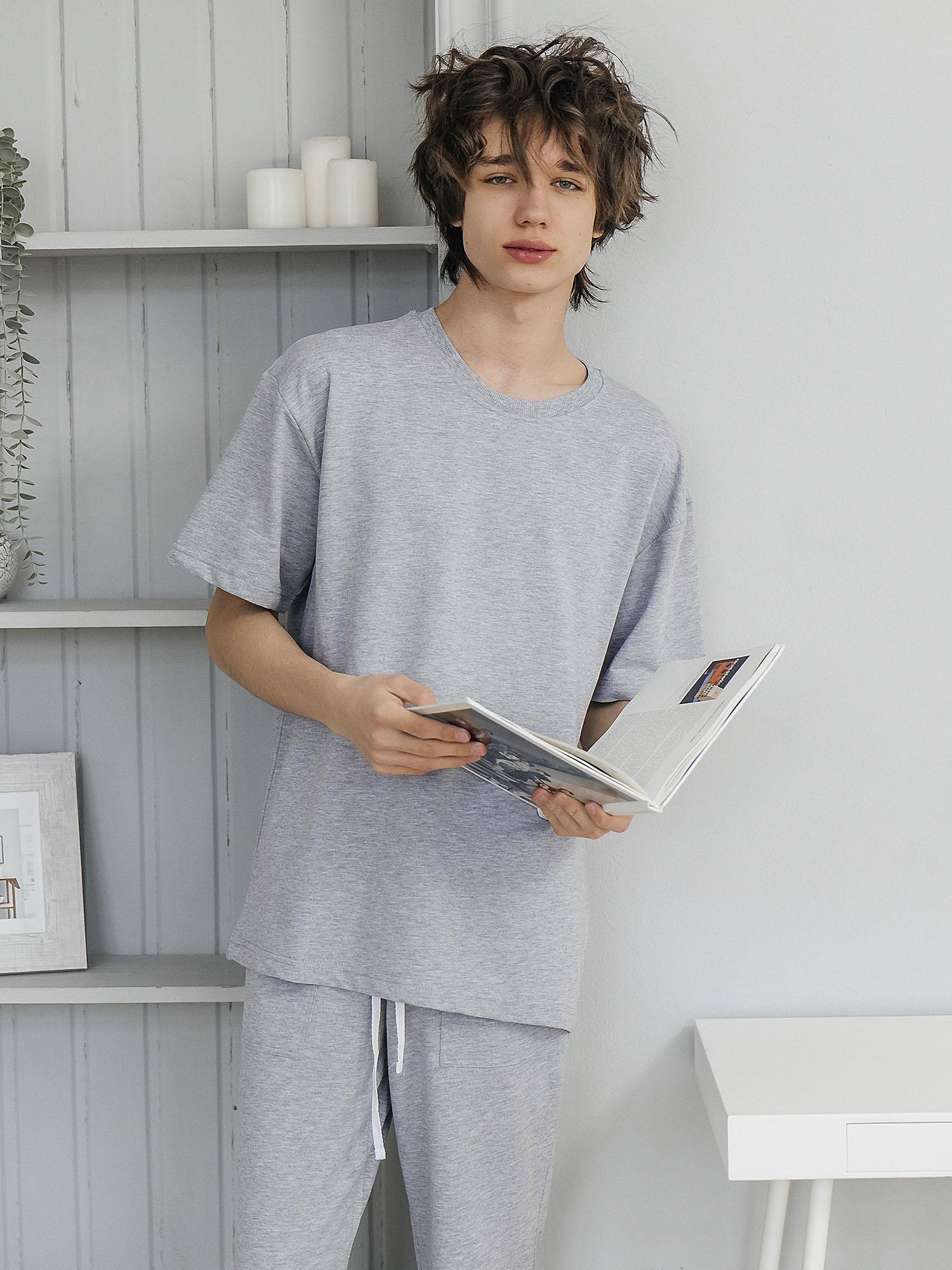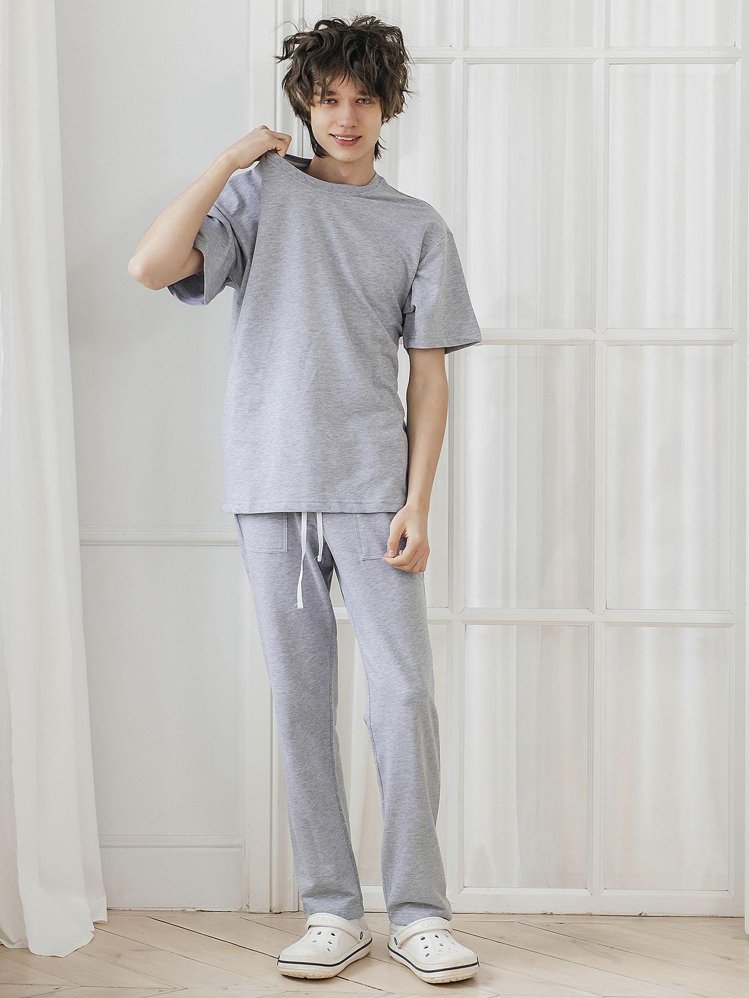 Комплект (футболка кор.рукав+брюки) Футер 2х нитка 100% хлопок. Мягкий, эластичный и приятный к телу материал обеспечивает комфорт в течение дня. Цвет — серый.