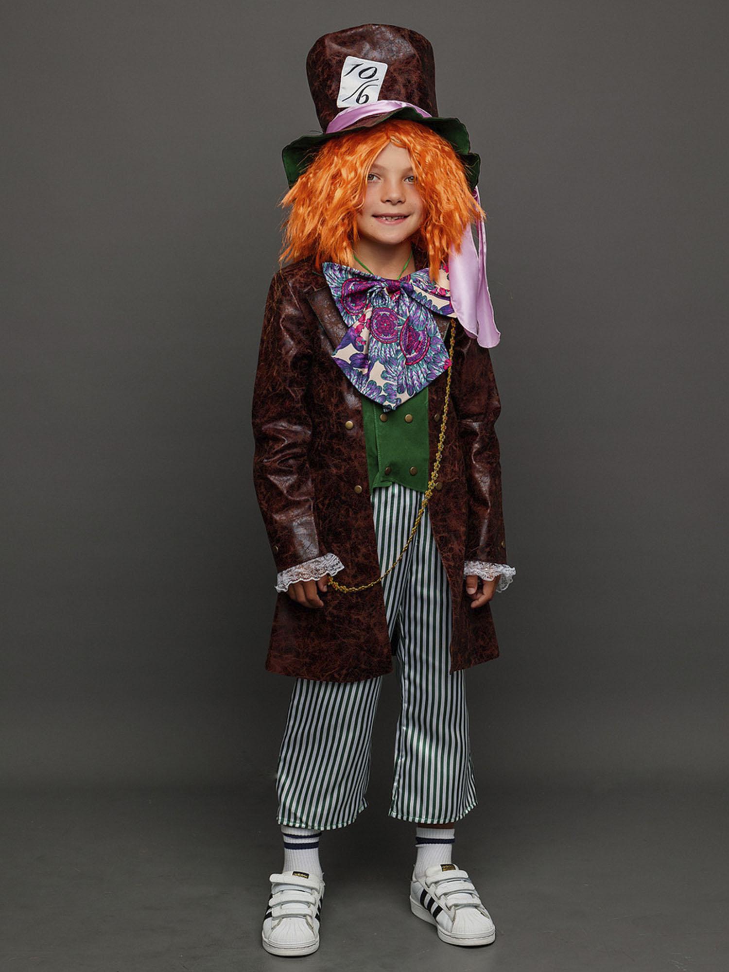 Костюм Безумный Шляпник для косплея, новогоднего утренника и тематического дня Рождения. Эффектный образ для детей 6-12 лет. В комплект входит камзол, бриджи, шляпа. Лицензионная серия Дисней.