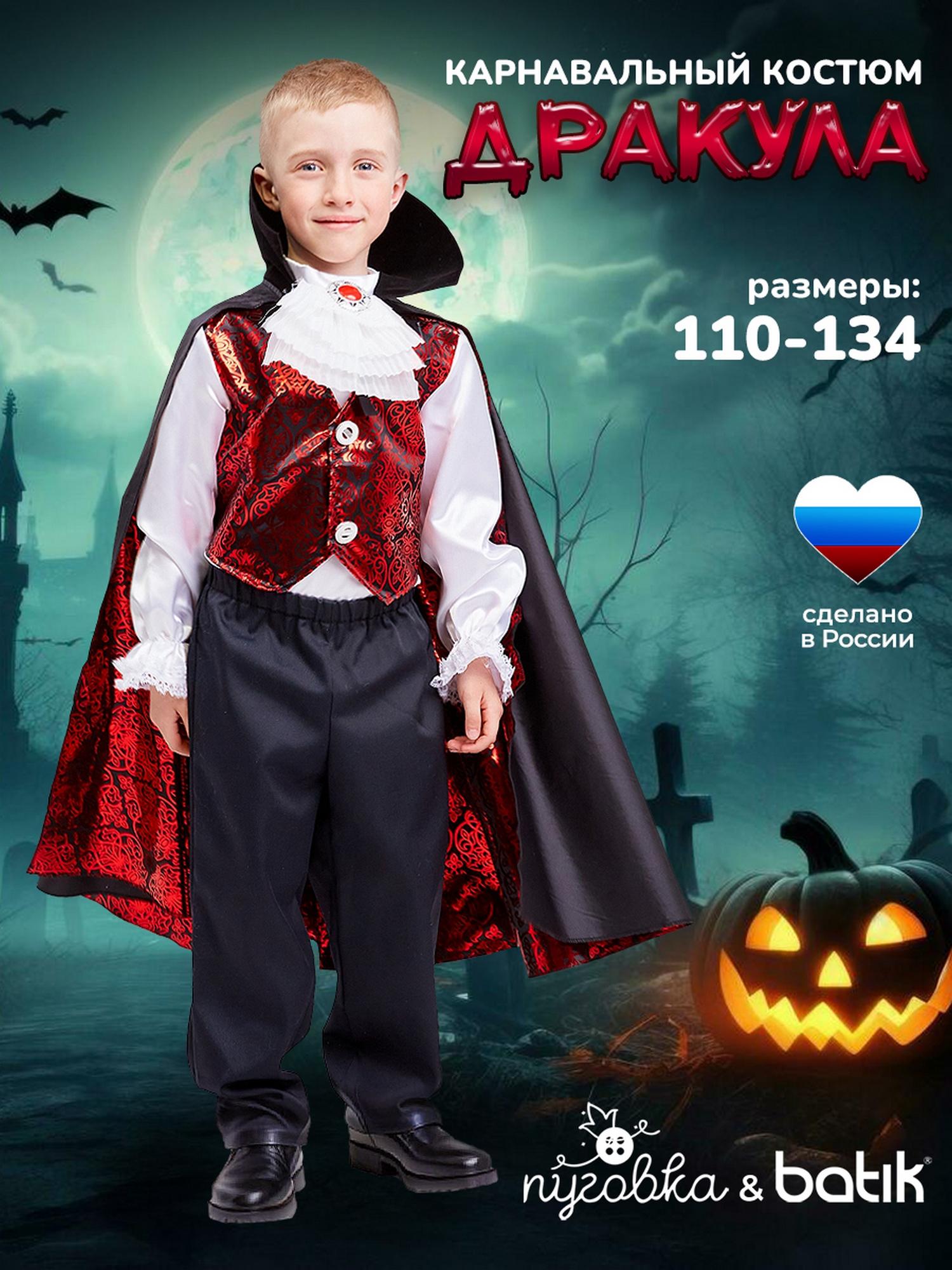 Это яркий образ, который не теряет своей актуальности вот уже несколько лет. Дракула – легендарный персонаж-вампир, известный по книгам и фильмам. Карнавальный образ Дракула от бренда Пуговка выглядит одновременно и устрашающе, и очень стильно. В комплекте вы найдете рубашку, брюки, плащ и вампирские «зубы».
