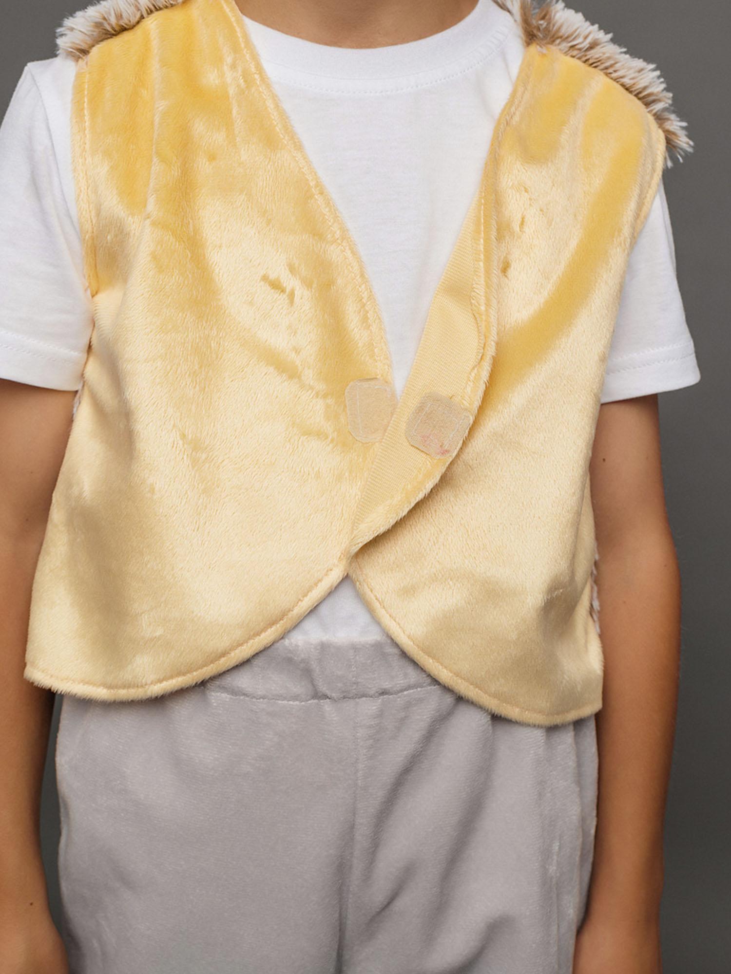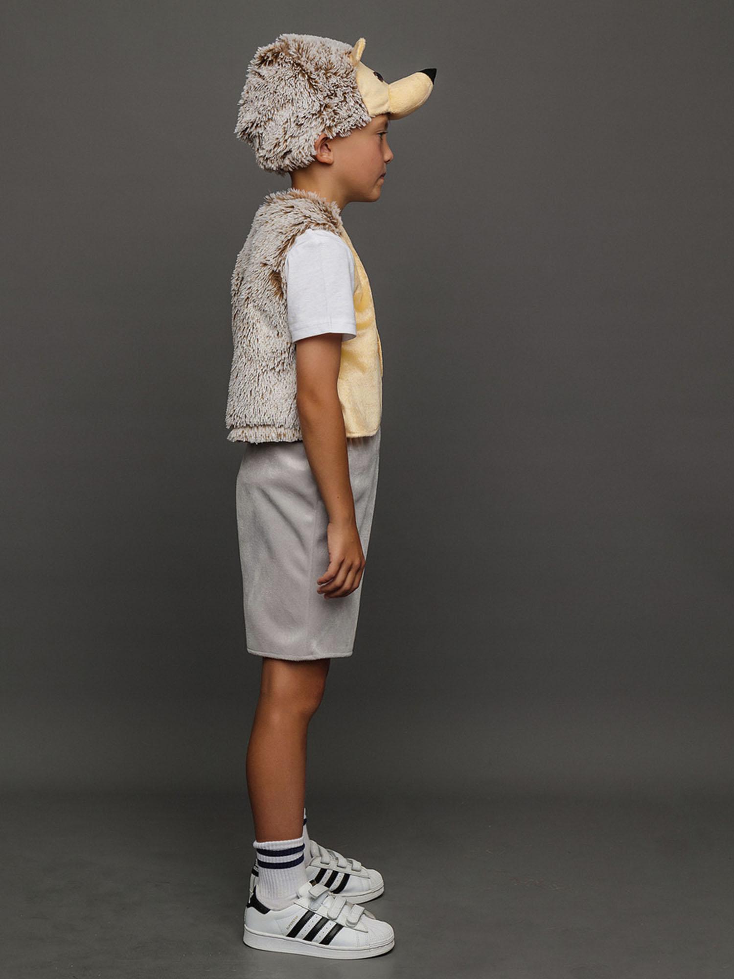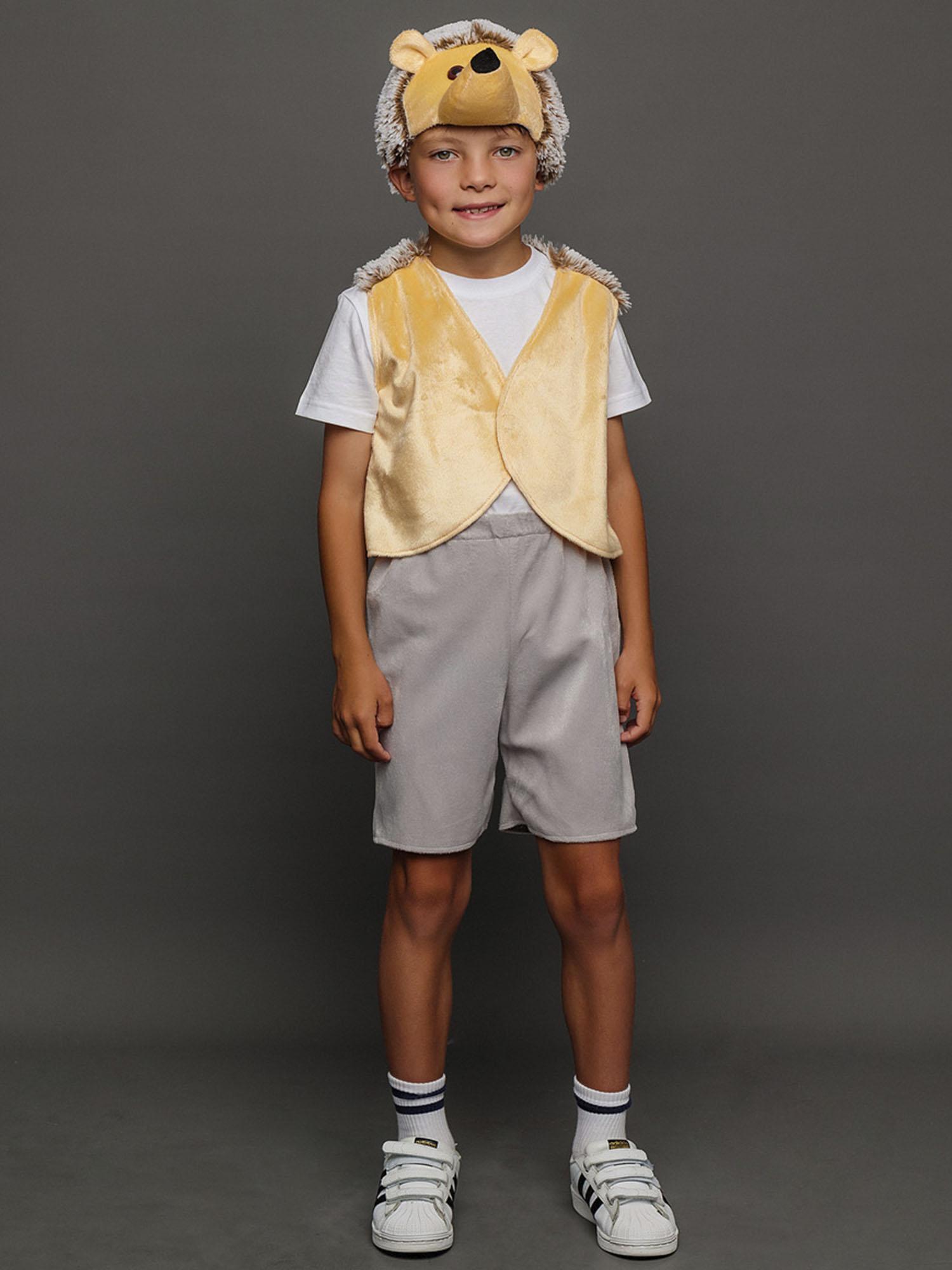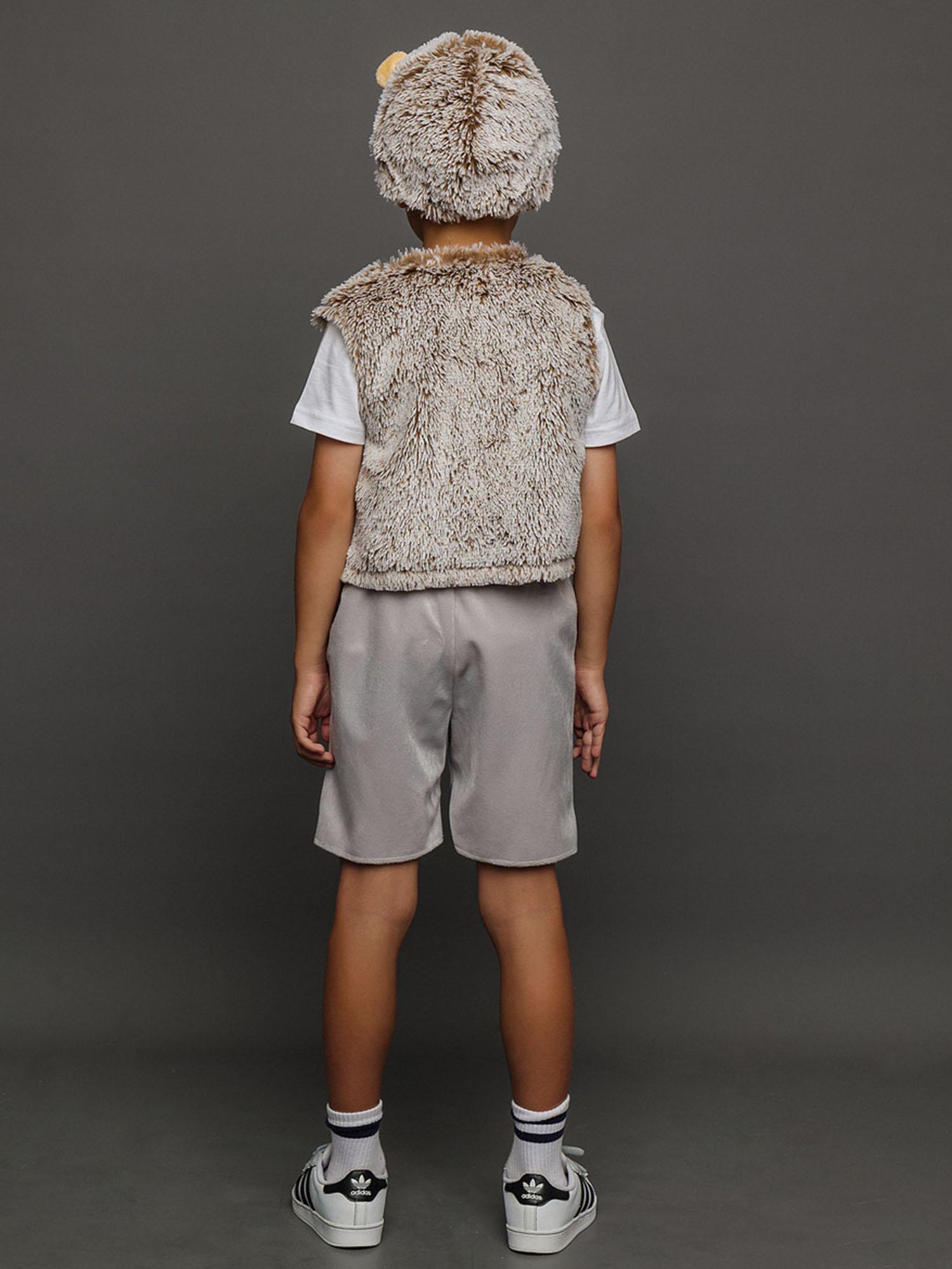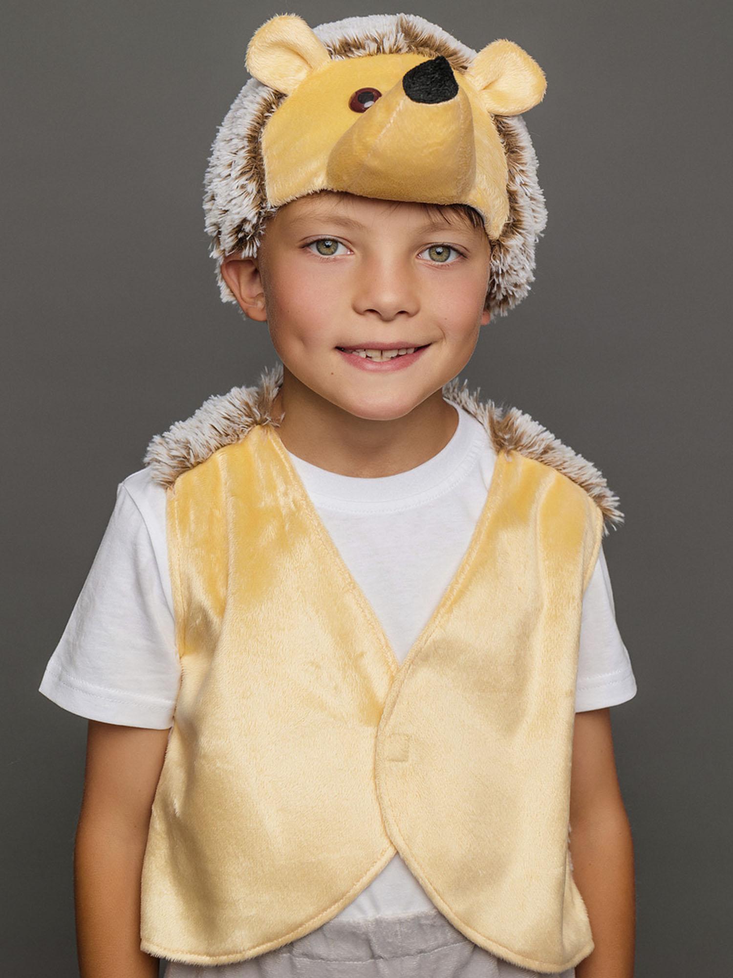 В карнавальном наряде Ежик Степка мальчик сможет отправиться на новогодний утренник или елку, а также принять участие в спектакле. Костюм рассчитан на возраст 4-6 лет. Выполнен в серо-желтом цвете. В комплект входит жилетка, шорты и шапка.