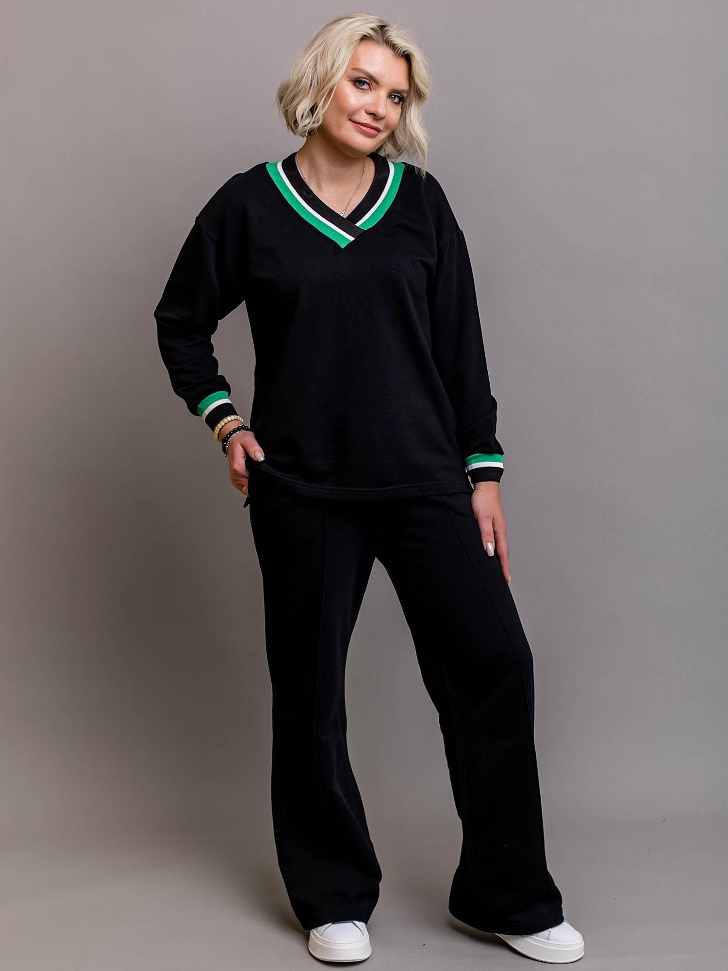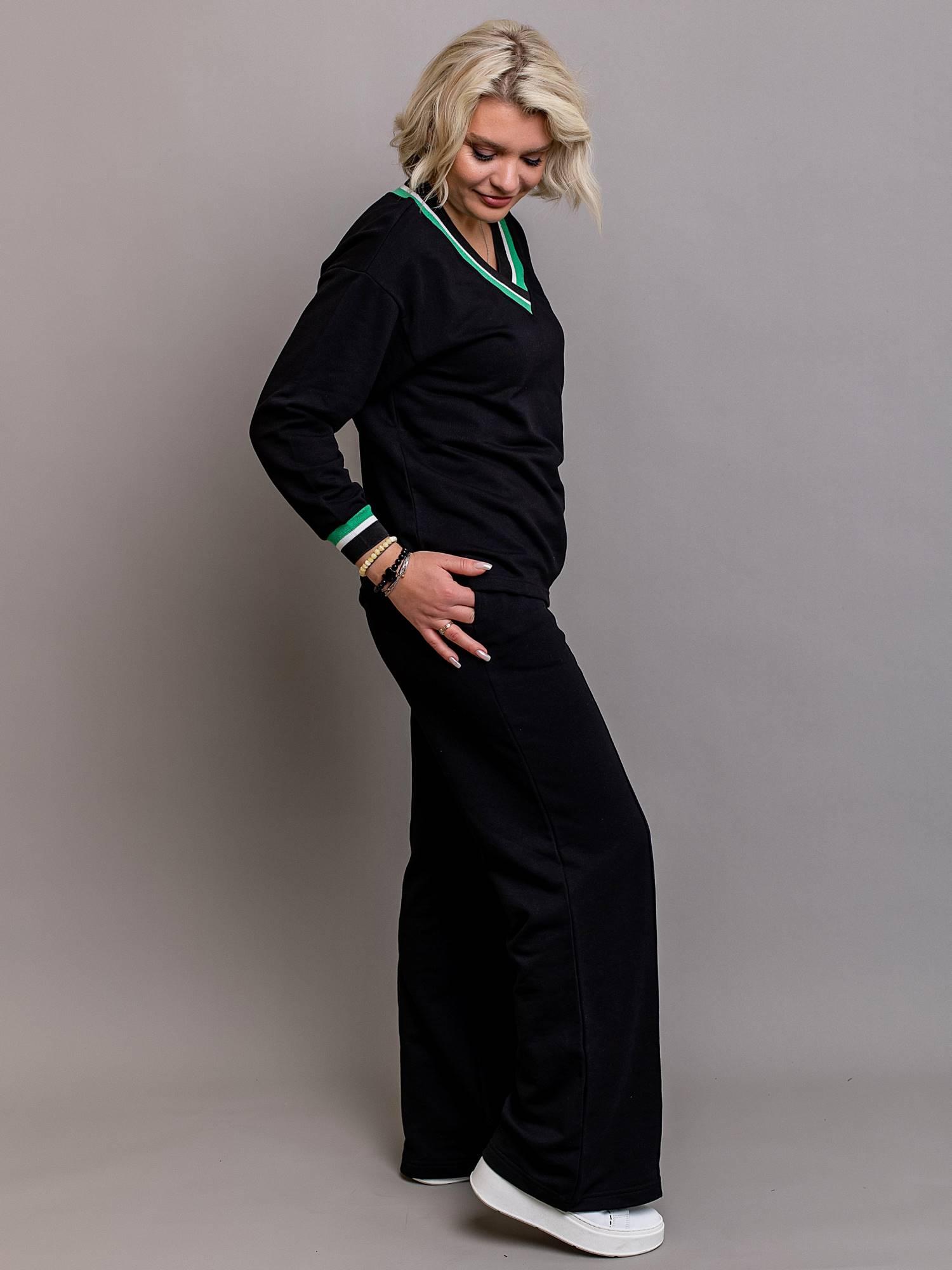 Женский трикотажный деловой костюм оверсайз - это удобный, стильный и многофункциональный комплект. Он идеально подойдет как для повседневного использования, так и для офисных выходов в прохладные осенние дни. Костюм двойка выполнен из качественного хлопка, с добавлением полиэстера, что делает костюм мягким и более износоустойчивым, и удобным в носке (быстро сохнет и не мнется). В комплект входят широкие модные брюки палаццо и свободная кофта oversize с v-образным вырезом и длинным рукавом. Брючный повседневный костюм выполнен из трикотажа премиум качества. Красивый комплект выполнен в спортивном стиле и легко сочетается с обувью на плоской подошве, кроссовками или ботинками на небольшом каблуке. Шикарный костюм со штанами прямого кроя имеет идеальную посадку. Демисезонная одежда без начеса выполнена из плотного футера и идеально подходит для осени, весны и тёплой зимы. Благодаря большой линейке размерного ряда костюм идеально подойдет стройным девушках, беременным и женщинам больших размеров (plus size, плюс сайз). Классические прямые штаны можно носить с рубашкой в офис или футболкой на прогулке. Хлопковый утепленный базовый свитшот можно сочетать с джинсами в летний период. Его также можно носить как домашний комплект. Легкая офисная форма подойдет для прохладного лета. Модный и стильный костюм для женщин, который станет главным трендом в 2023 году. Молодежный однотонный костюмчик с манжетами разного цвета подойдет для отдыха дома, поездки в отпуск и занятий спортом на улице, а также на праздник. Вечерний уличный костюм поможет вам составить нарядный и праздничный образ, соответствующий популярным трендам этого сезона. Теплый прогулочный и походный костюм хорошо сидит на высоких, невысоких и полных (sizeplus) девочках и подходит на осенний, весенний и зимний период. Черный лонгслив с цветными манжетами- классика моды и подходит для мам и в период беременности. Вещи нашего бренда производятся в России и имеют хороший состав и премиум качество.