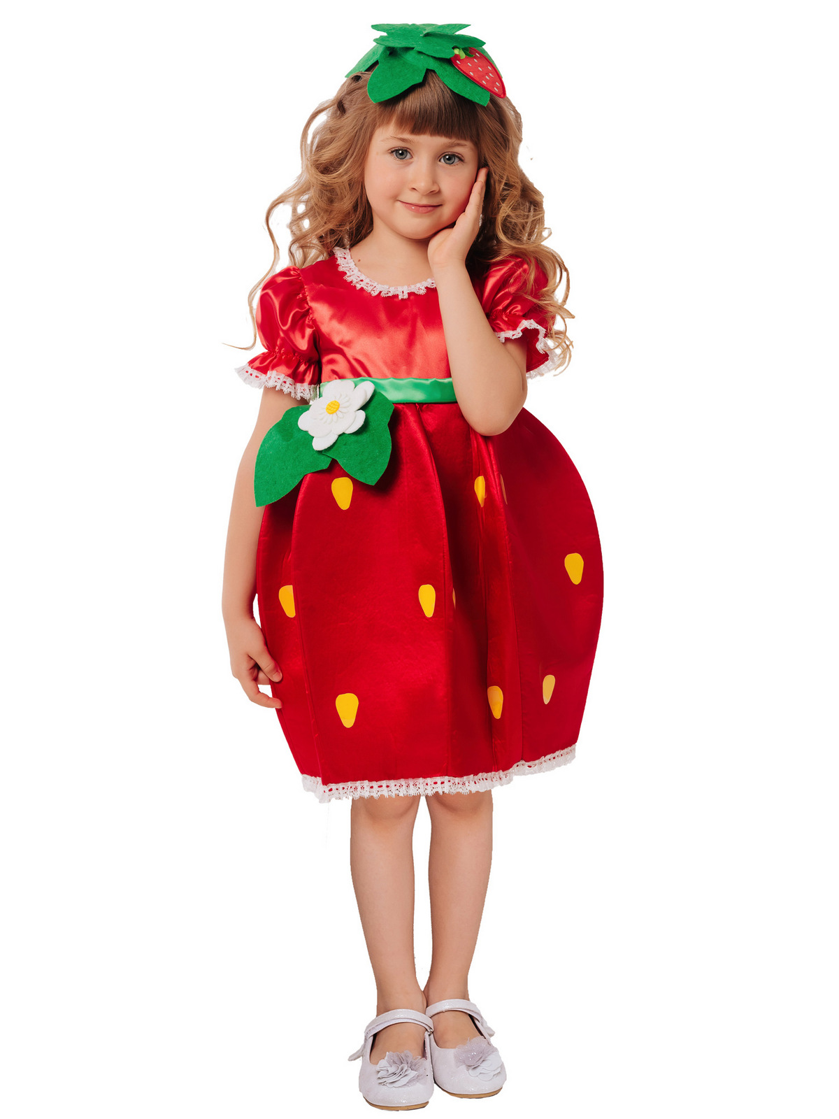 Костюм Клубнички для ребенка - "сочная" новинка в коллекции Веселая Полянка бренда Пуговка. Костюм ягоды клубники подойдет для тематического утренника или спектакля. Комплект состоит из платья и ободка.