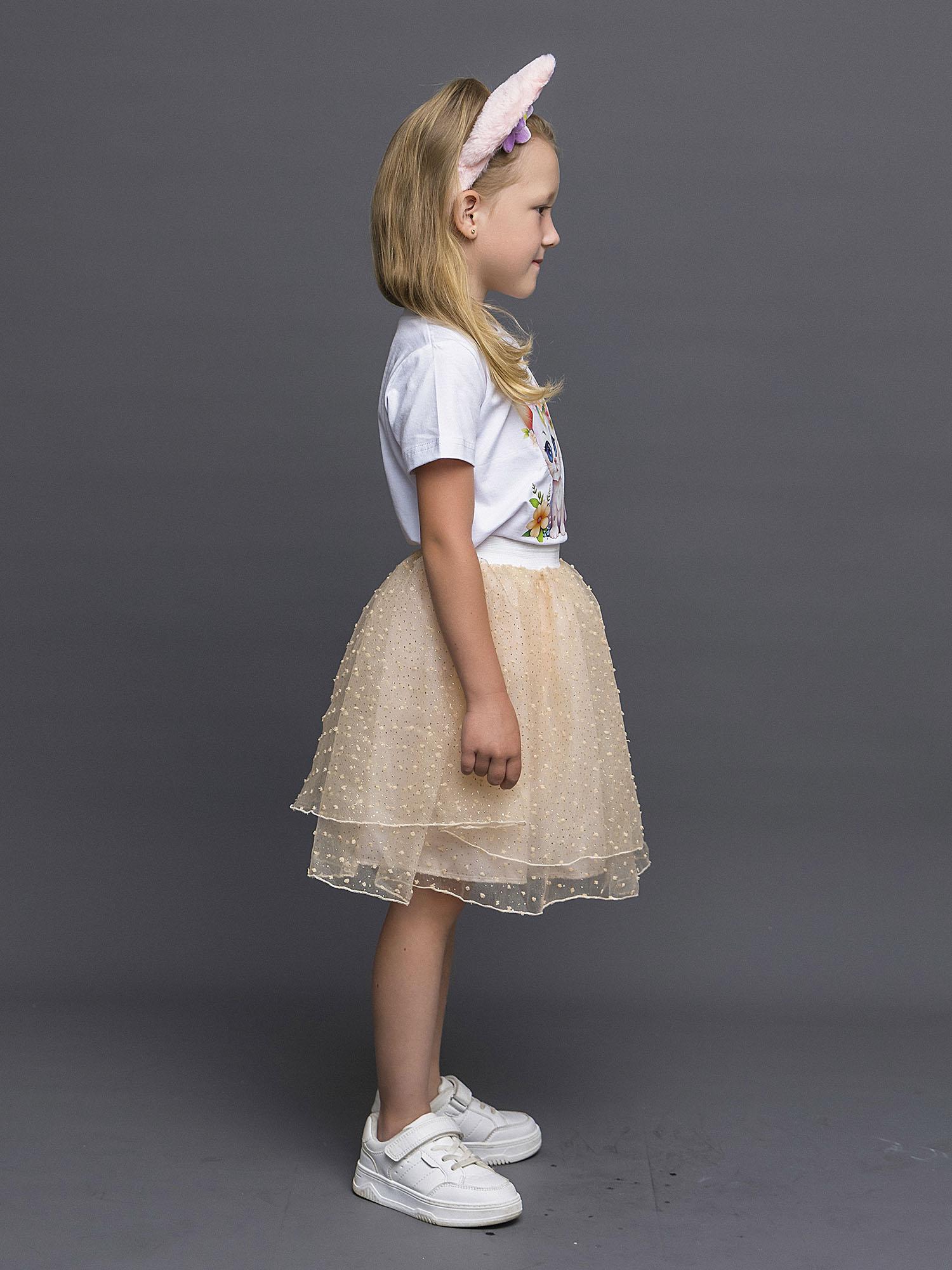 Карнавальный костюм для девочки Зайка. Костюм состоит из пышной юбки на резинке, футболки с коротким рукавом, ободка с ушками и цветочком. Подойдет на новогодний и детский утренник в садике, для праздничной ёлки, карнавального вечера, фотосессии и просто нарядиться в гости.