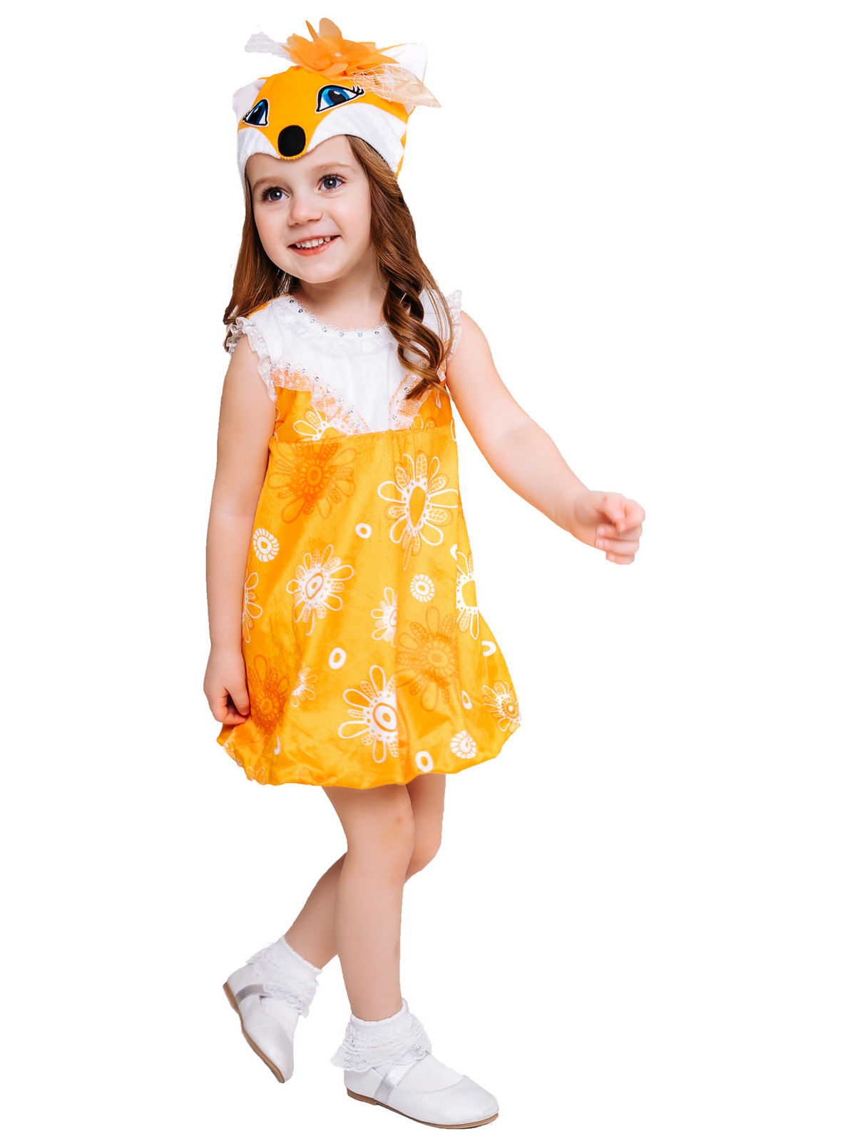 Несмотря на то, что лиса обычно хитрый персонаж, в нашей Лисе Асольке такого нет. Она добрая и совсем не хитрит, а умеет создать веселый праздник. В комплект карнавального костюма входит платье и шапочка. Подойдет для девочек 3-5 лет.