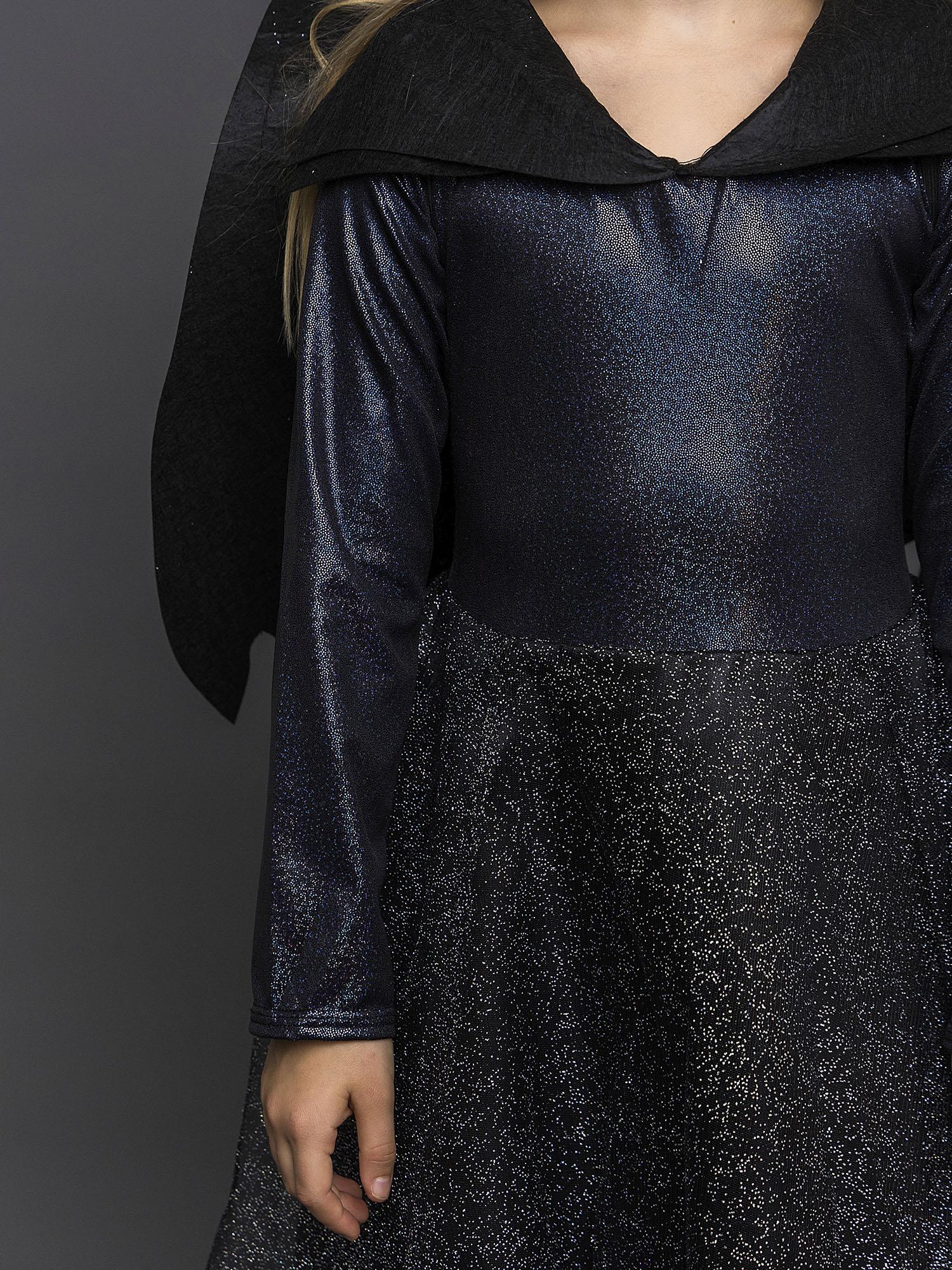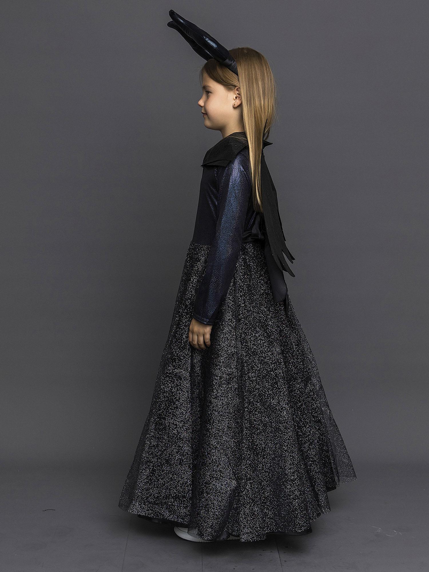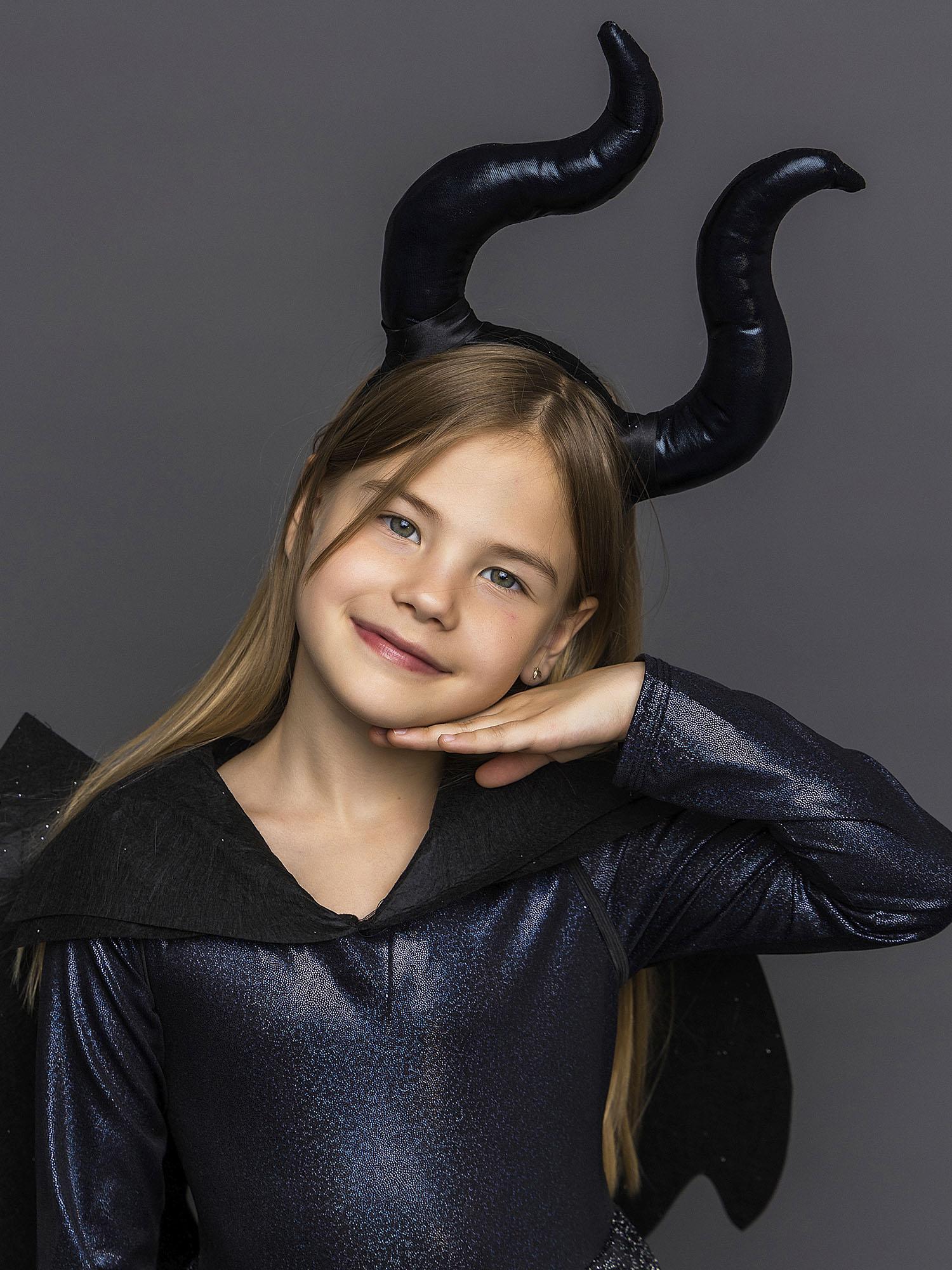 Костюм Малефисенты детский с крыльями - шикарный образ на Хэллоуин, день Рождения или новогодний утренник. В таком наряде ни одна девочка не останется без внимания! Костюм по мотивам фильма "Малефисента" выполнен по лицензионному соглашению с компанией Дисней. В комплект входит черное платье, крылья и рога.