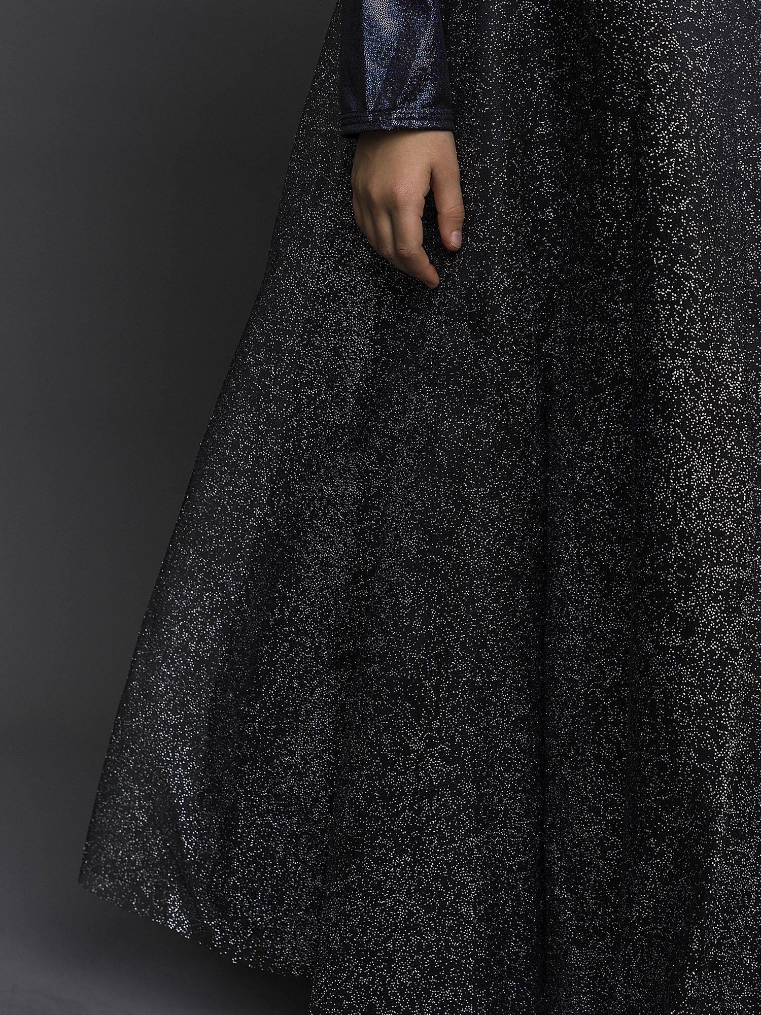 - Платье длинное блестящее с фигурным воротником