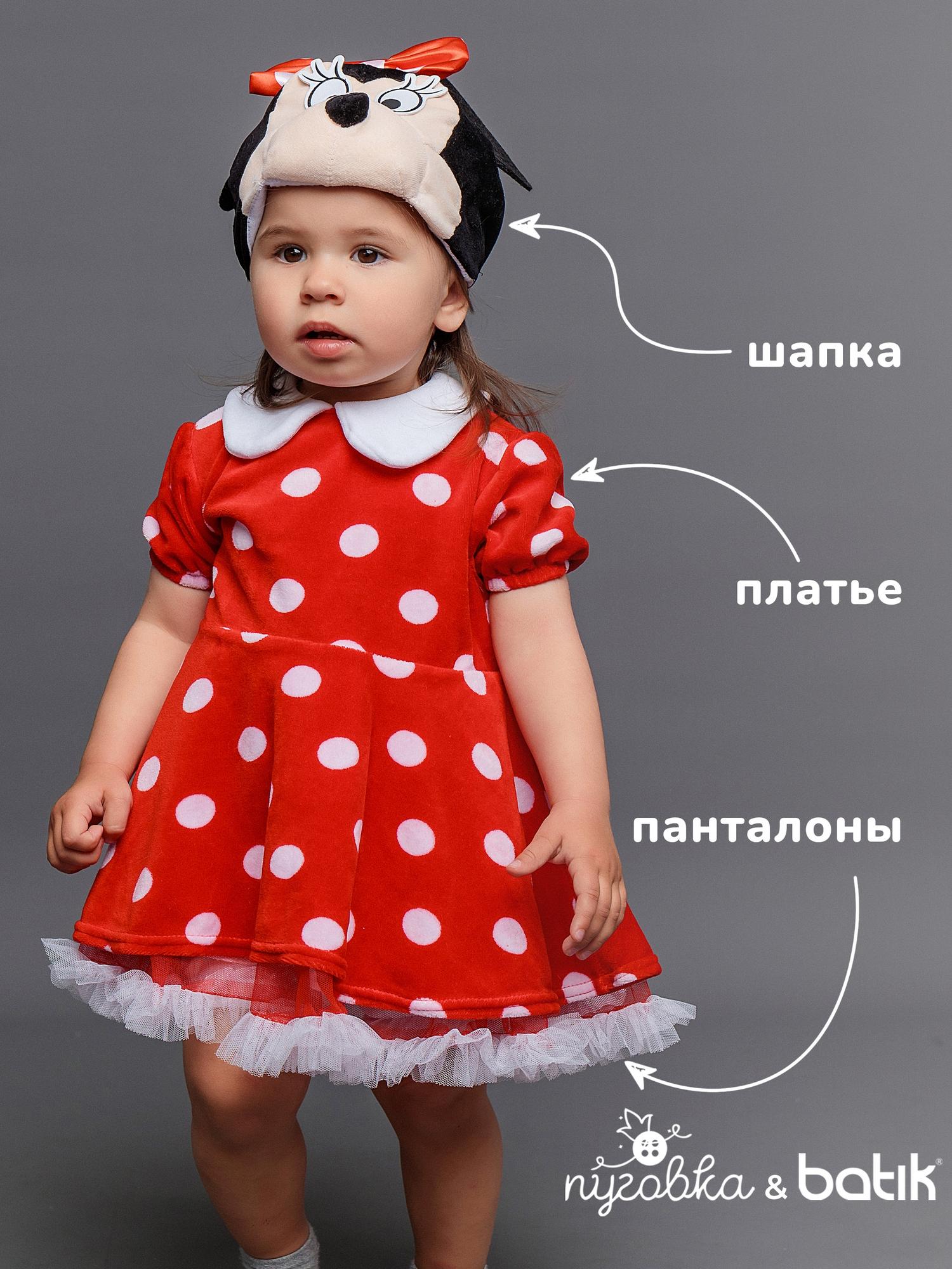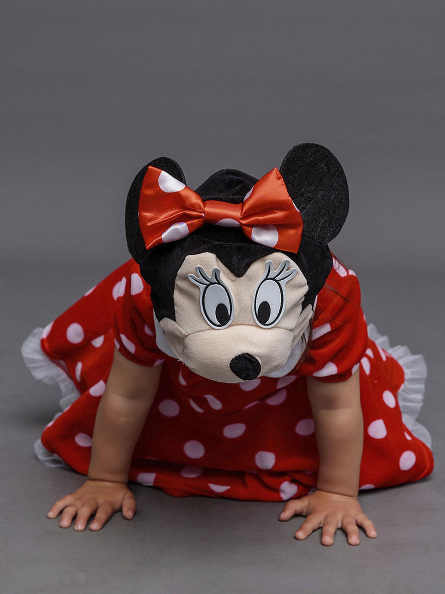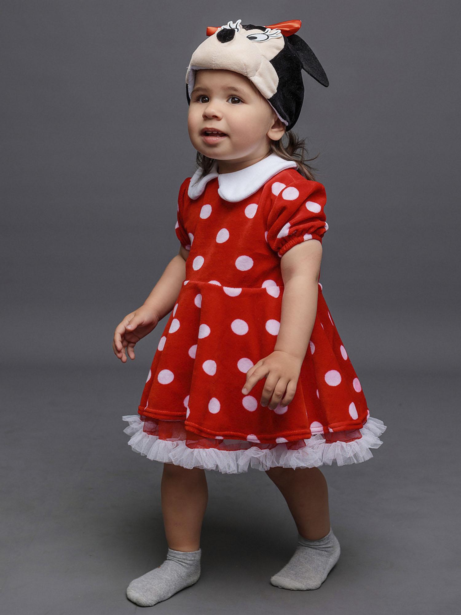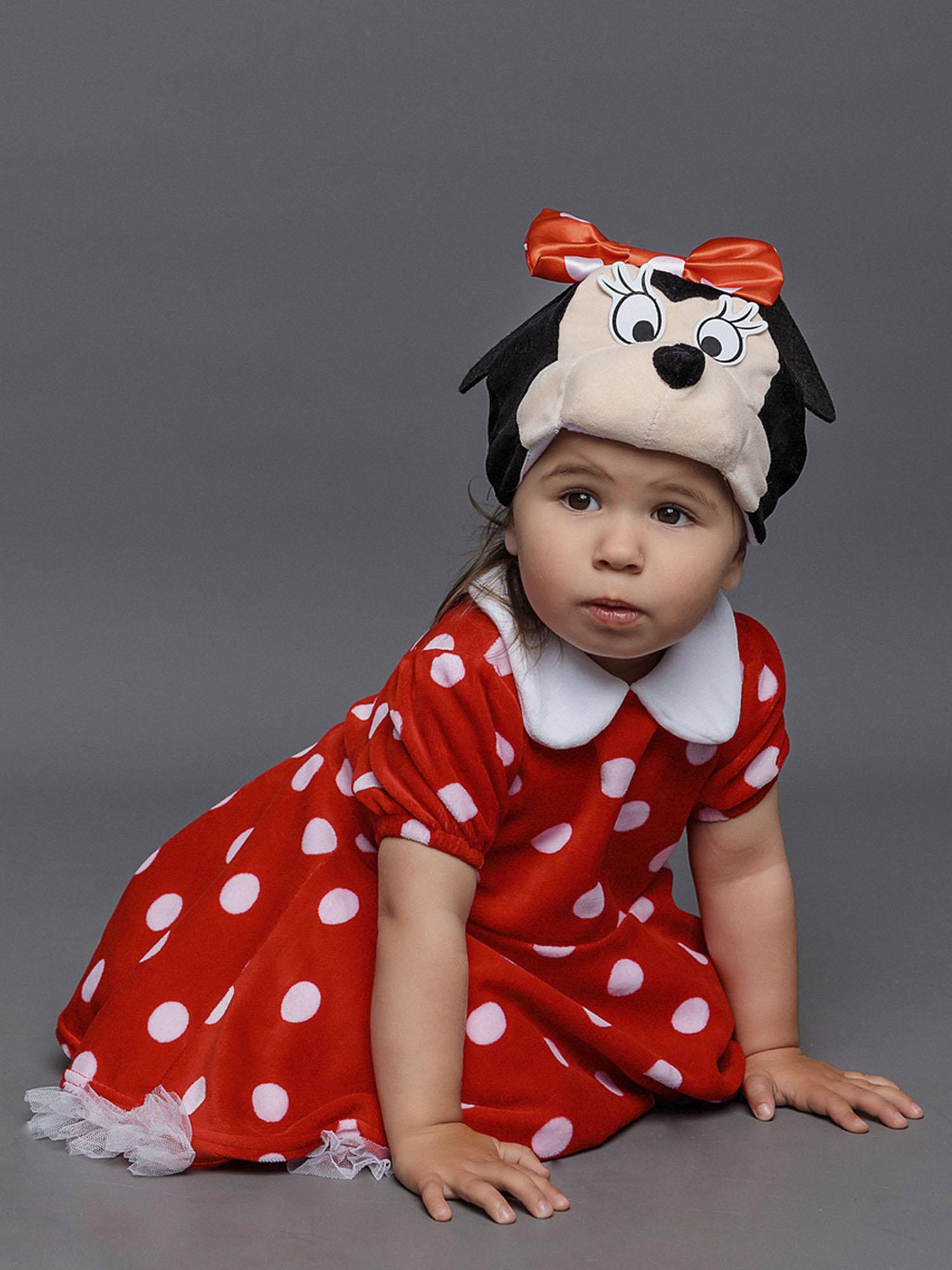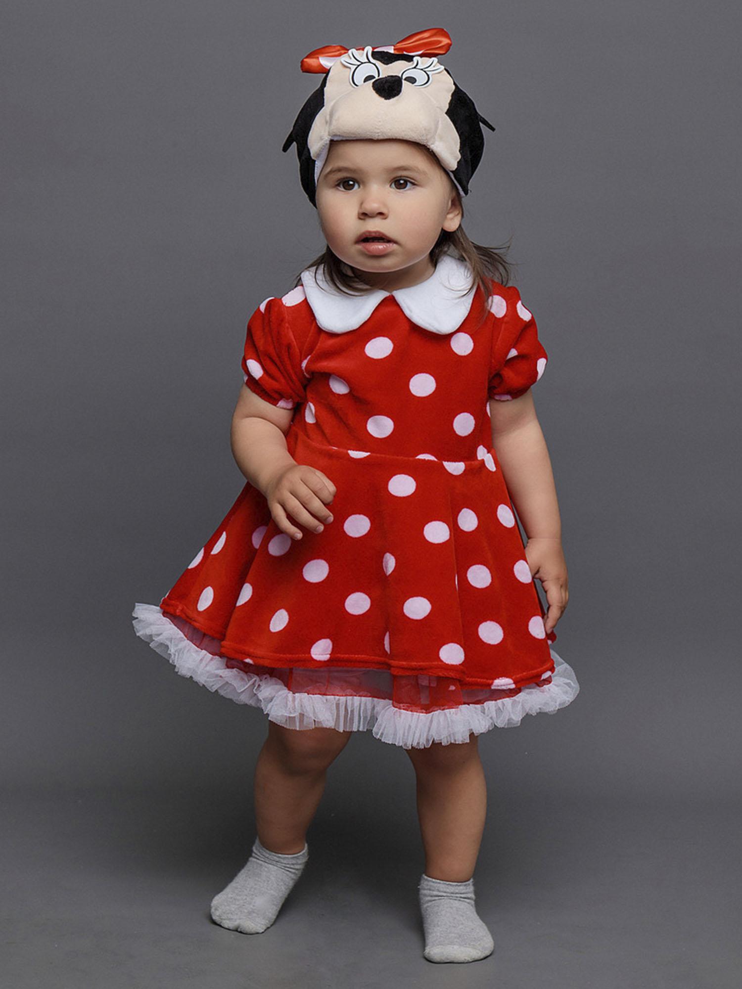 Костюм Минни Маус детский на годик (размер 74). Очаровательный костюмчик красного цвета в белый горошек. Комплект состоит из платья и маски.
