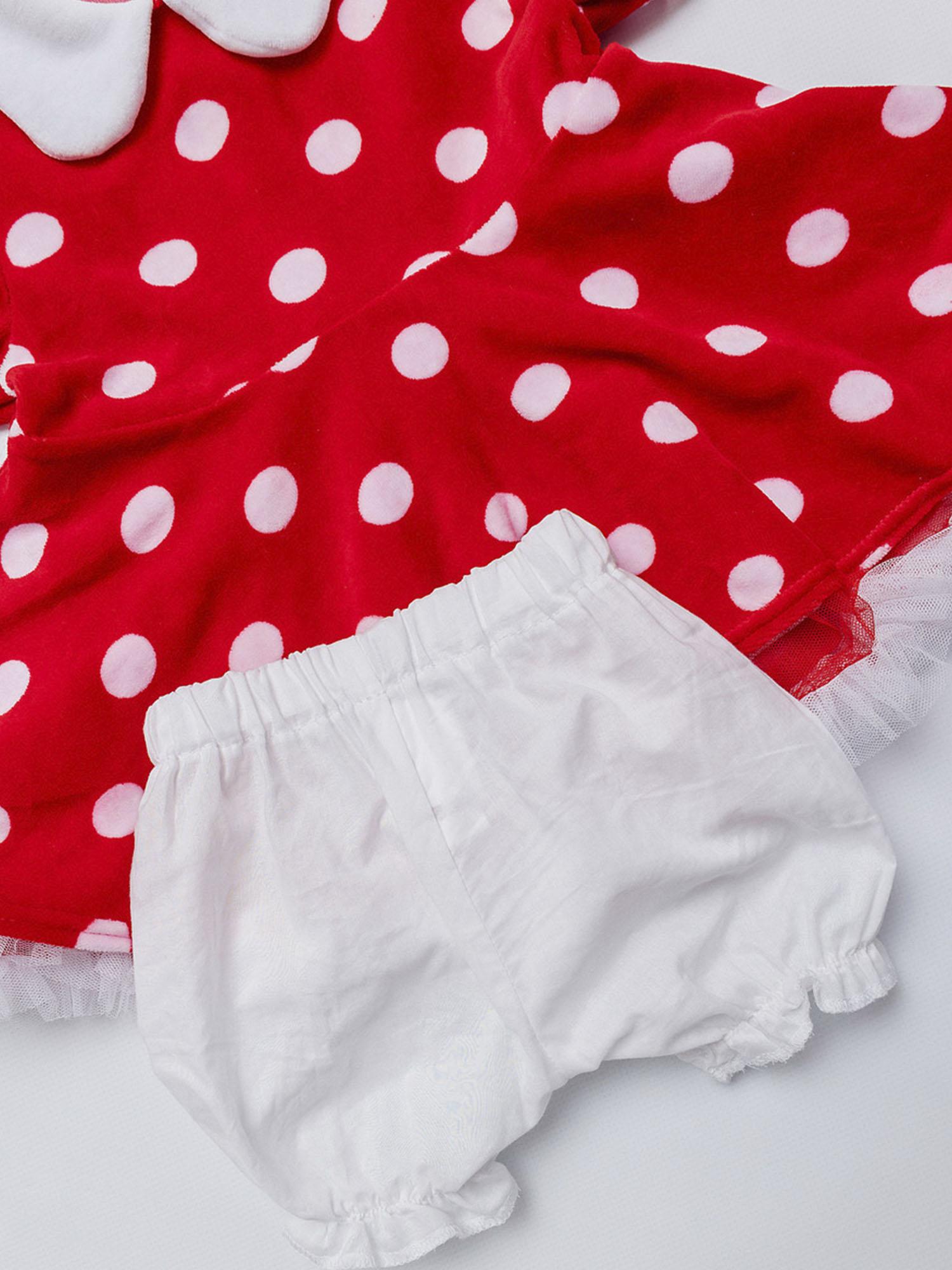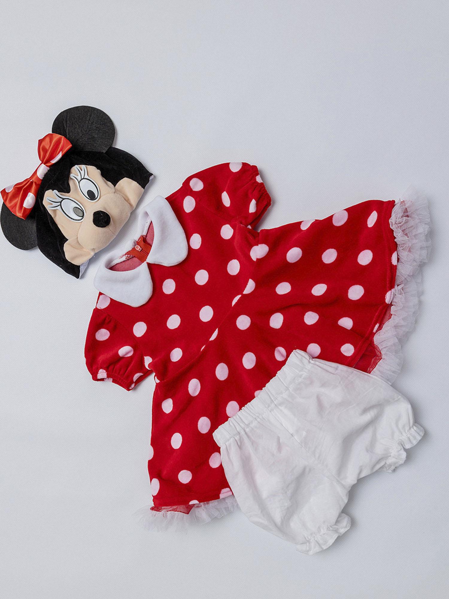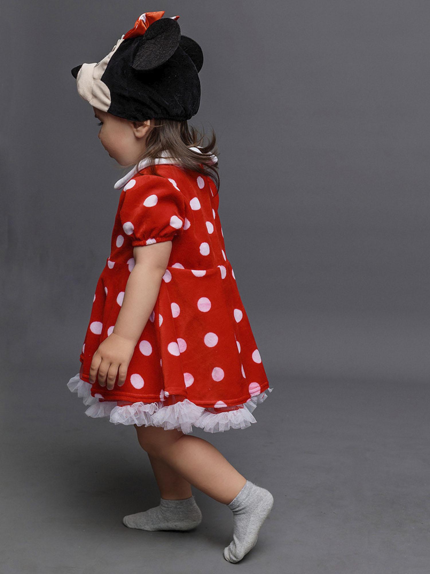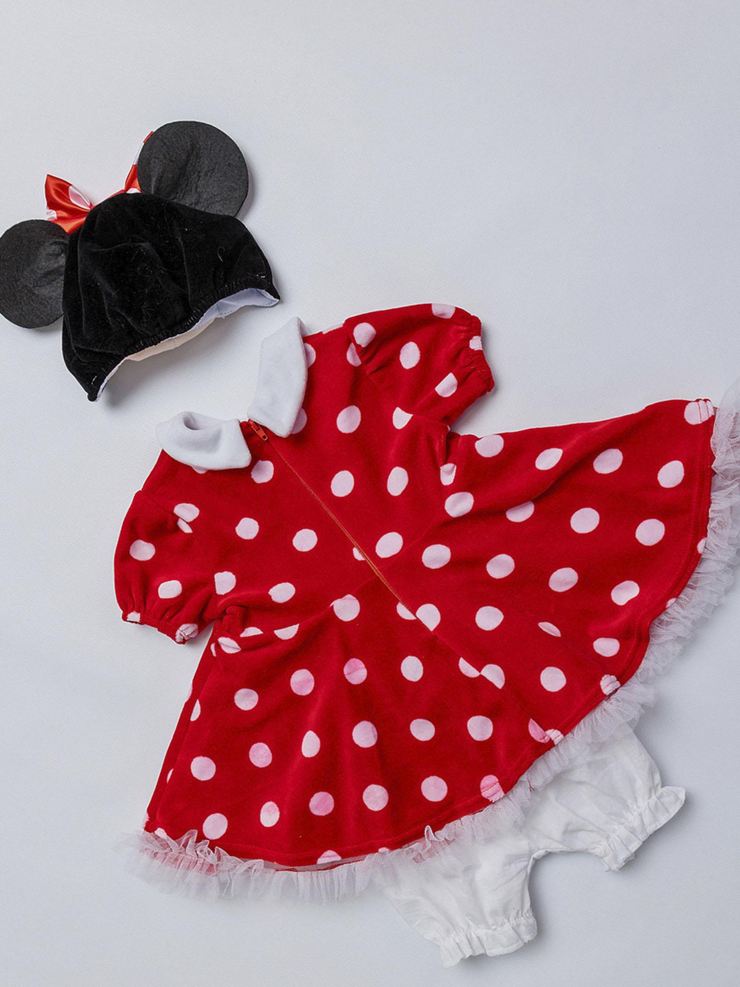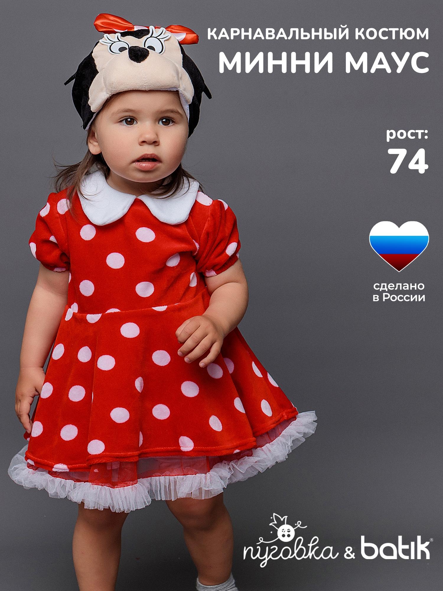 Костюм Минни Маус детский на годик (размер 74). Очаровательный костюмчик красного цвета в белый горошек. Комплект состоит из платья и маски.