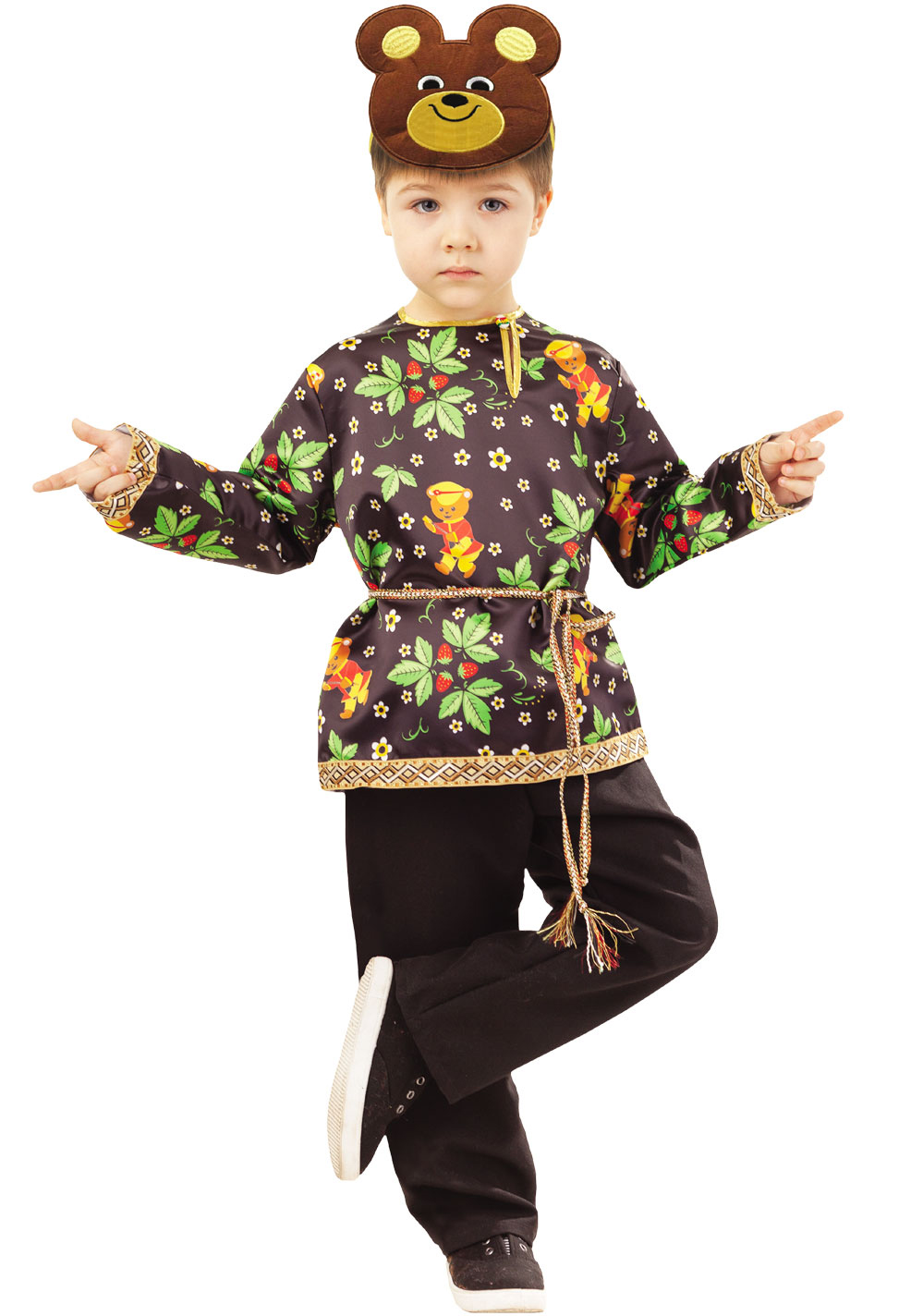 Мальчики обожают костюмы мишек. Предлагаем вам карнавальный костюм Мишка Топтыжка, который отлично подойдет для любого праздника, утренника или спектакля. Прекрасный и запоминающийся образ понравится всем друзьям и окружающим. Костюм включает в себя рубашку, штаны, маску и пояс.