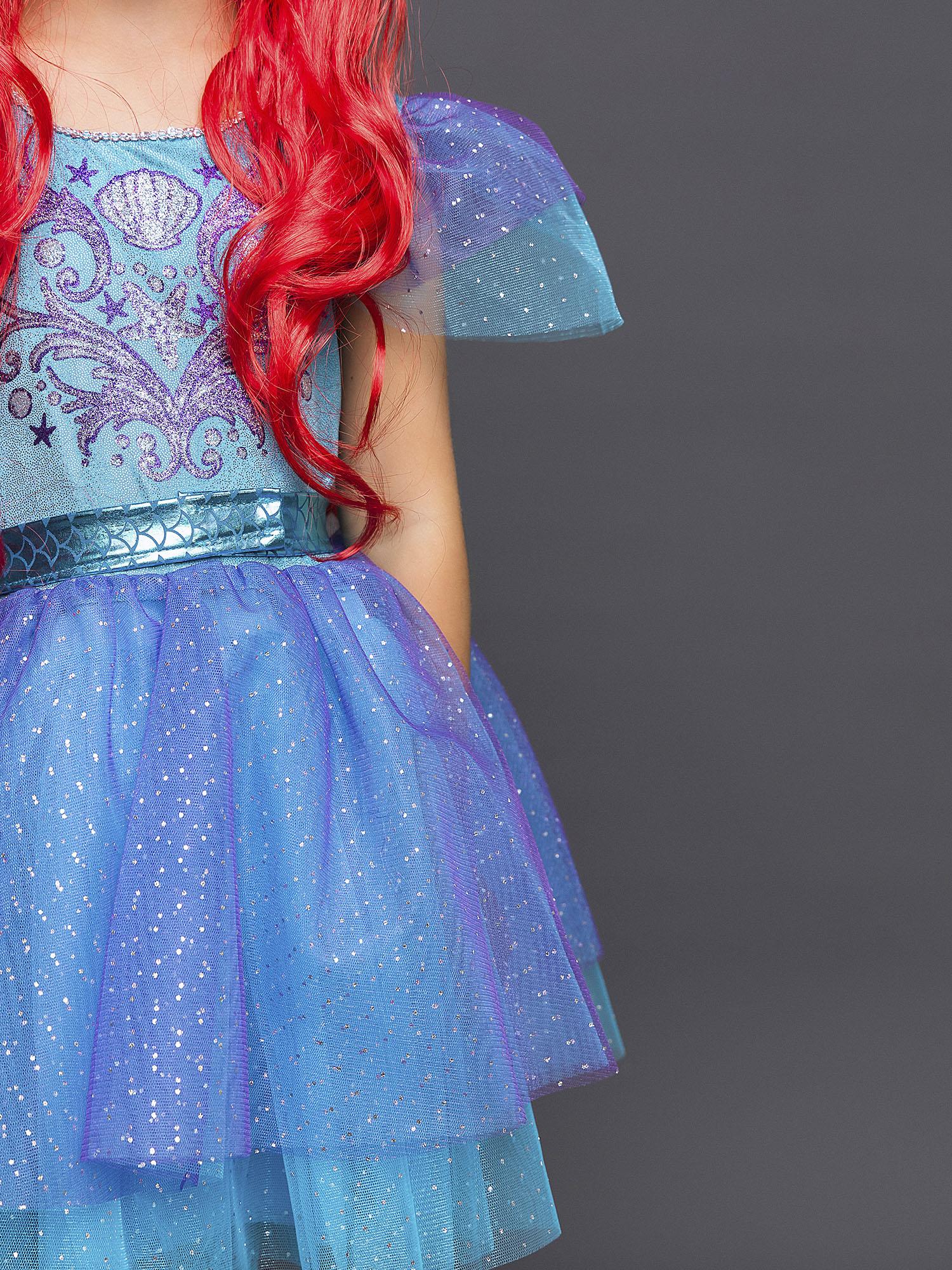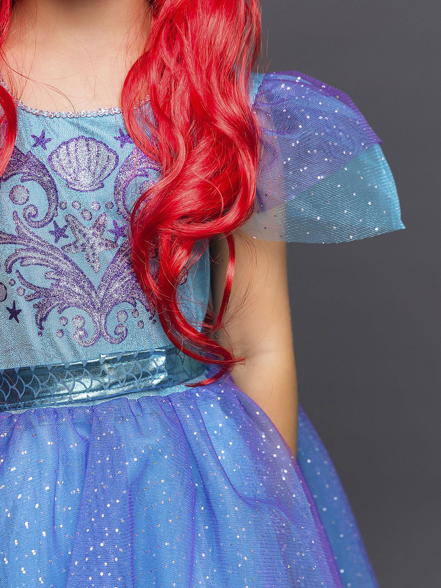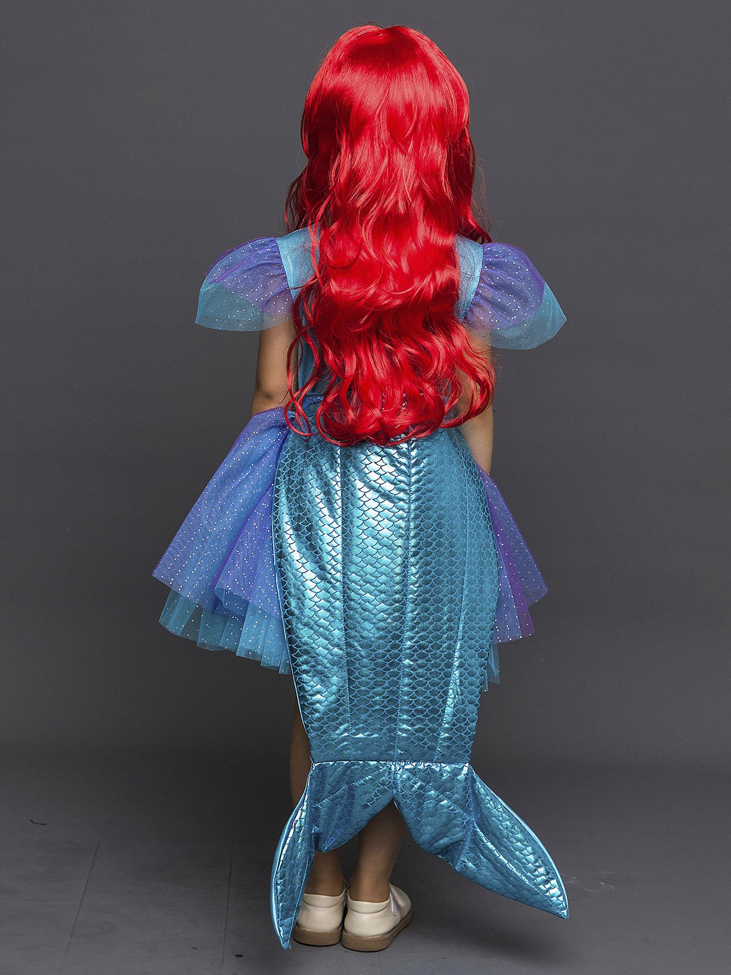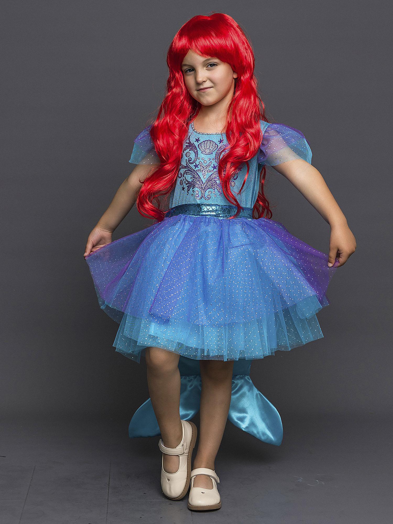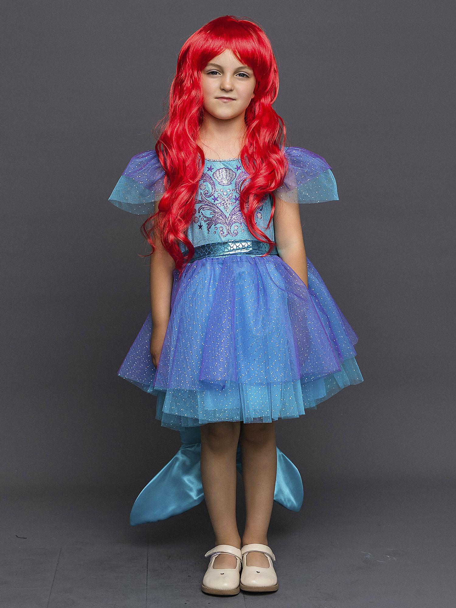 Новогодний костюм для девочки Русалочка Ариэль станет любимым нарядом вашей малышки, ведь он такой яркий и красивый! Наряд из лицензионной коллекции Дисней подарит ощущение настоящей сказки. Комплект костюм Русалочки состоит из платья и парика.