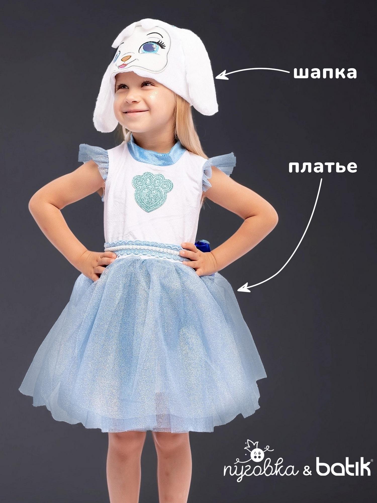 - Верх платья белый с голубой нашивкой, юбка блестящая голубая