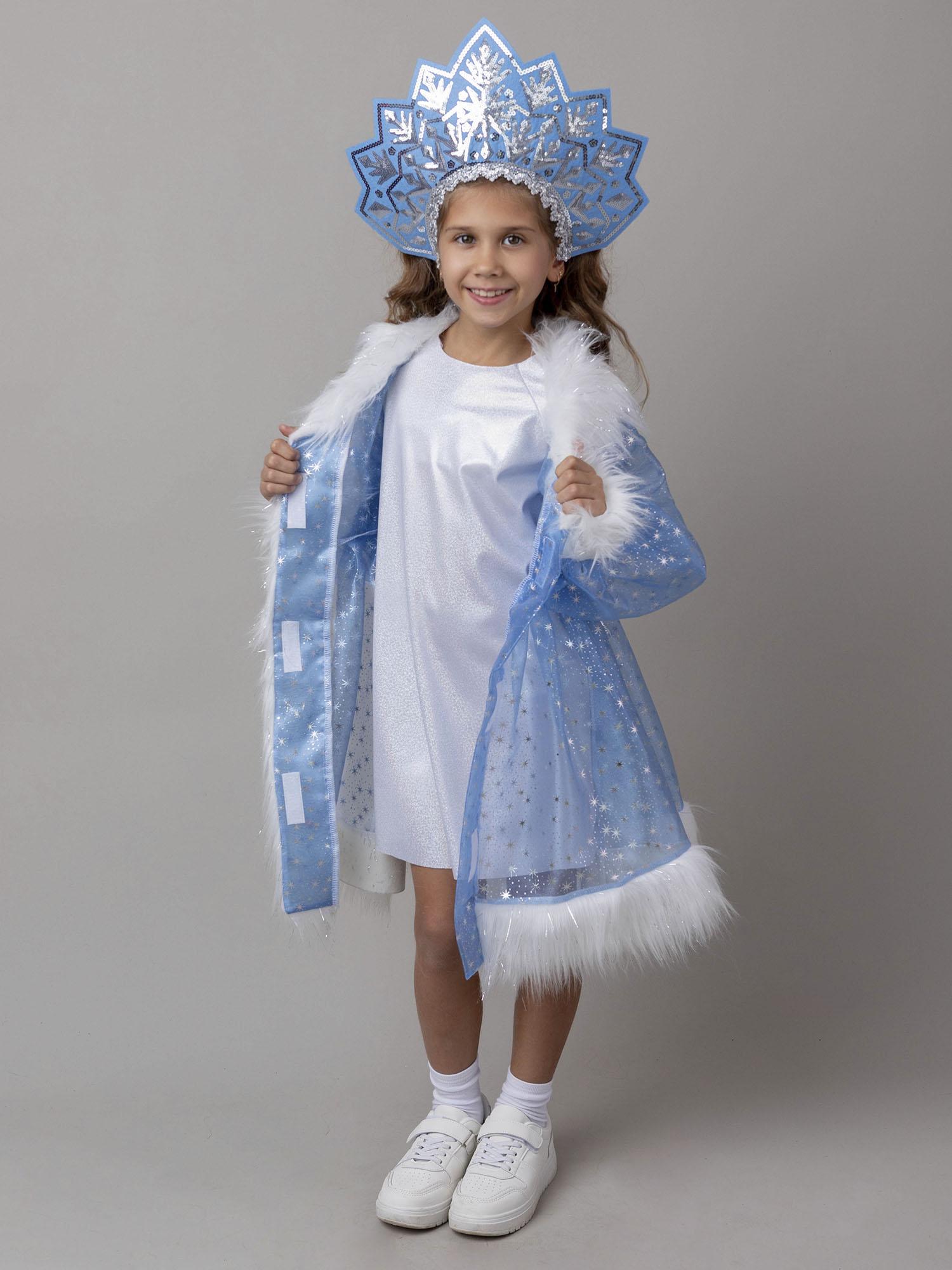 Снегурочка Катюша — нарядный новогодний костюм, сочетающий блеск и нежность. В комплекте верхнее платье из органзы с меховой отделкой, нижнее трикотажное платье и изящный кокошник с мехом. Материалы: трикотаж голограмма серебро, органза и мягкий мех. Идеален для утренников, фотосессий и праздничных выступлений.