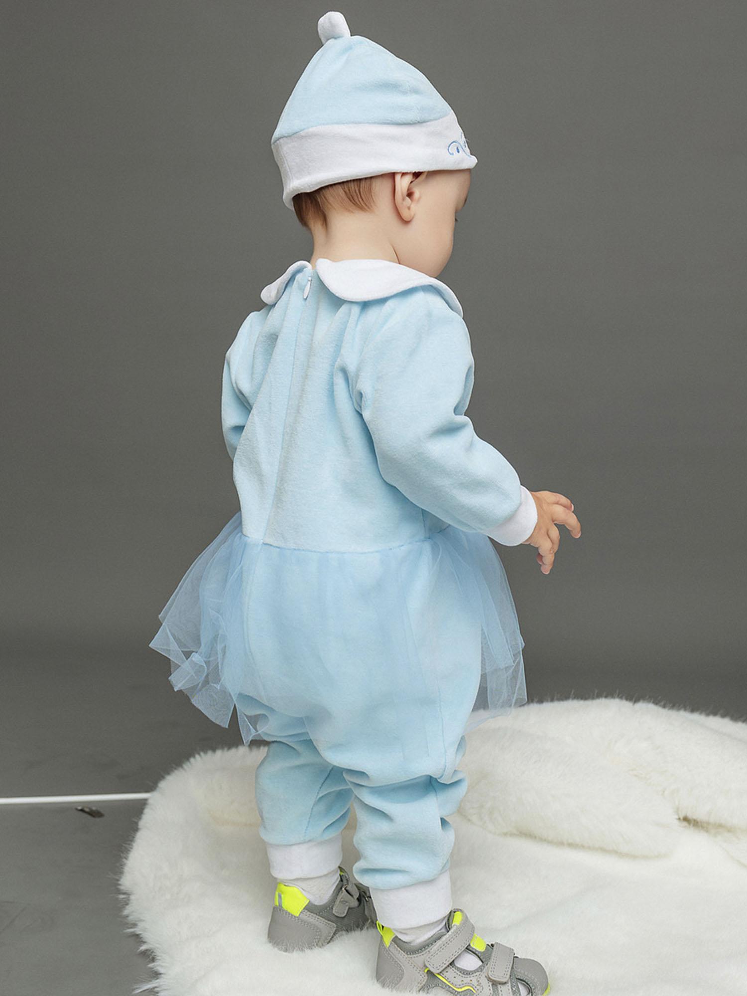 - Комбинезон бело-голубого цвета из мягкого натурального материала