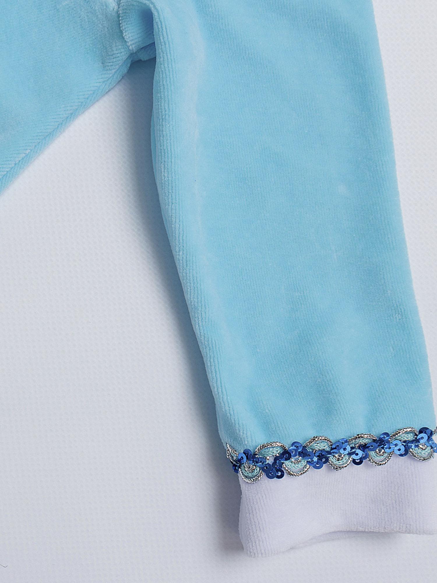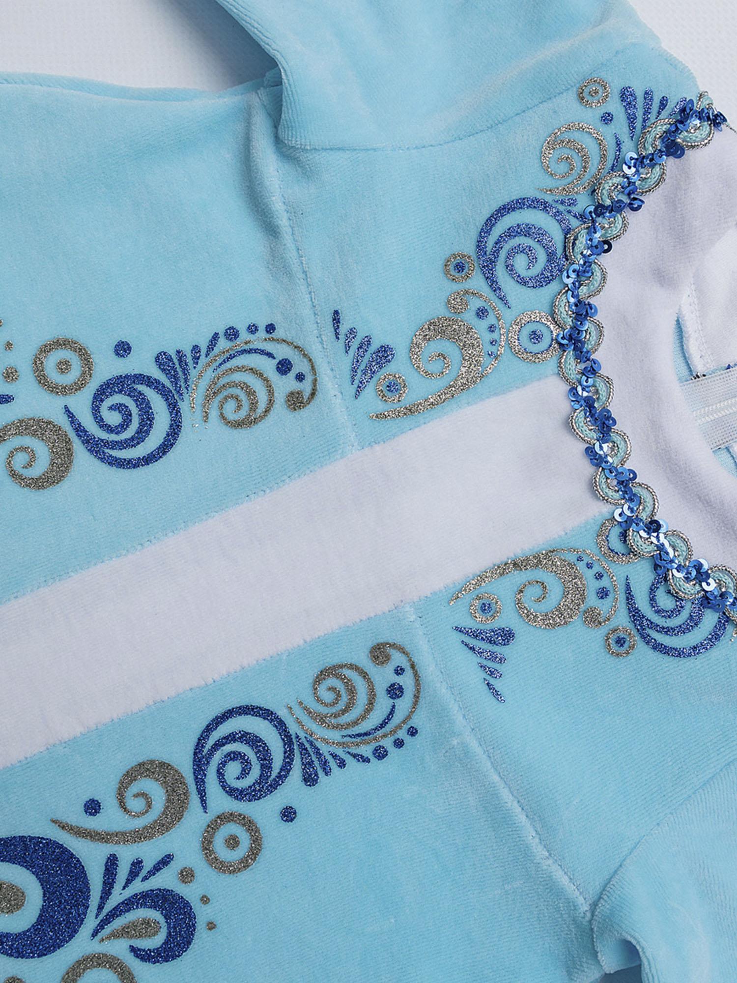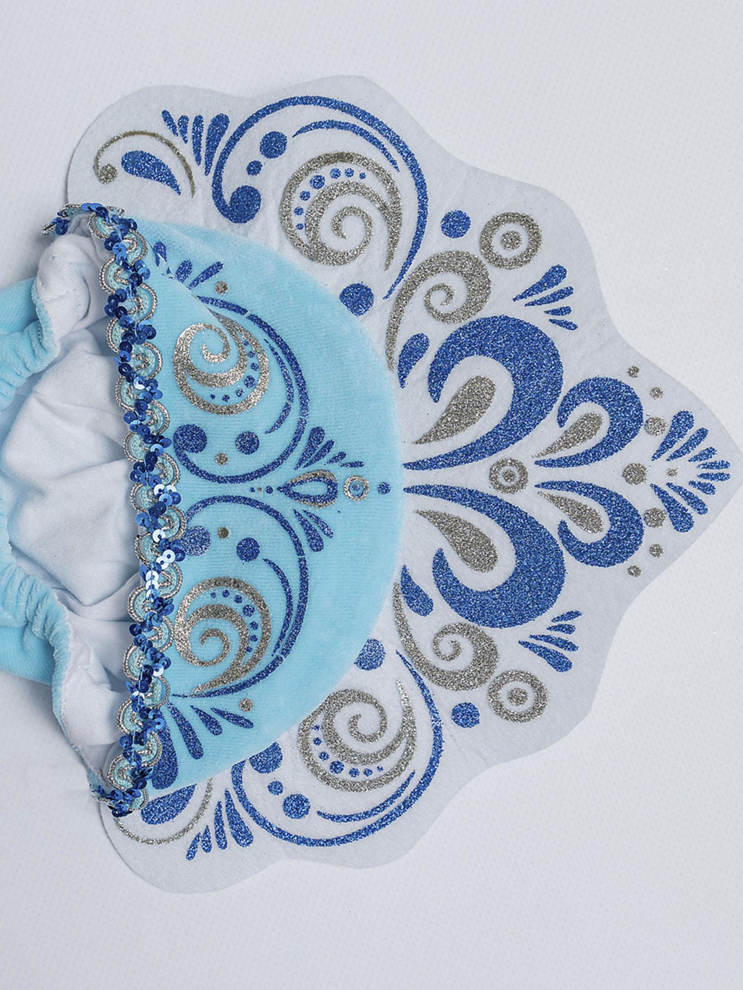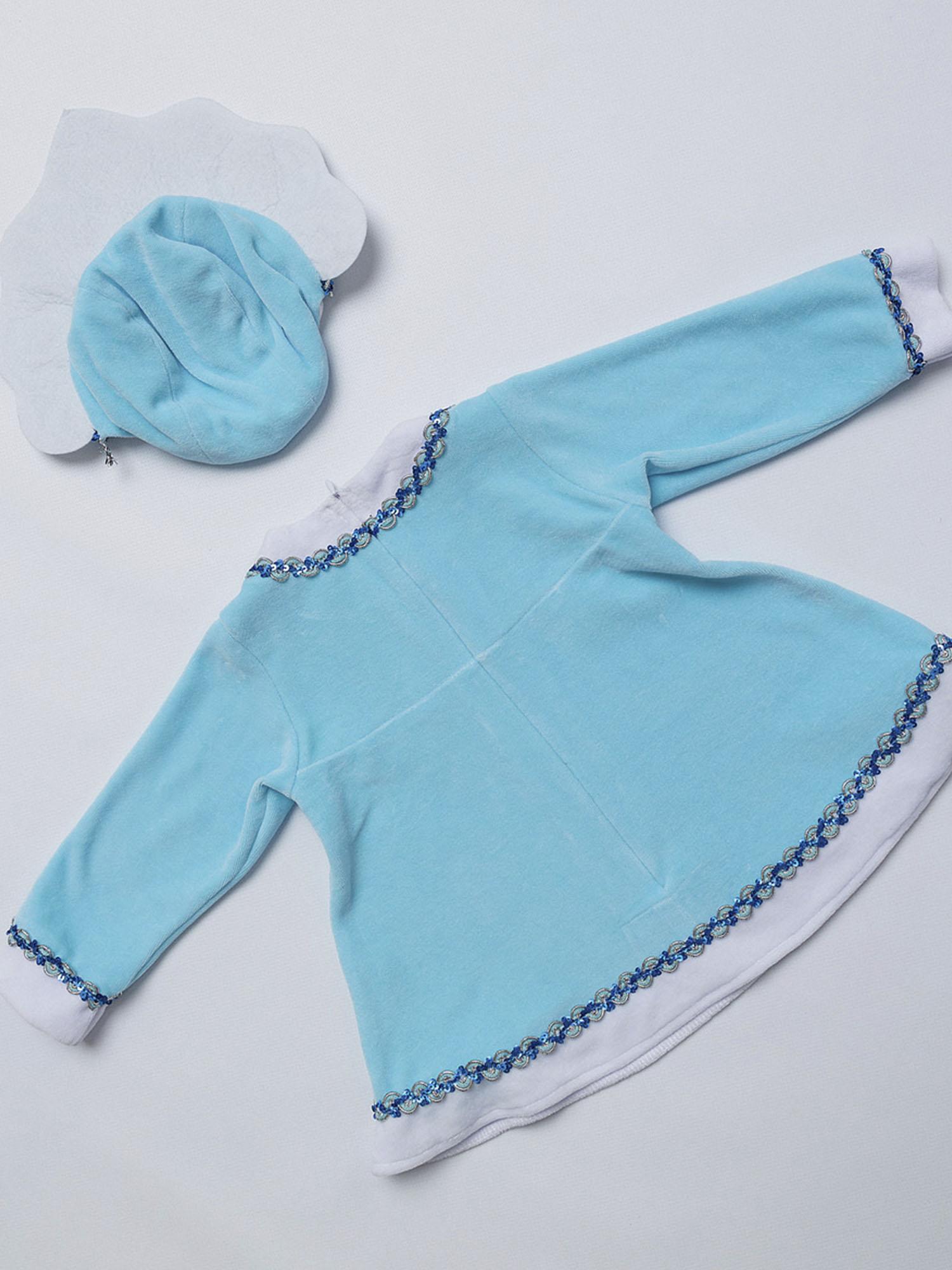 Детский новогодний костюм Снегурочки для девочек от 6 месяцев до 1,5 лет. Волшебный наряд в бело-голубом цвете представлен коротким платьем и кокошником.