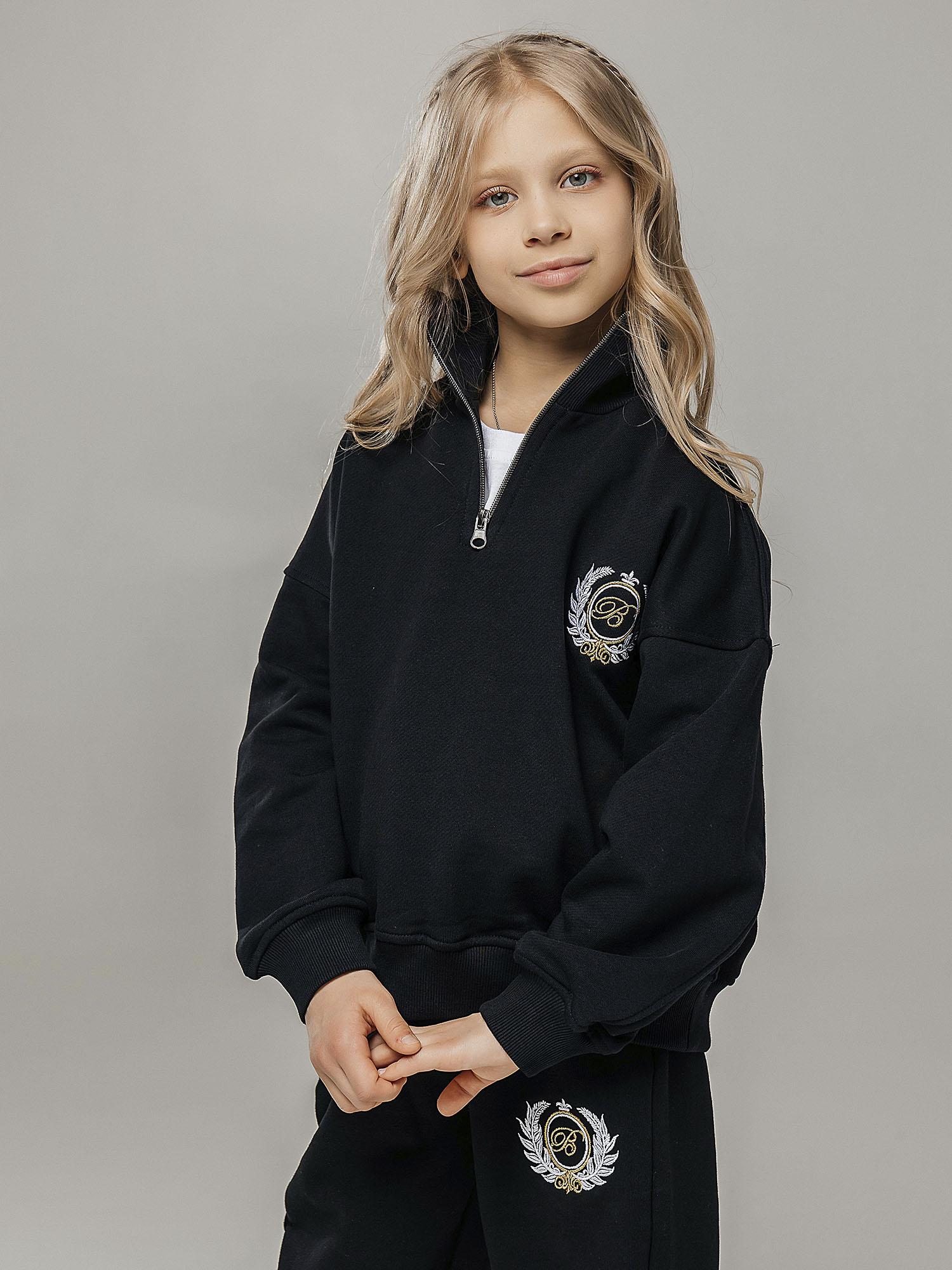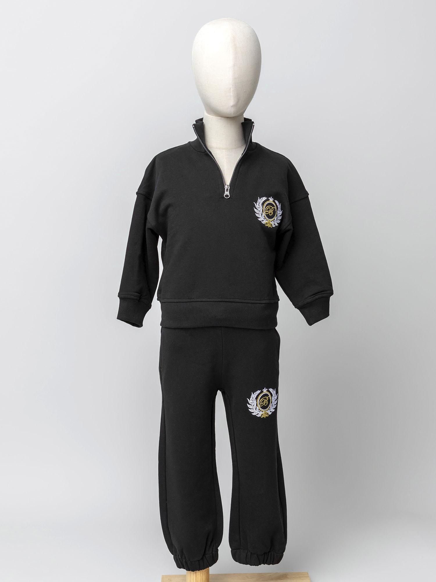 Костюм спортивный (толстовка + брюки) в черном цвете. Комфортная модель для повседневной носки и активного отдыха: удобный крой, мягкий материал и практичный дизайн обеспечивают свободу движений и аккуратный внешний вид.