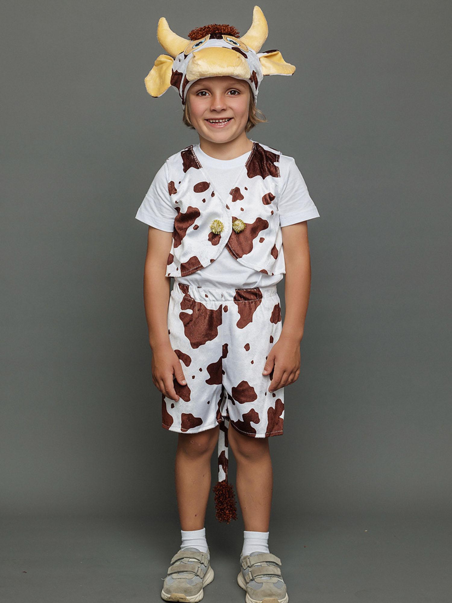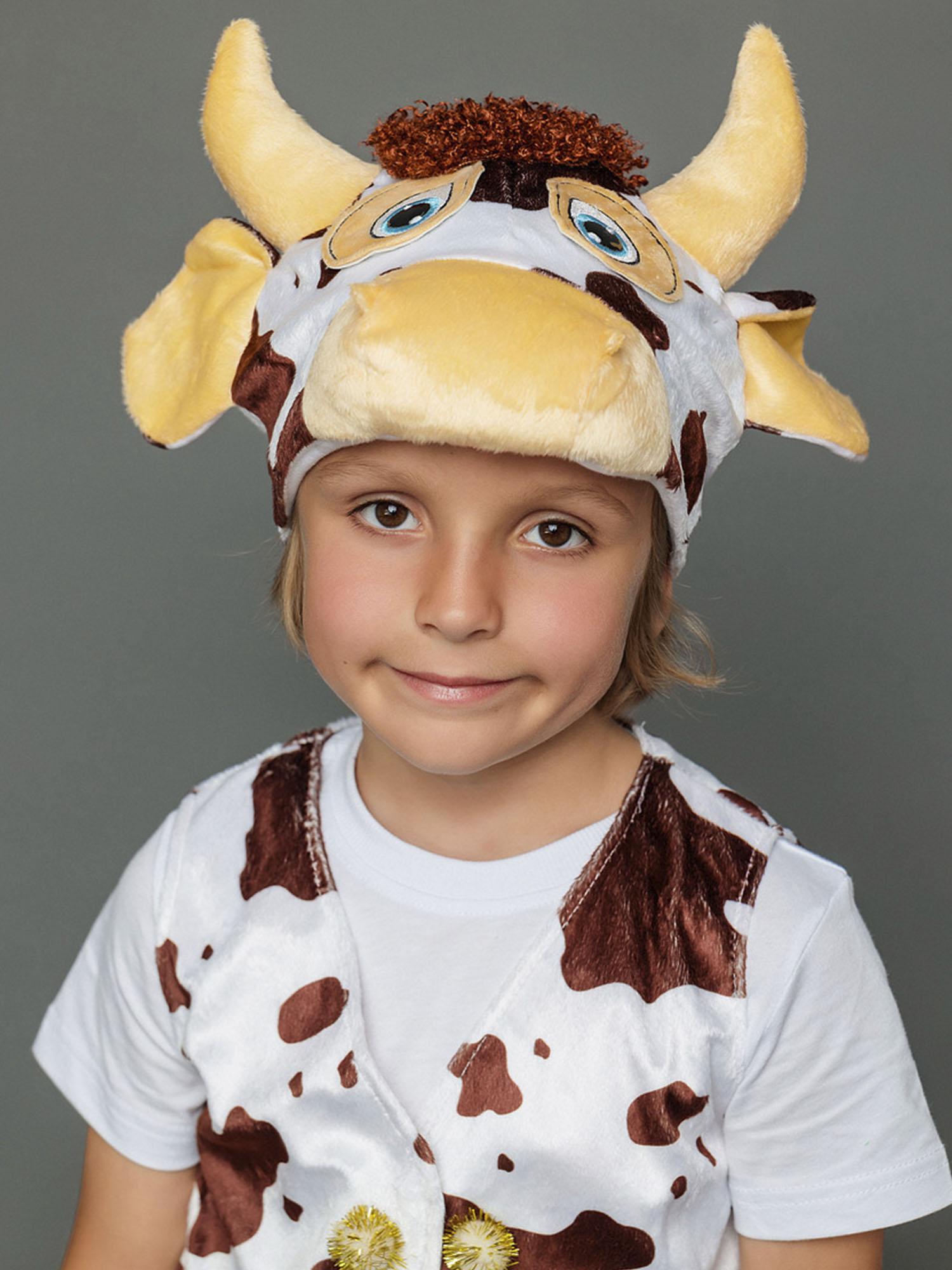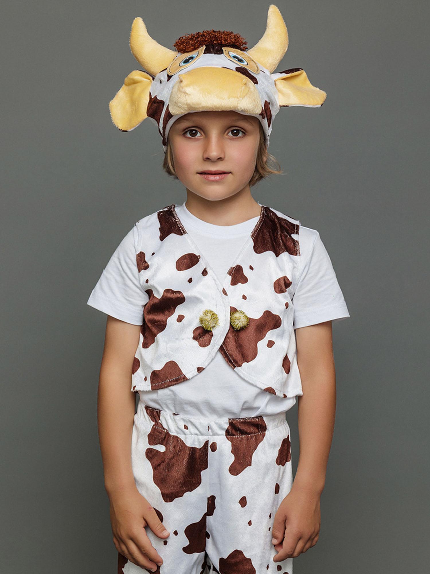 Карнавальный костюм Теленка Гаврюши для мальчика прекрасно подойдет для новогоднего утренника или спектакля в детском саду. Задорный и очаровательный Теленок Гаврюша понравится всем деткам на празднике. В комплект костюма входит жилет, гортики и маска-шапочка.