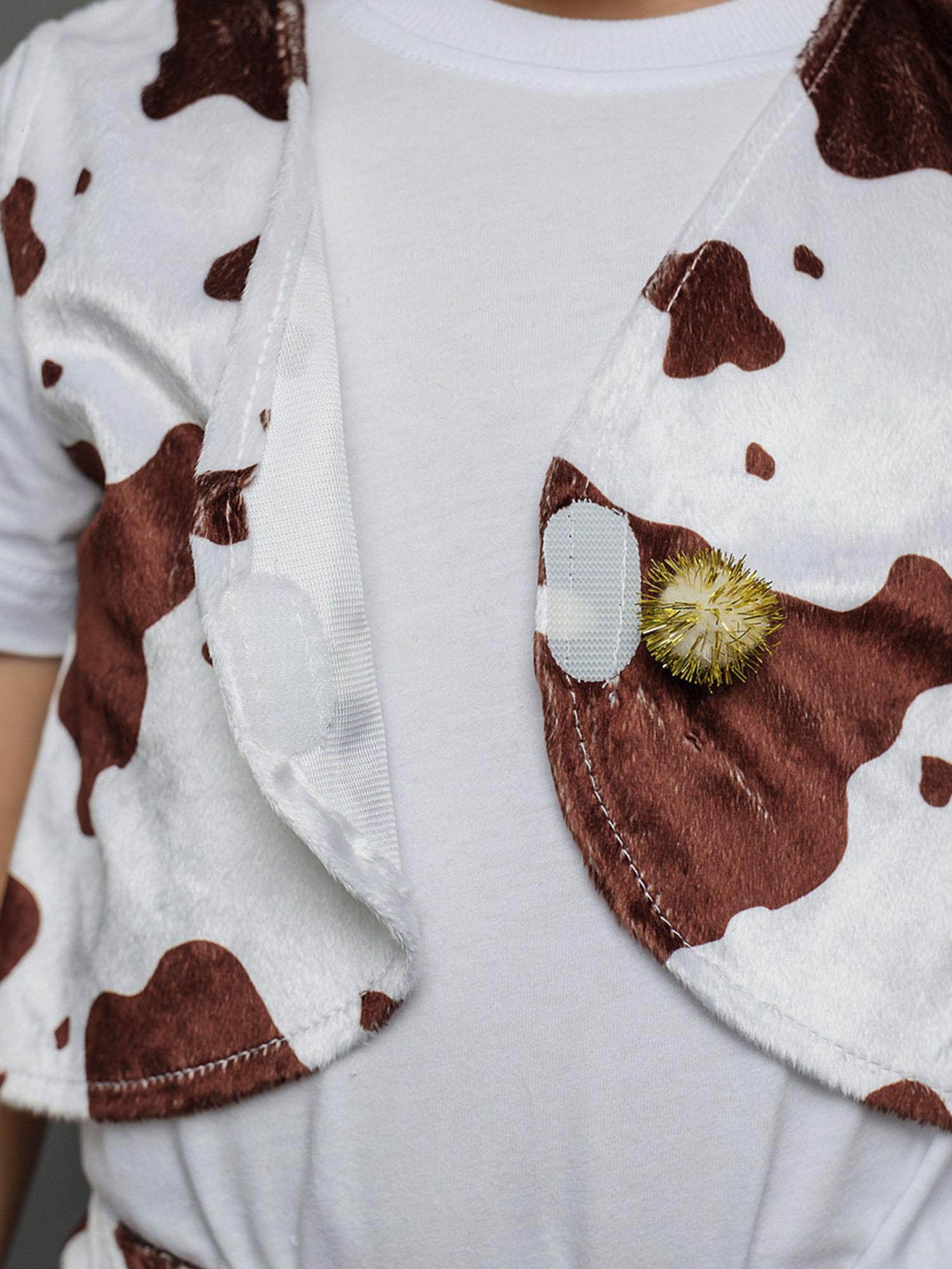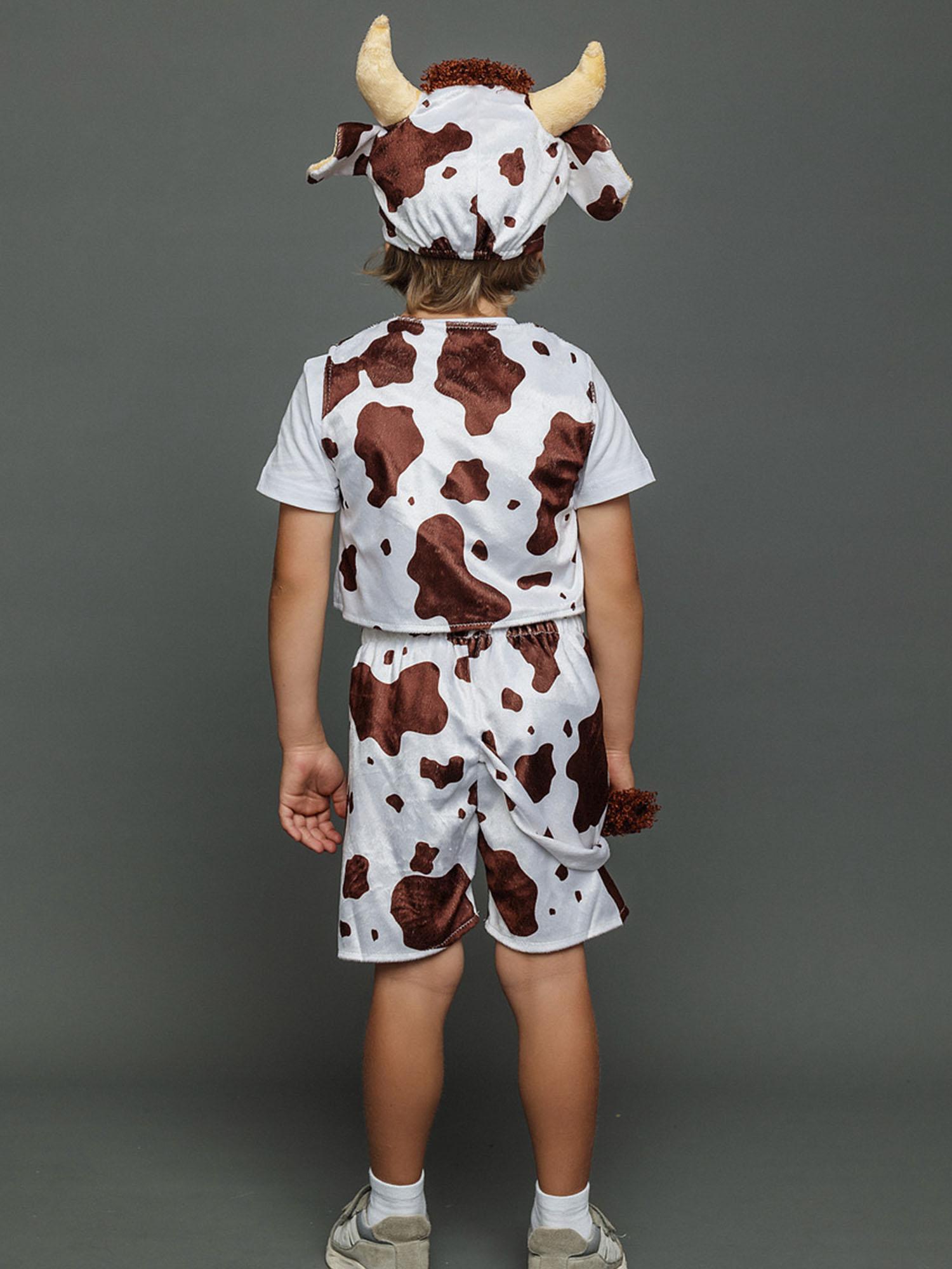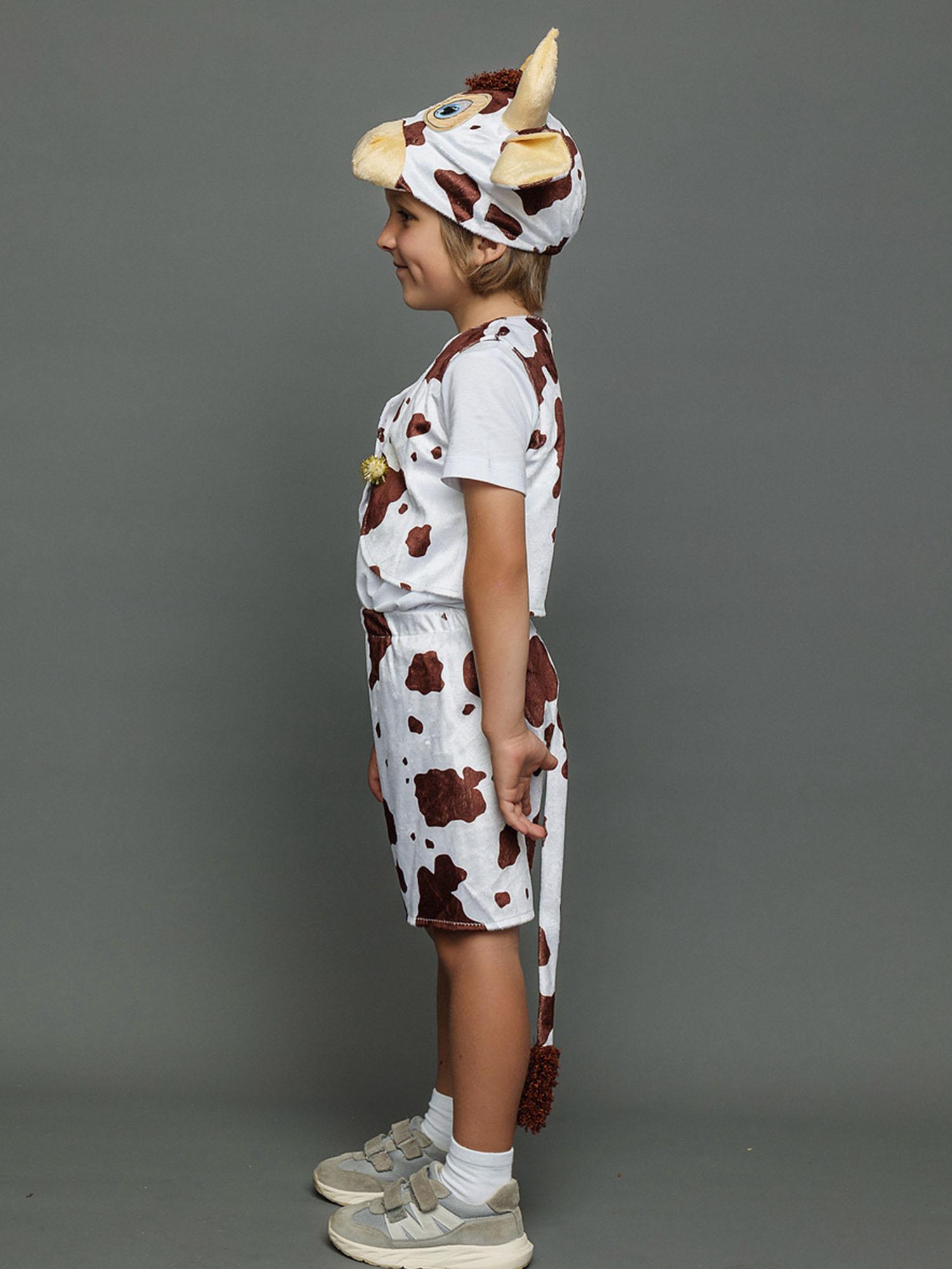 Карнавальный костюм Теленка Гаврюши для мальчика прекрасно подойдет для новогоднего утренника или спектакля в детском саду. Задорный и очаровательный Теленок Гаврюша понравится всем деткам на празднике. В комплект костюма входит жилет, гортики и маска-шапочка.