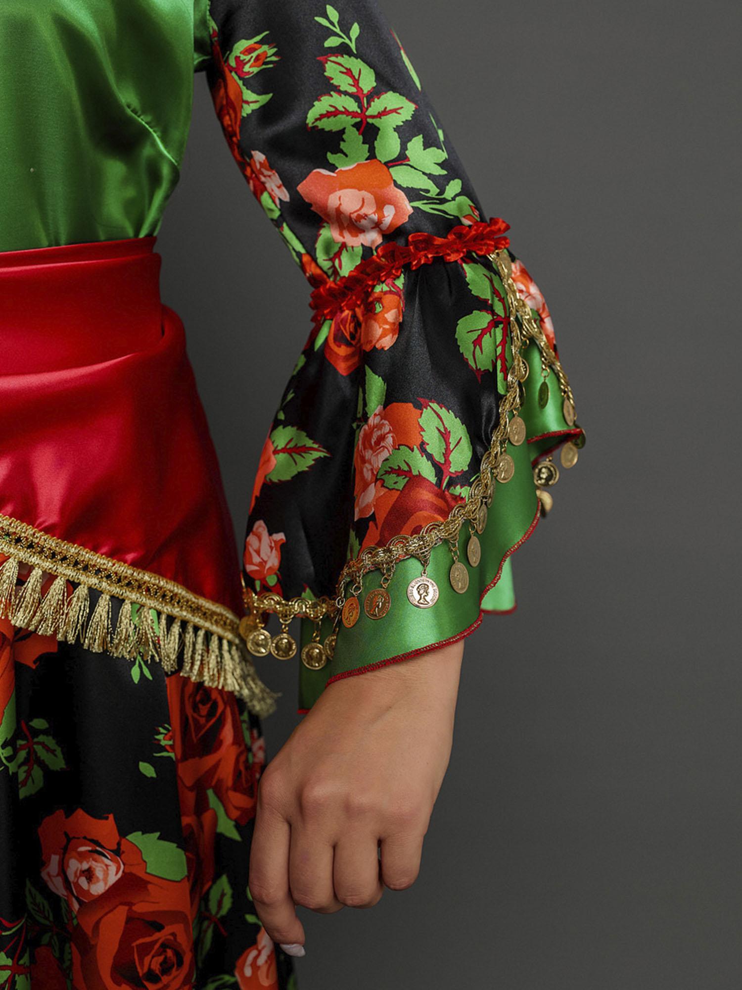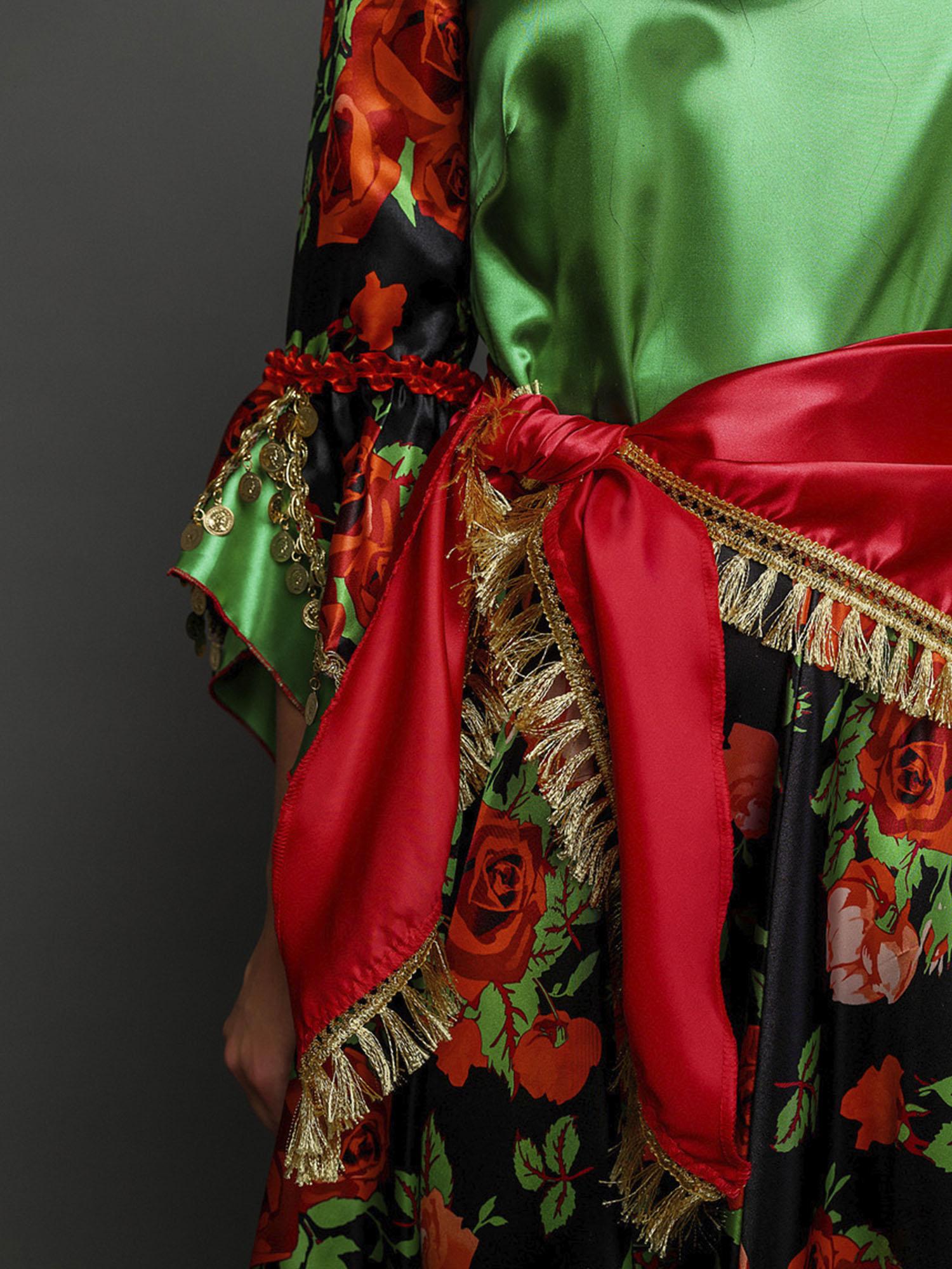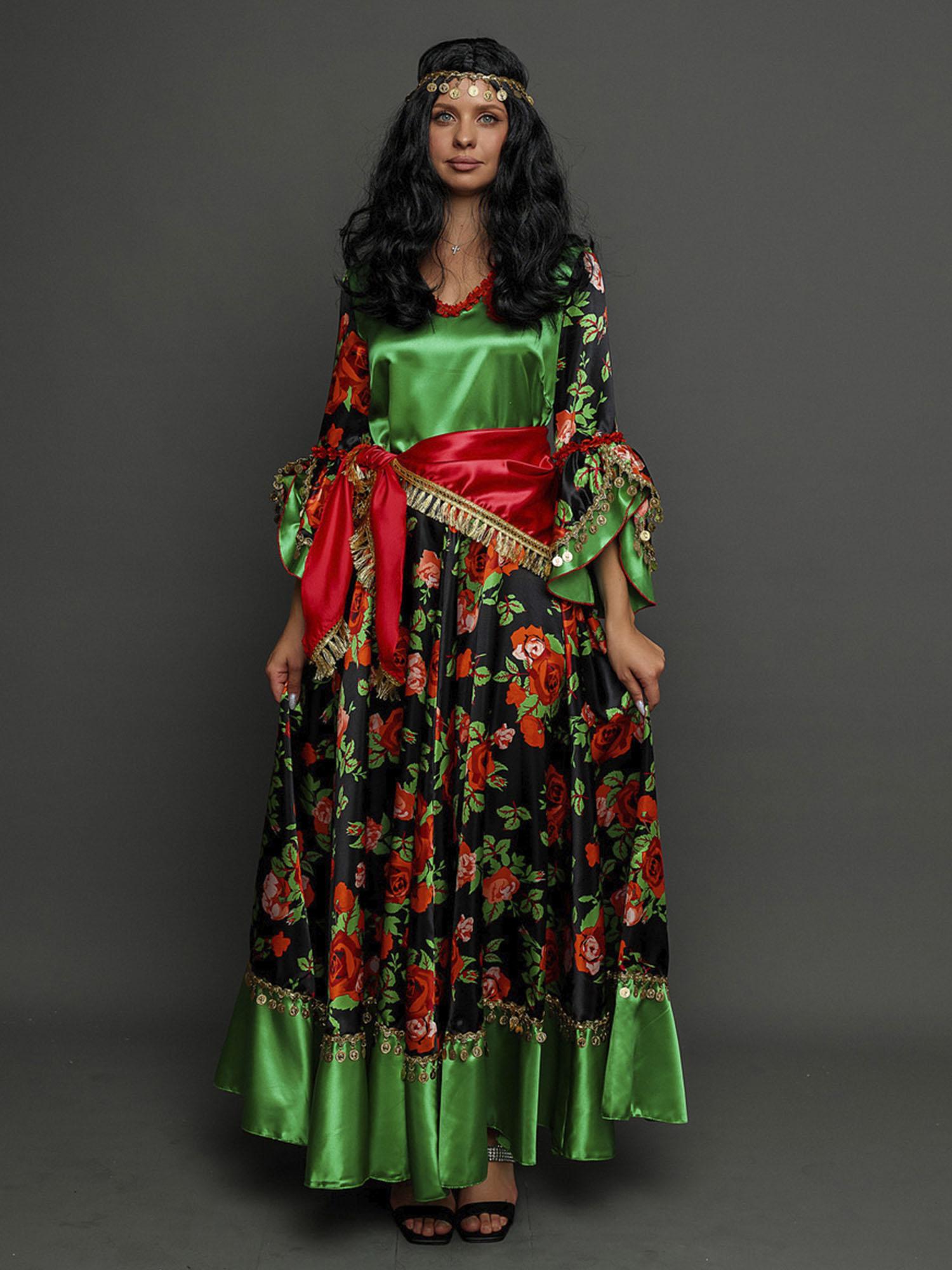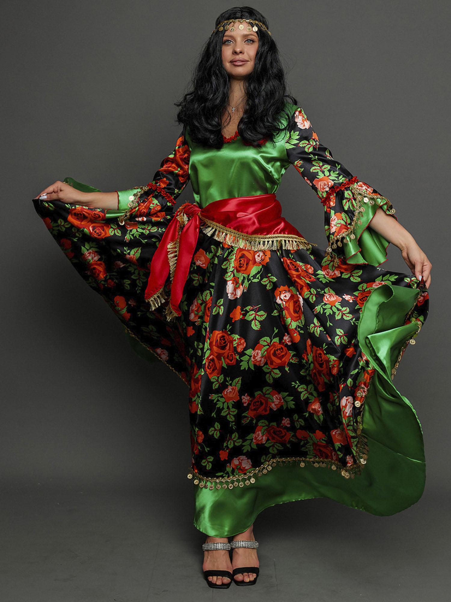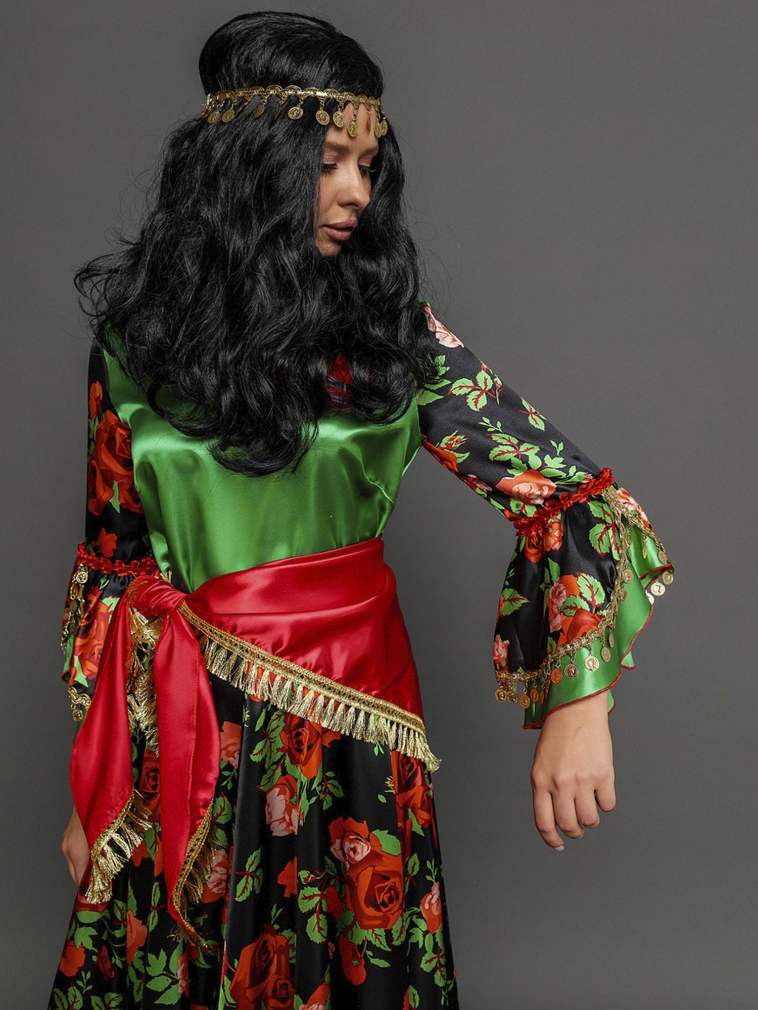 Костюм Цыганки Розы карнавальный женский станет отличным выбором для зажигательного праздника. Корпоратив, свадьба друзей, маскарадная вечеринка или театрализованная постановка – наряд красавицы-цыганочки сможет всех развеселить и поднять настроение. Комплект костюма включает платье, платок, парик и монисто.