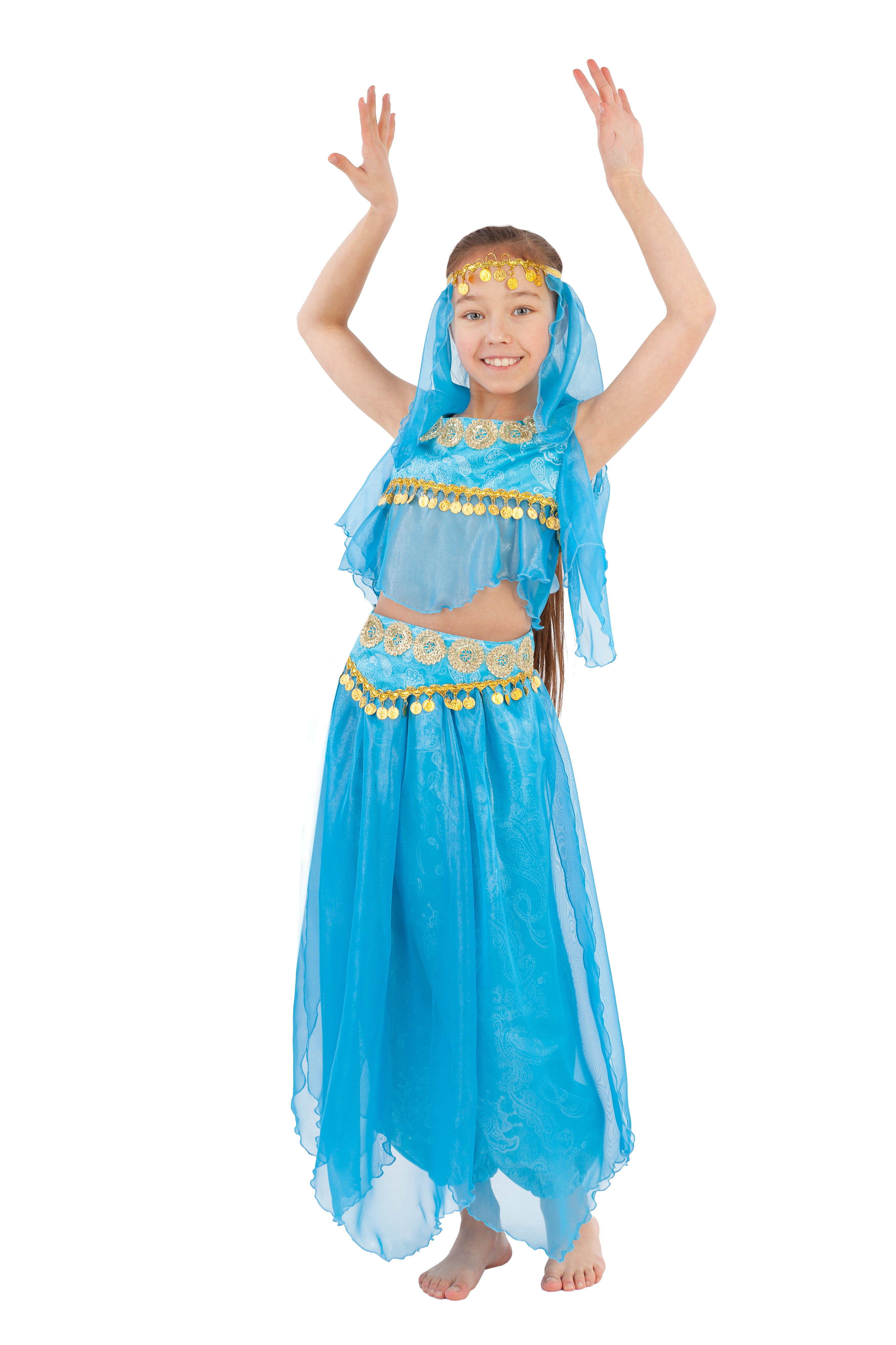 Интересный и яркий карнавальный костюм подойдет для спектаклей и костюмированных праздников, в нем можно поставить оригинальный номер или станцевать восточный танец. Изысканный карнавальный костюм для девочки Восточная Красавица станет жемчужиной любого праздника и рахат-лукумом многих сердец. В комплекте, помимо топа и шароваров, вы найдете монисто на голову и пояс.