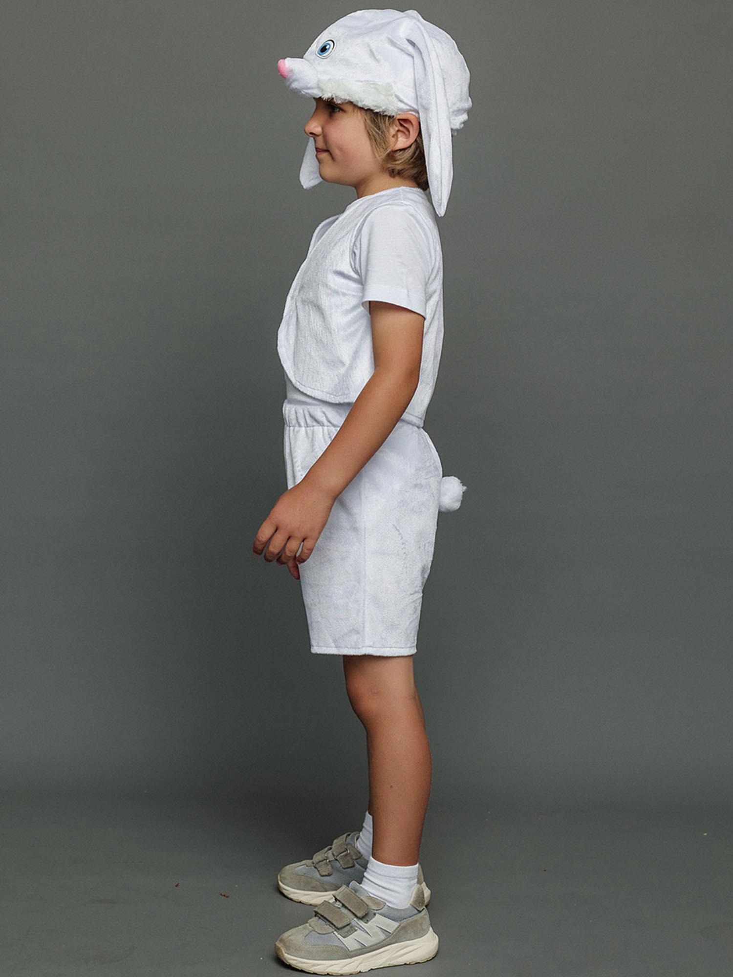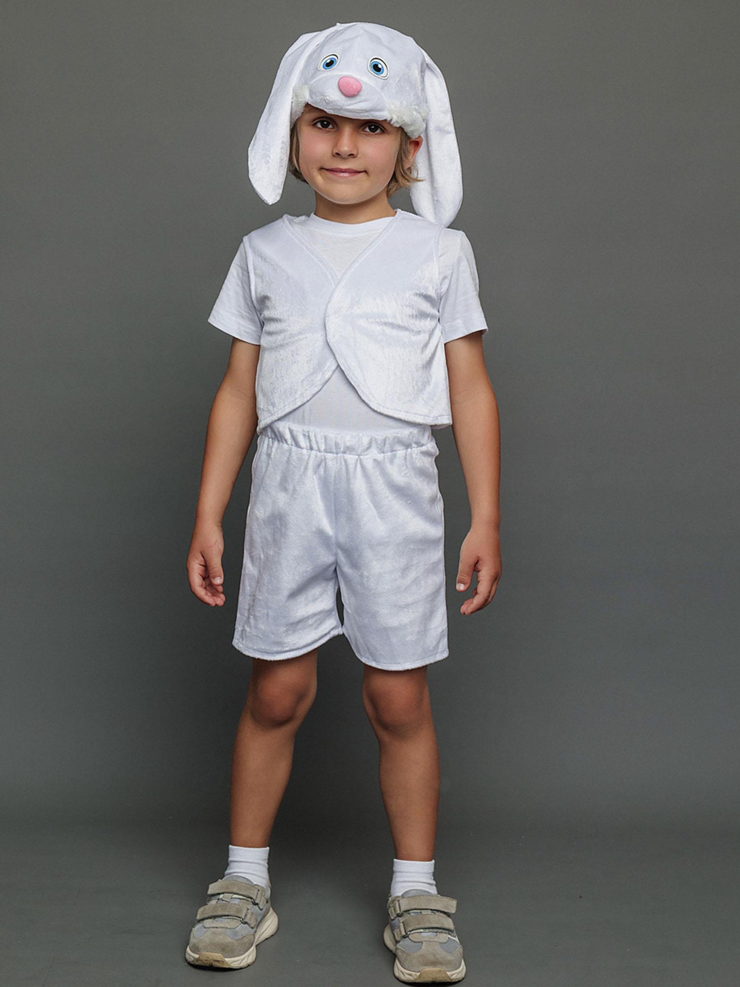 Карнавальный костюм Заяц Ваня – классический образ в белом цвете, который не теряет своей популярности уже много лет. Легкий и удобный, этот костюм станет отличным приобретением для любого ребенка в качестве праздничного образа. В комплект входит жилет, шорты и маска.