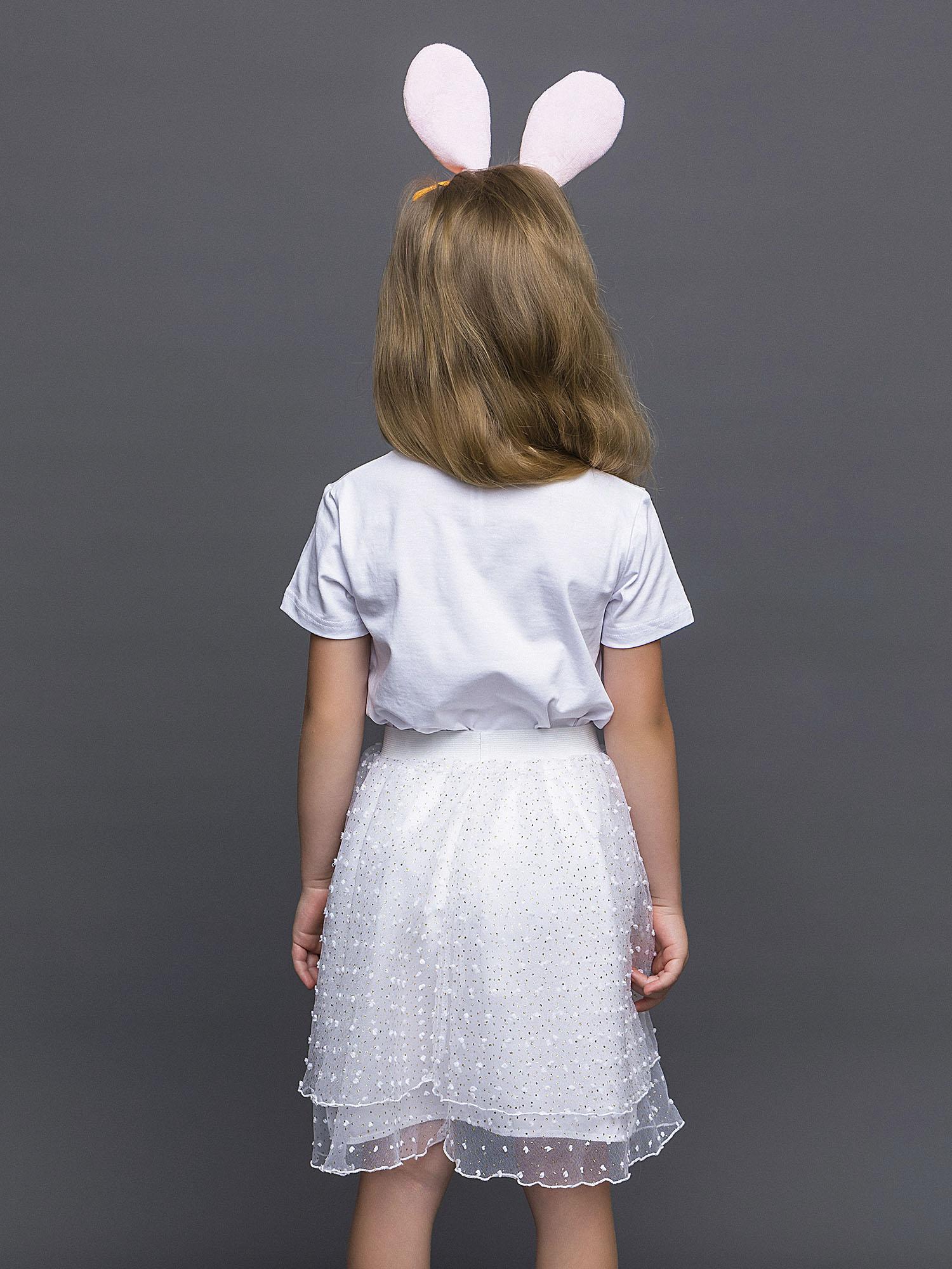 Карнавальный костюм для девочки Зайка. Костюм состоит из пышной юбки на резинке, футболки с коротким рукавом, ободка с ушками и морковкой. Подойдет на новогодний и детский утренник в садике, для праздничной ёлки, карнавального вечера, фотосессии и просто нарядиться в гости.