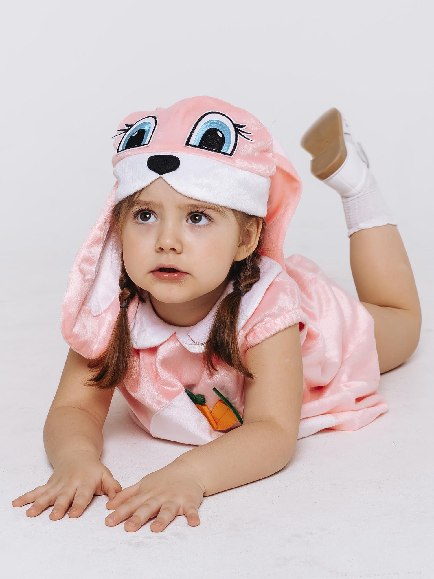В образе Зайки наши замечательные девочки смогут побывать на утреннике, поучаствовать в постановке интересного номера или сходить в гости на праздник. Нежно-розовый наряд Зайки обязательно понравится девочке, и она захочет надеть его еще раз. Костюм представляет собой короткое платьице и шапочку. Размер рассчитан на девочку 3-5 лет.