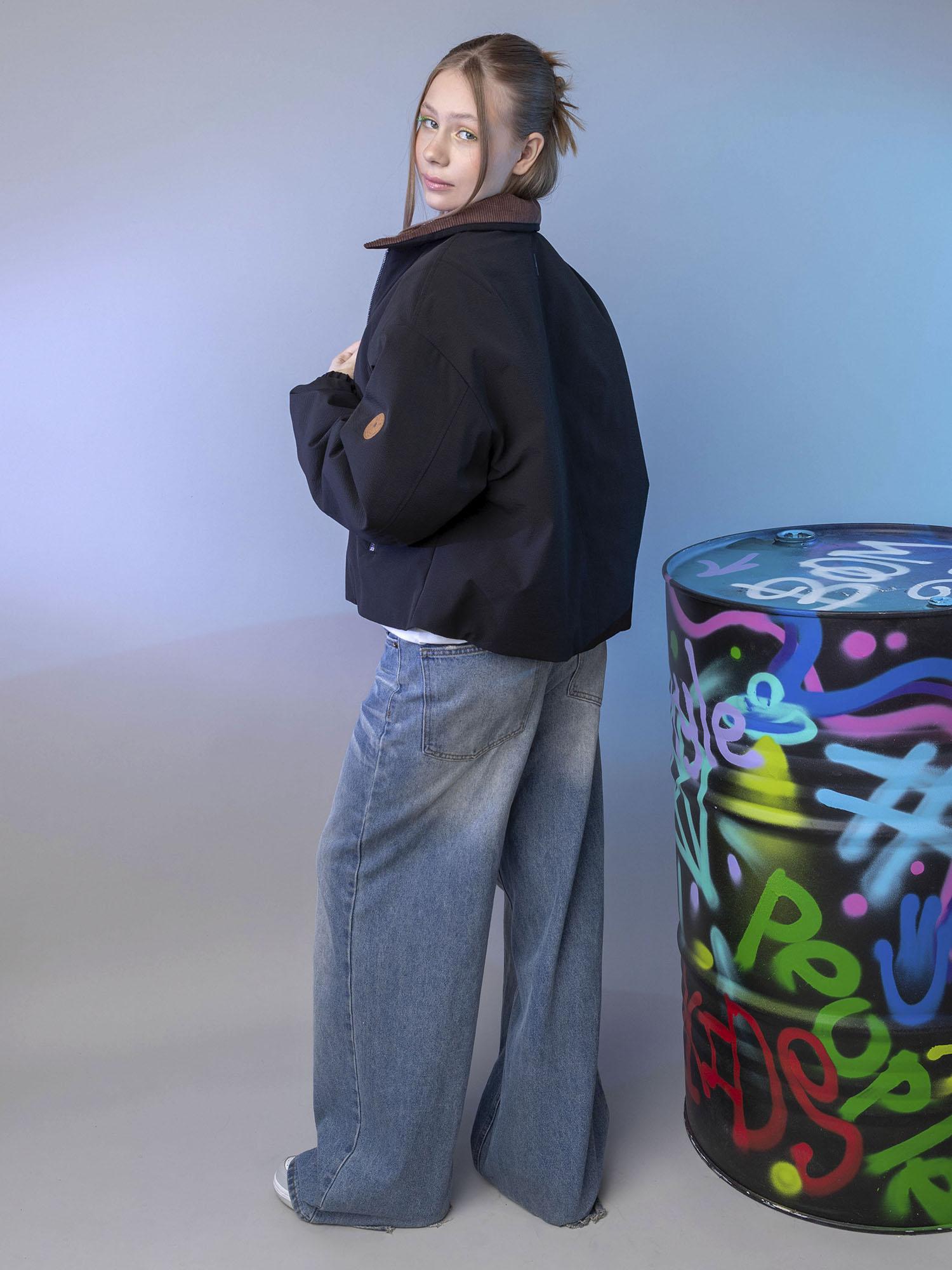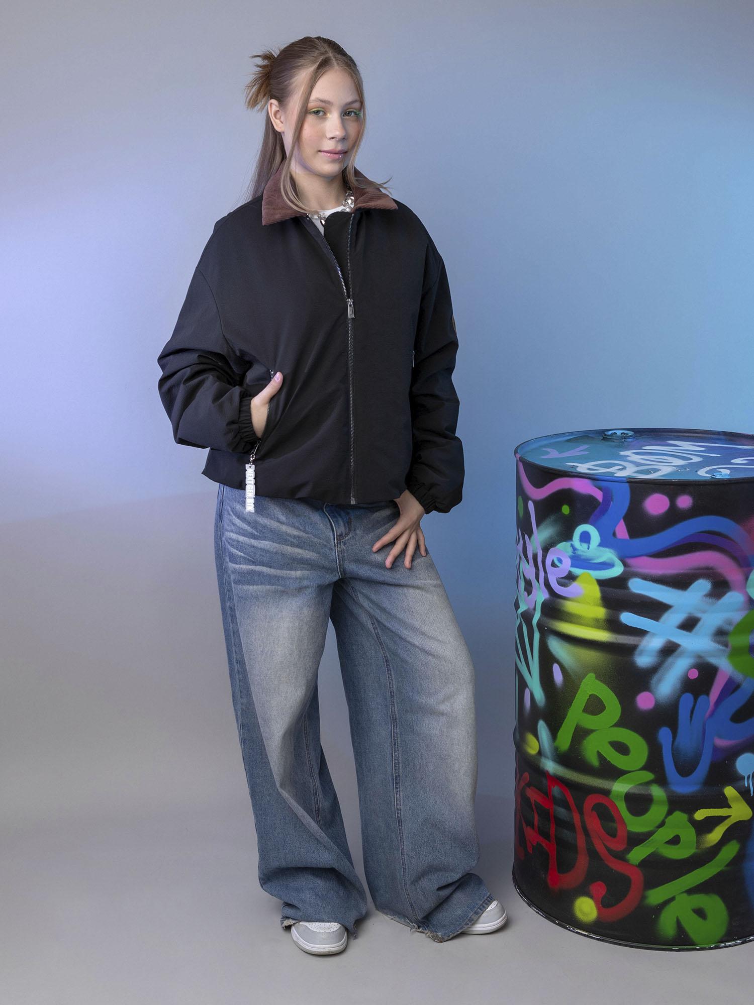 Куртка-бомбер Мирэль — эффектная модель для девочек в актуальном oversize-силуэте. Изделие выполнено из плотной мембранной ткани с необычным визуальным эффектом ворсовой поверхности, которая придаёт куртке выразительный и современный вид.