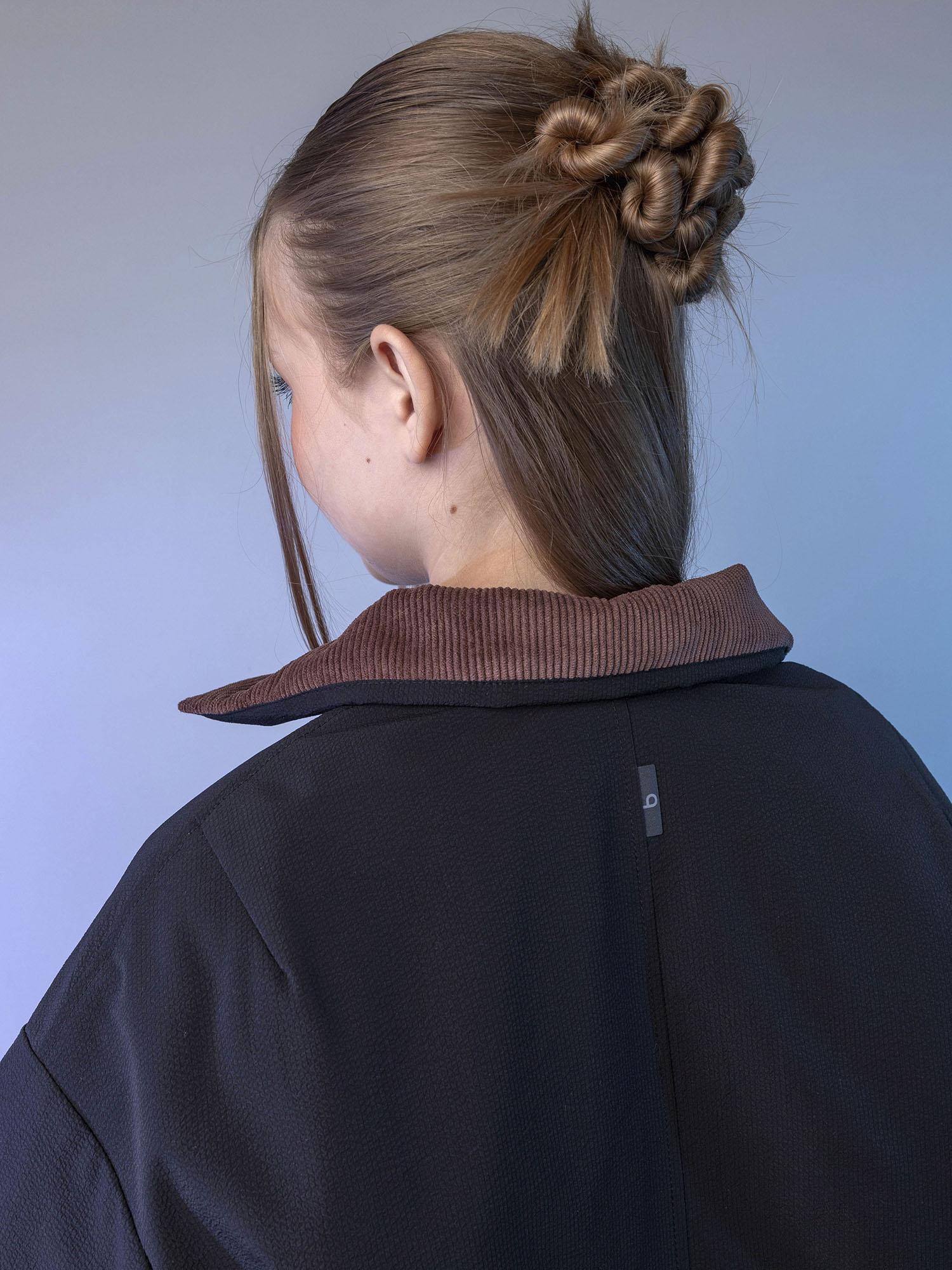 Модель оснащена центральной металлической молнией с внутренней ветрозащитной планкой. Стояче-отложной воротник из мягкого ворсового материала контрастного цвета создаёт стильный акцент и обеспечивает дополнительный комфорт. Объёмные рукава с эластичными манжетами не сковывают движений и защищают от поддува.