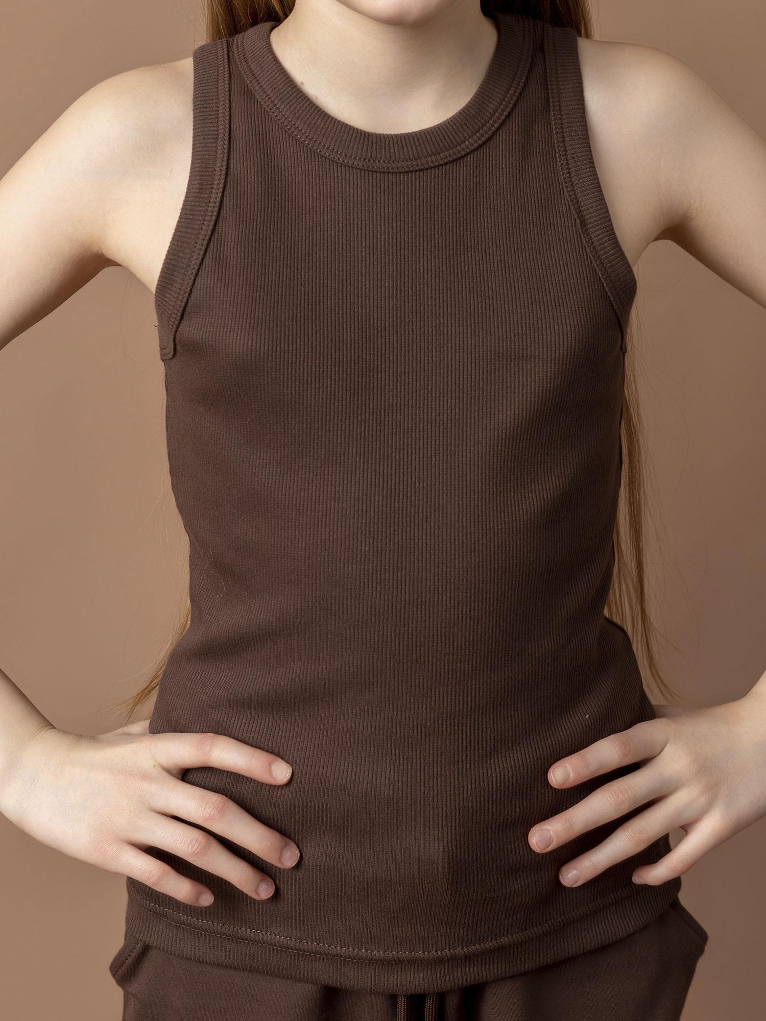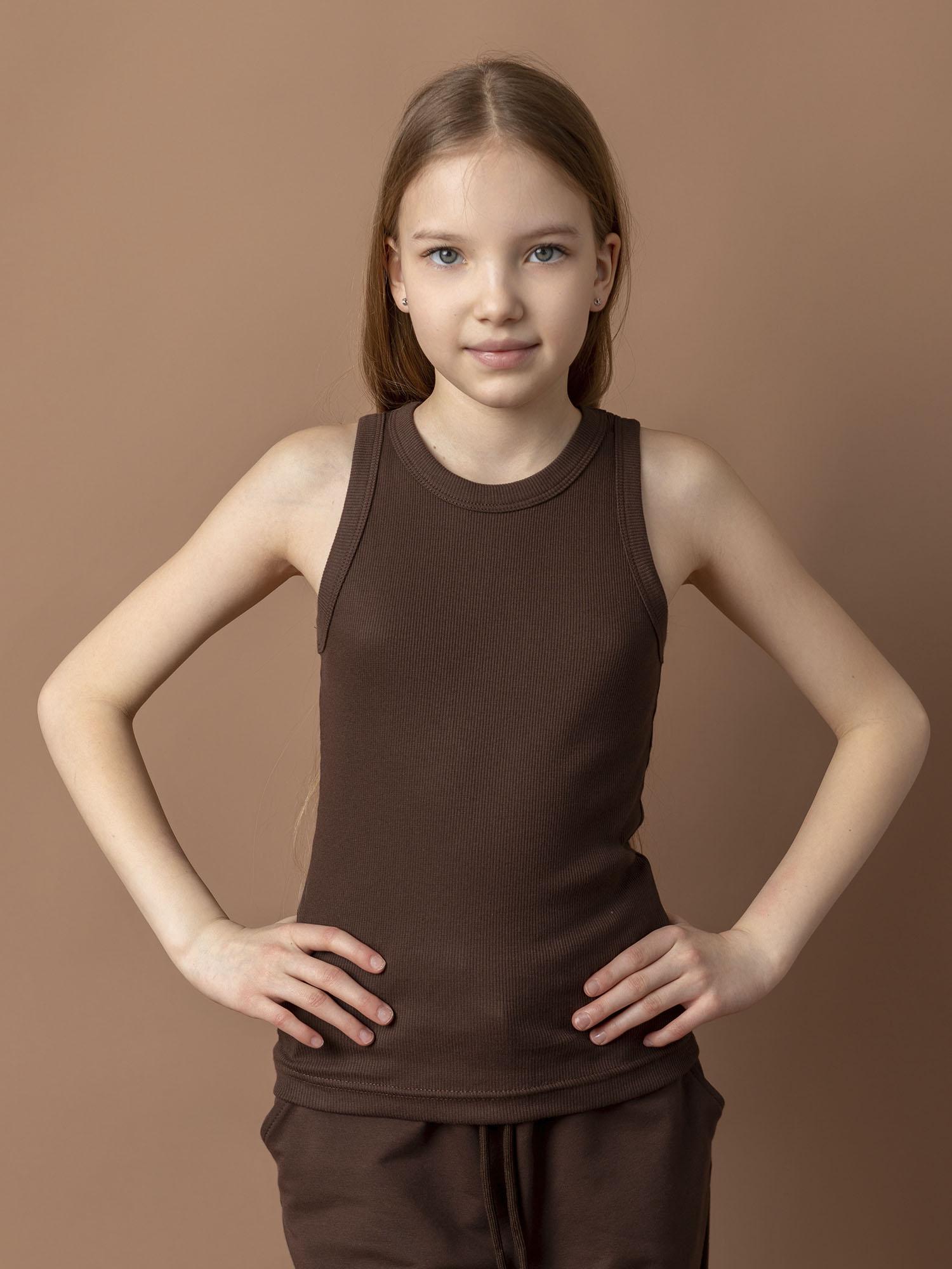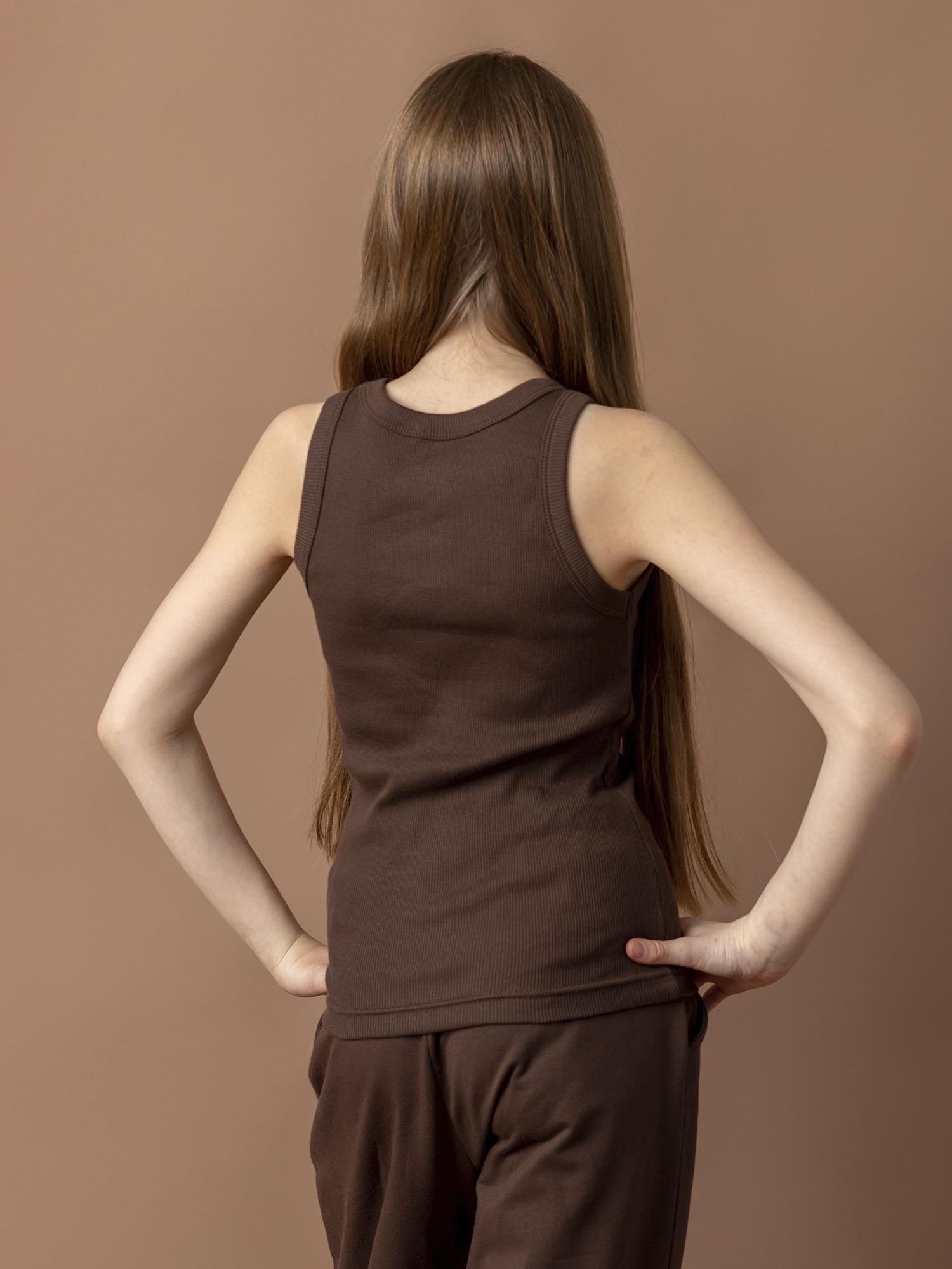 Майка для девочки какао — стильная базовая модель. Мягкий материал и комфортный крой обеспечивают удобство в носке. Отлично дополняет повседневные образы.