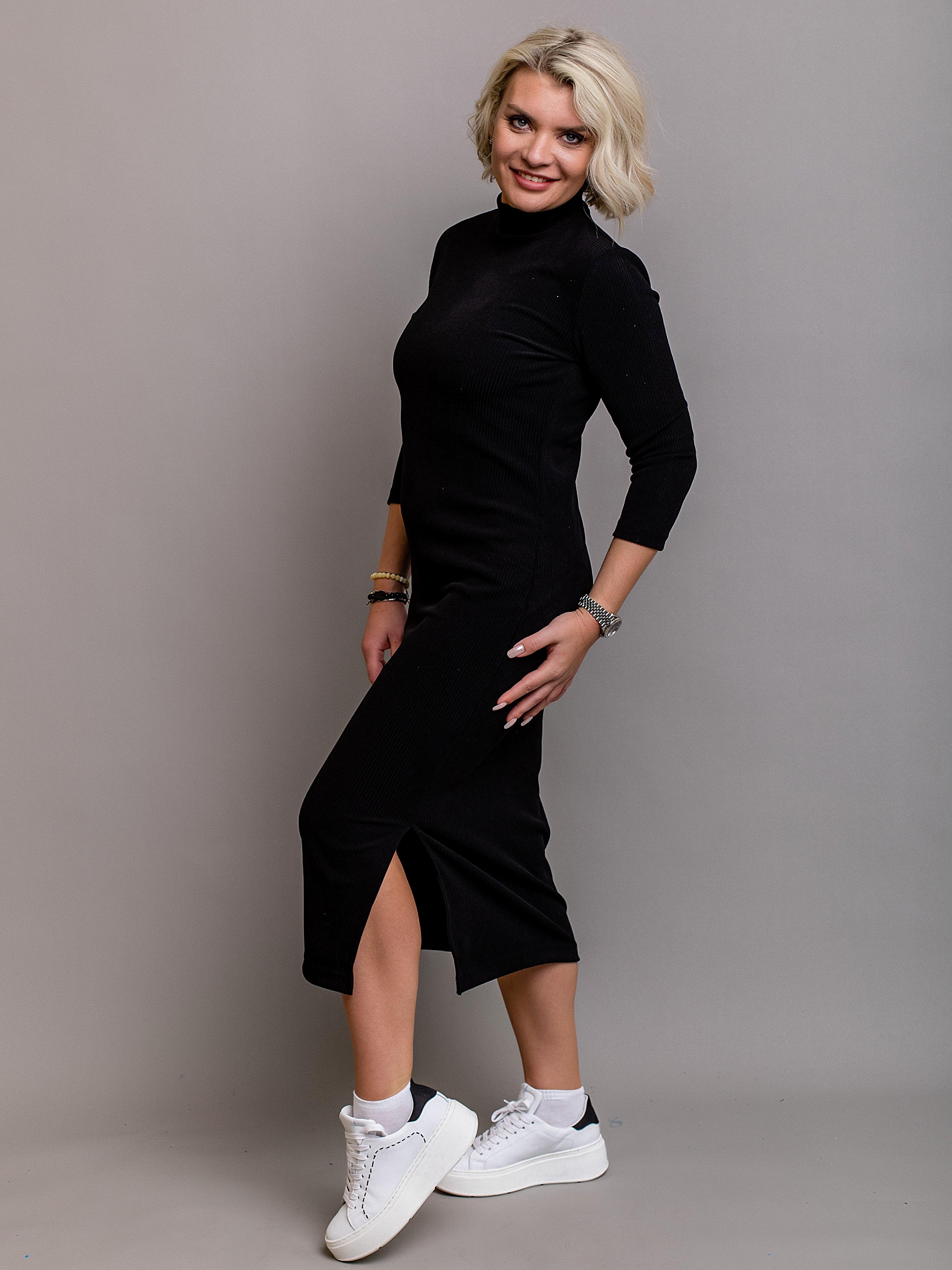 Базовое платье прекрасно дополнится как кедами, так и каблуками. Платье идеально садится по фигуре, но не стесняет движений благодаря хорошо тянущемуся материалу, оставляя комфорт в любой ситуации.