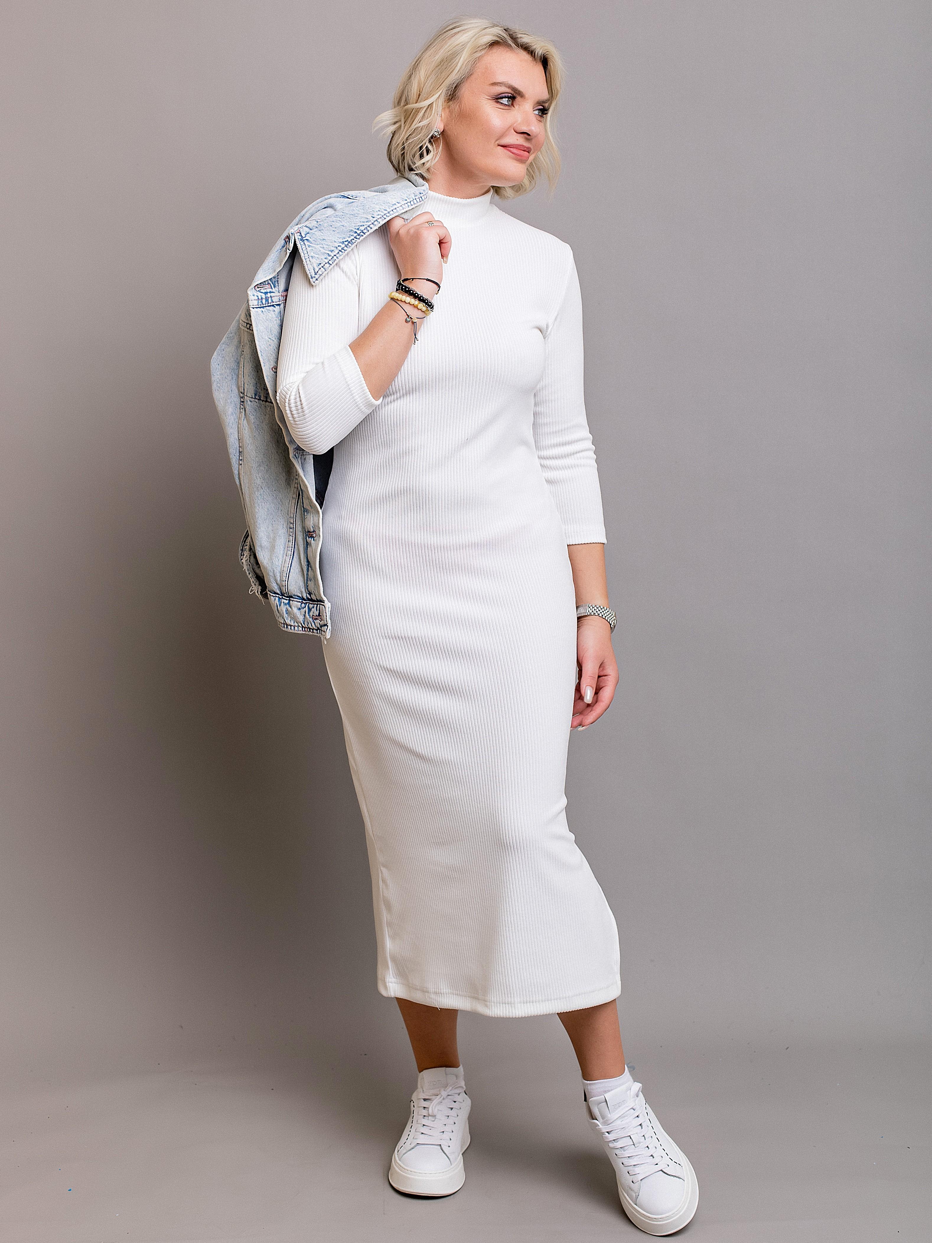 Базовое платье прекрасно дополнится как кедами, так и каблуками. Платье идеально садится по фигуре, но не стесняет движений благодаря хорошо тянущемуся материалу, оставляя комфорт в любой ситуации.