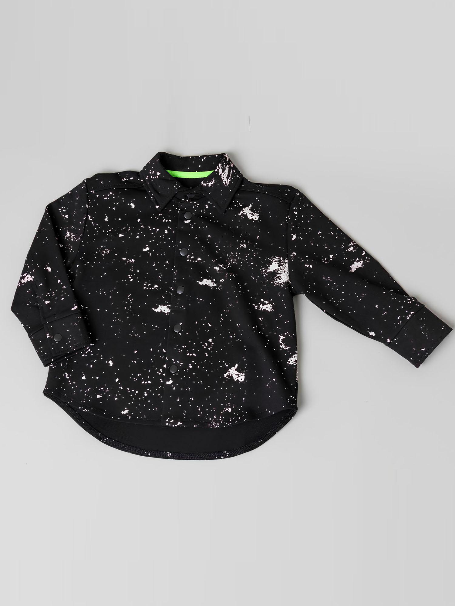 Рубашка-джемпер для мальчиков выполнена из футера в чёрном цвете. Комфортная и практичная модель для повседневной носки.