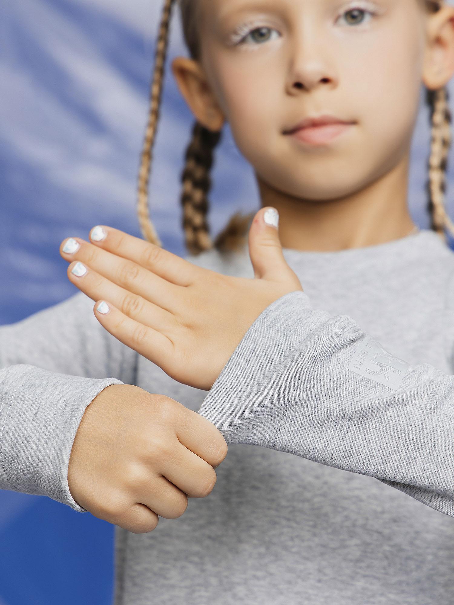 Базовое термобелье для девочек: серый облегающий свитшот. Двухслойный трикотаж поможет сохранить тепло и подарит комфорт в любую погоду. Сшито с учетом анатомических особенностей. Можно носить в качестве поддевы зимой.